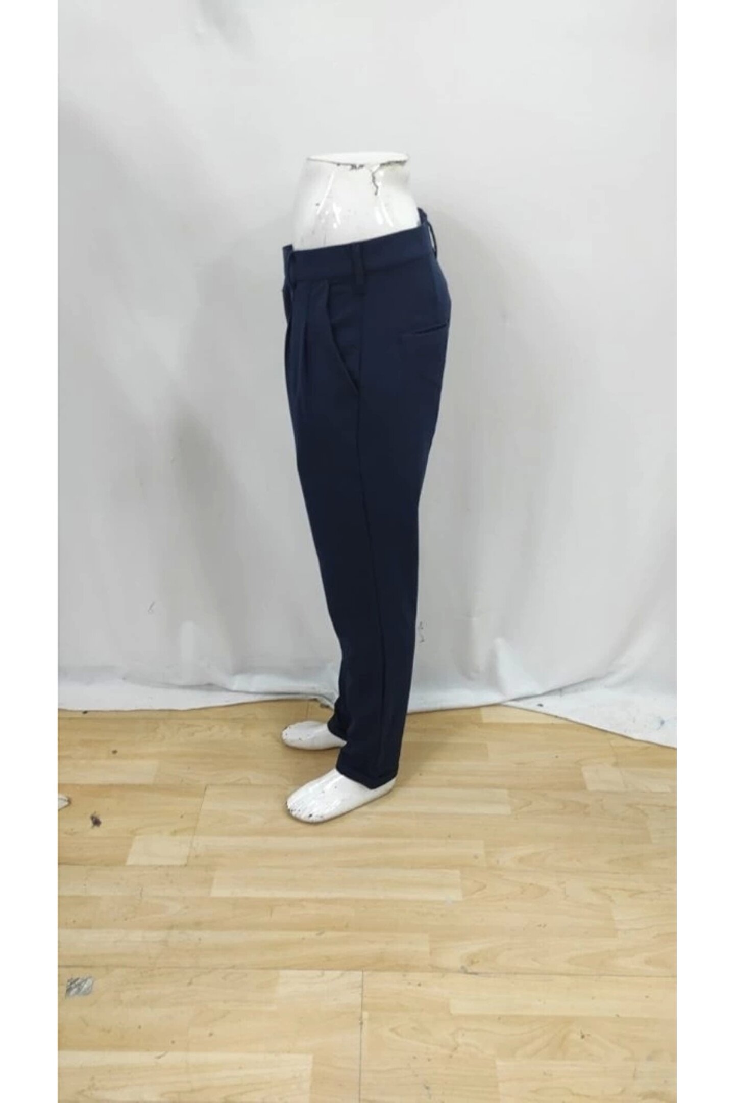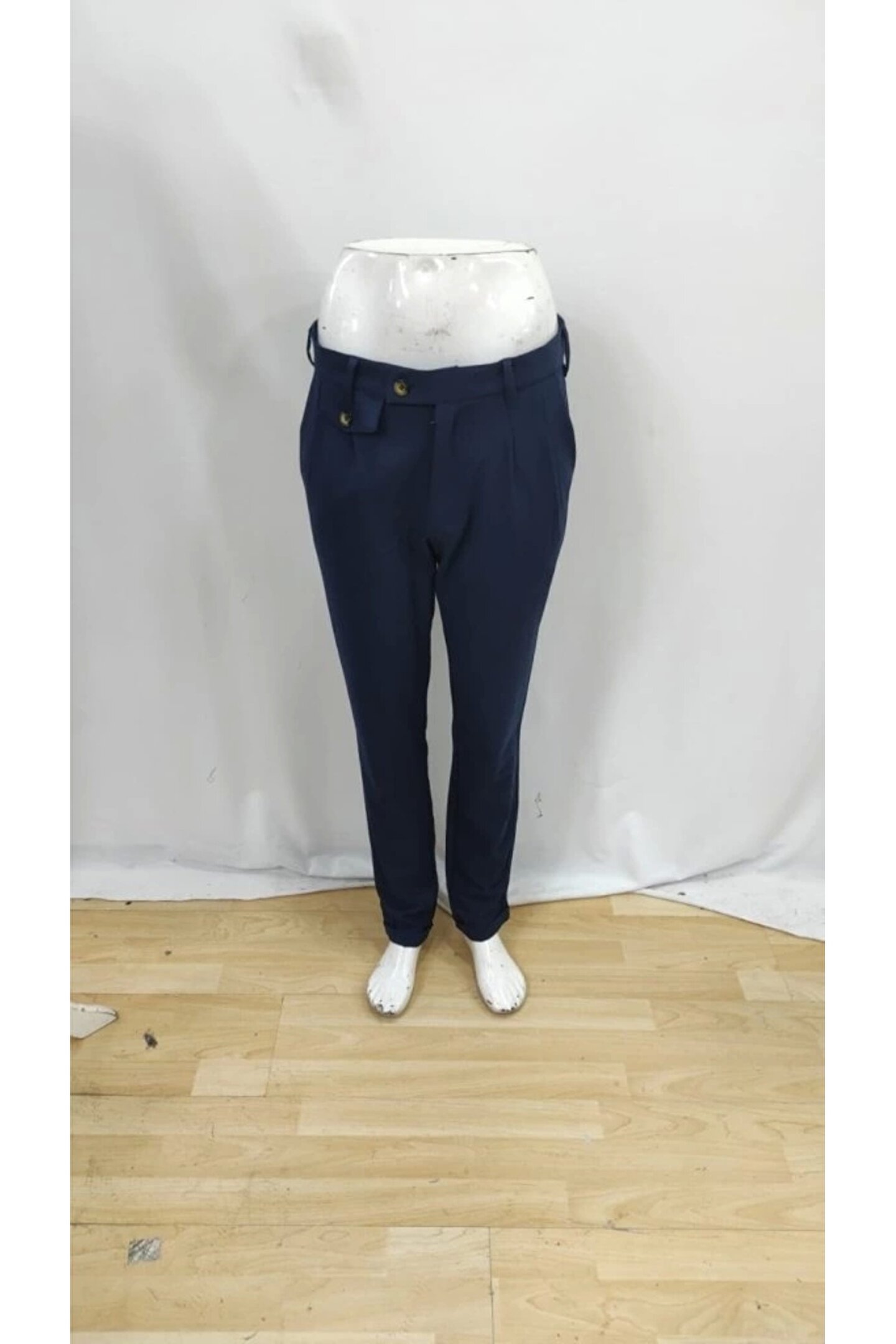 Erkek Belden Düğmeli Cepli Dokuma Pantolon