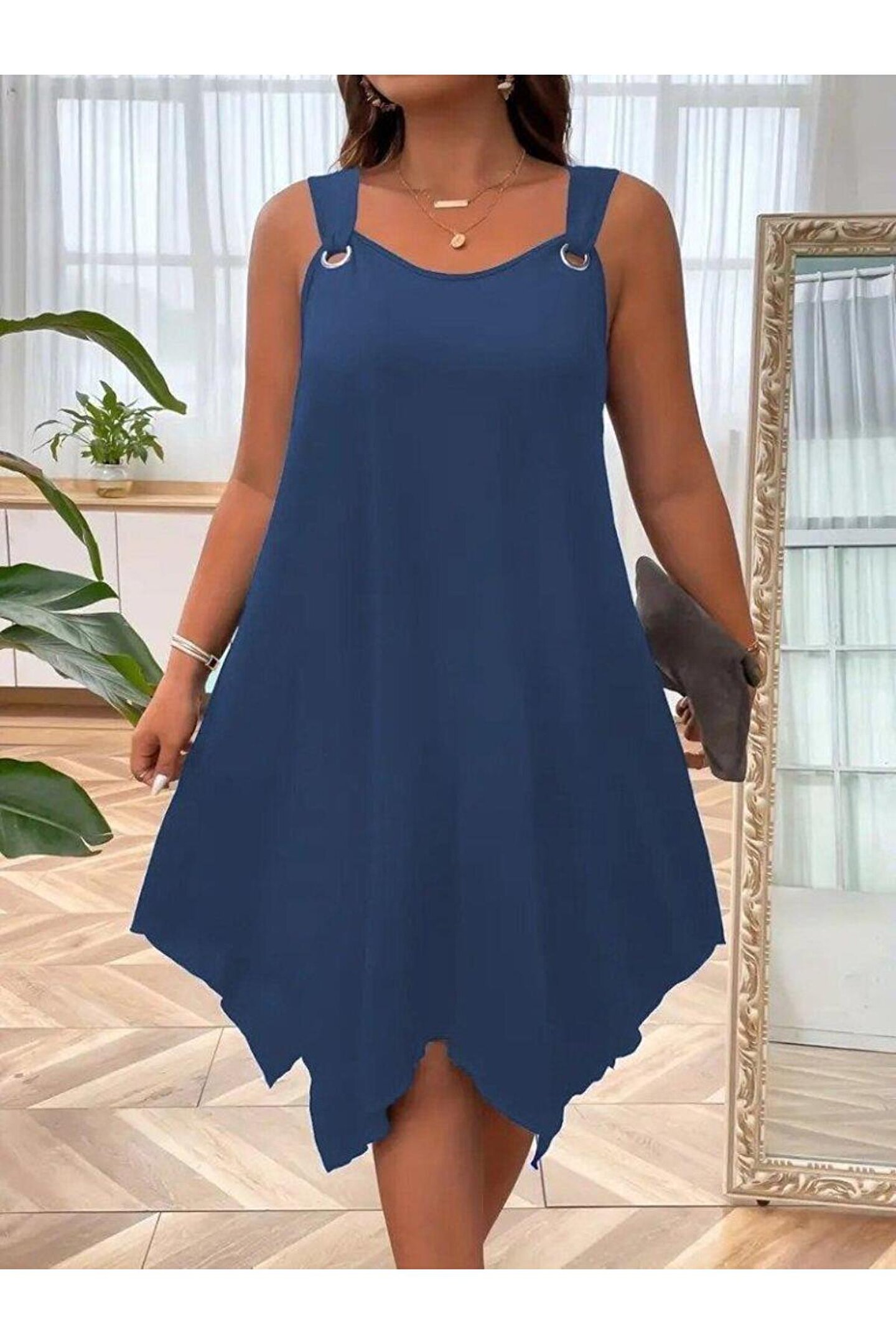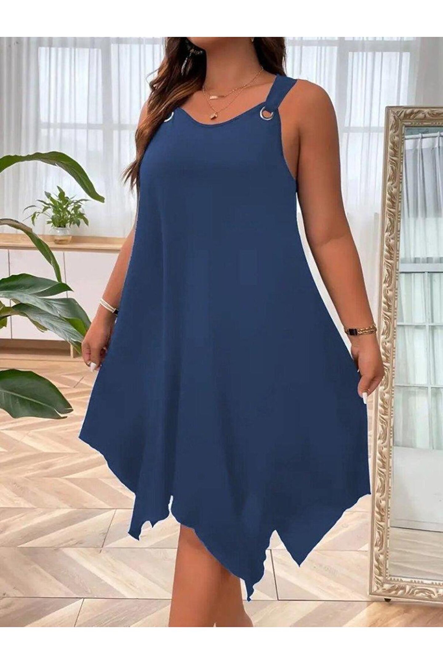 Kadın Askılı Yuvarlak Yaka Kuş Gözü Detaylı Asimetrik Viskon Elbise