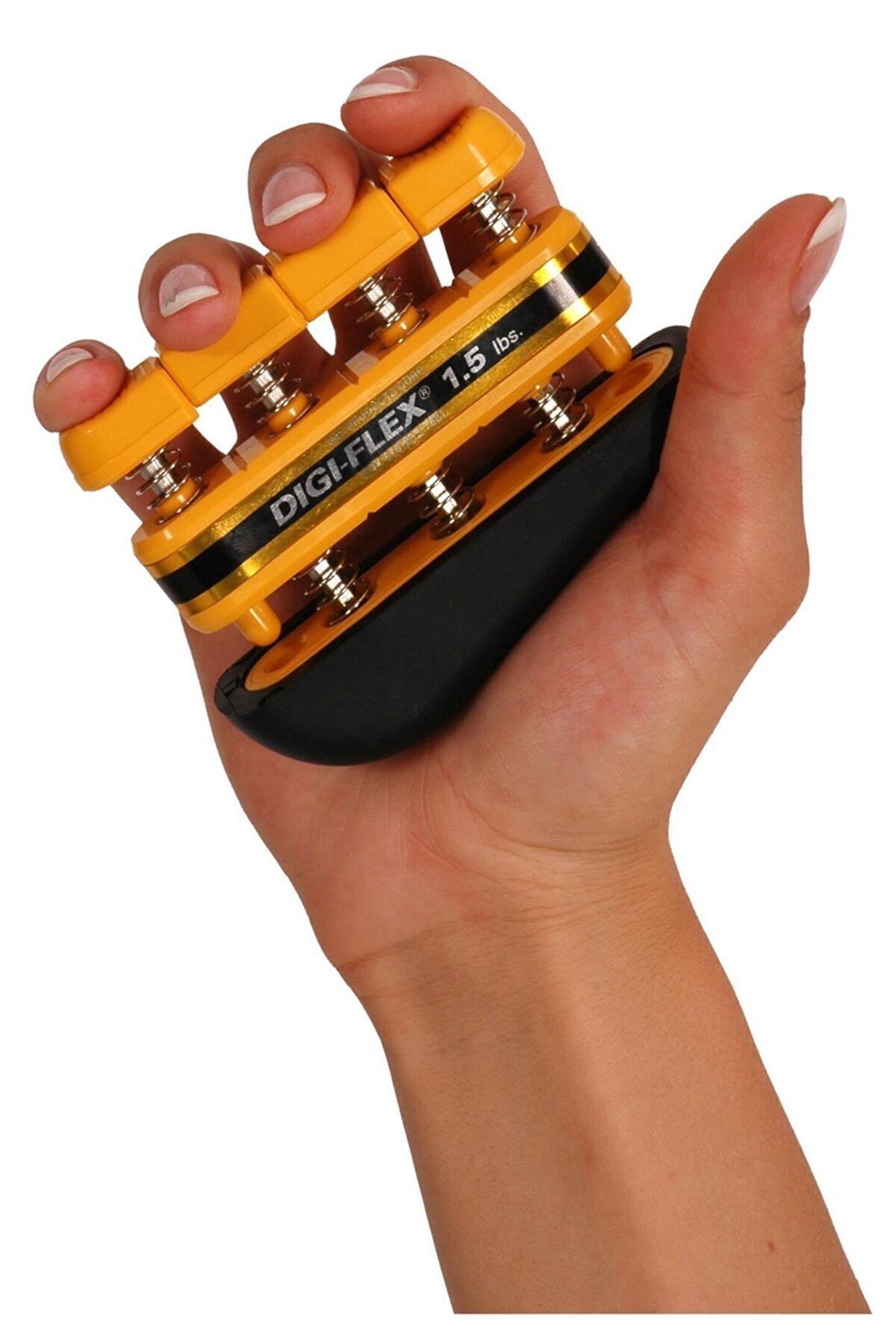 Digi-Flex'in her bir parmak için ayrı ayrı yaylarla kuvvetlendirilmiş butonları sayesinde güçsüz parmaklar yüzünden güçlülerin çalışmasını engellemez. Bu özellik, daha kolay, hızlı ve başarılı rehabilitasyon süreci geçirmenizi sağlar. 5 ayrı direnç/renk ürün mevcuttur. Farklı direnç ölçülerinin olması terapistlerin gelişimi ölçmesini sağlar. Dirençler Sarı / 0.7kg Kırmızı / 1.4kg Yeşil / 2.3kg Mavi / 3.2kg Siyah / 4.1kg;