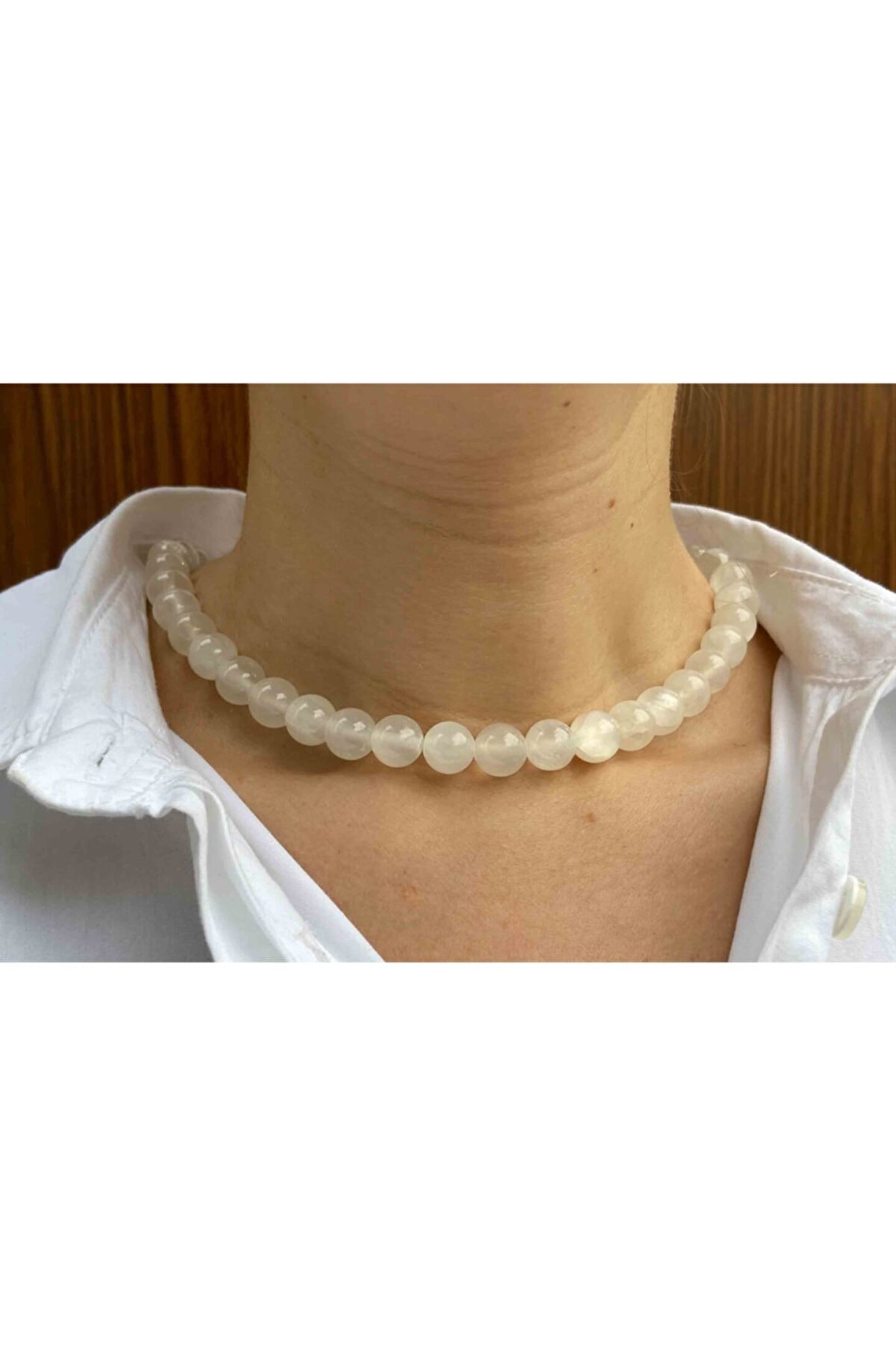 - Doğal Selenit taşı kullanılarak üretilmiş, şıklığı ve zarafeti bir arada sunan kolye; - 10 mm boyutundaki bu kolye, günlük kullanım için idealdir ve her türlü kıyafetle uyum sağlar; - Doğal taş materyali sayesinde her kolye benzersizdir ve doğanın güzelliklerini boynunuzda taşımanızı sağlar; - Selenit taşı, enerji verici özellikleriyle bilinir ve pozitif enerjiyi yansıtır;