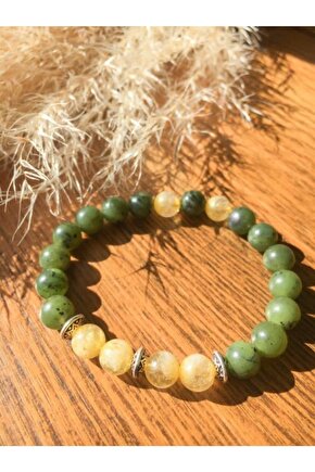 Doğal taş kullanımı sayesinde her bileklik benzersiz ve otantik bir görünüm sunar; Yeşim ve sitrin taşı kombinasyonu, zarif ve göz alıcı bir parlaklık kazandırır; Taş materyali, bilekliğin hem dayanıklı hem de uzun ömürlü olmasını sağlar;