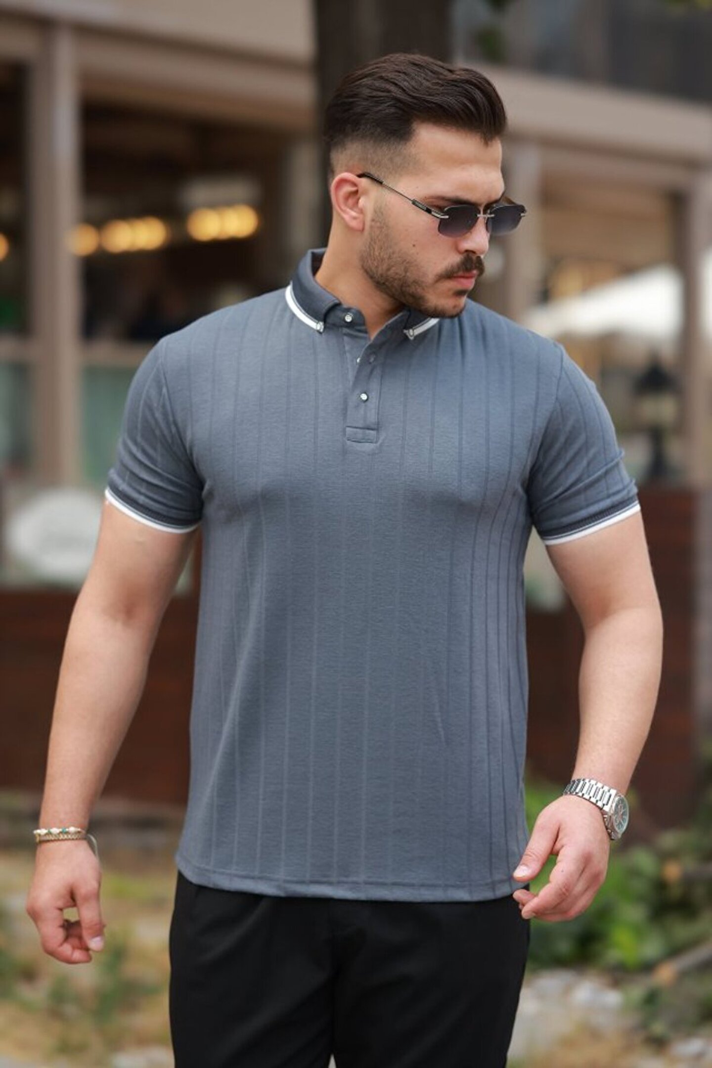 Erkek Düğme Yakalı Jakar Kumaş Kısa Kollu Tişört