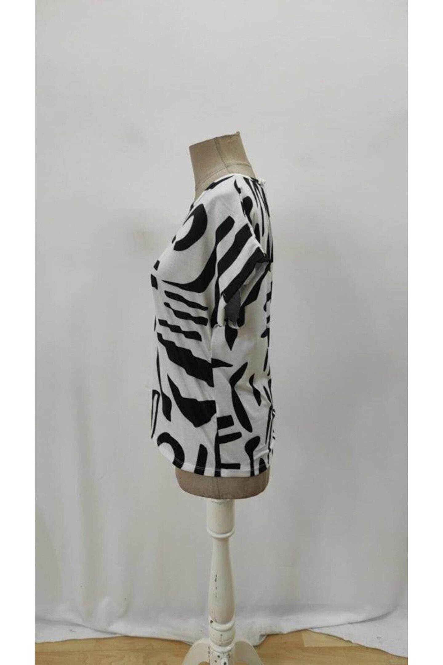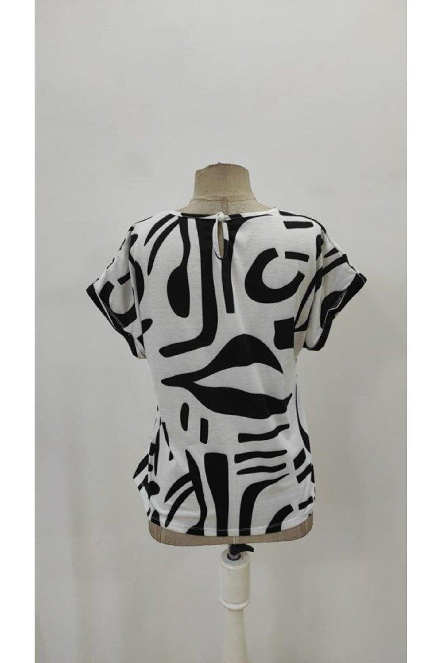 Kadın Kısa Kollu Yuvarlak Yaka Desenli Süprem Bluz