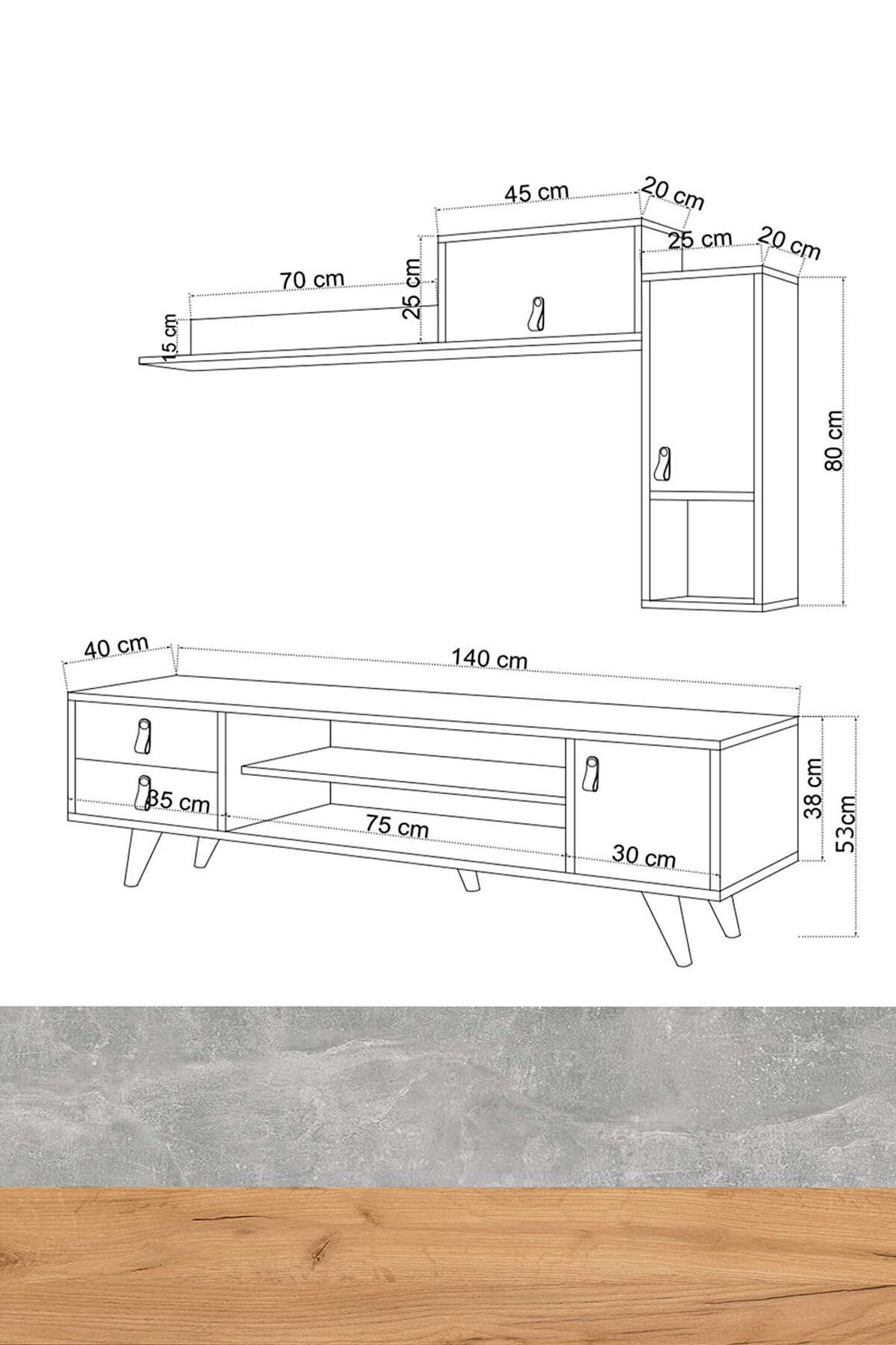 Ürün Ölçüleri;G140 cm D40 cm Y53 cm;G:Genişlik / D:Derinlik / Y:Yükseklik;*Ölçü detayları teknik görselde yer almaktadır.;Malzemeler;GÖVDE: GOLD OAK(ALTIN MEŞE) SUNTALAM;KAPAK: CONCRETE (BETON) SUNTALAM;AYAK: CİLALI AHŞAP AYAK;KULP: SUNİ DERİ;Renk;ALTIN MEŞE-BETON GRİ;Ürün Özellikleri;Kullanılan Tüm Malzemeler TSE onaylı, E1 Kalitesinde olup Kanserojen madde içermez ve Anti Bakteriyeldir.;Montajı kolaylaştıracak biçimde kurulum talimatı yer almaktadır. Ürün yüzeyinde bulunan ahşap doku, doğal ağacı aratmayacak görünümdedir. ;Beton desenli malzeme ile birleşerek ultra modern bir tasarım haline gelmiştir. Suni deri kulplar kullanılarak BETONG PLUS serisinin takıları tamamlanmıştır. Seriye ait diğer ürünleri kombin önerilerinde bulabilirsiniz..;Montaj;Ürünlerimiz özel kargo paketinde demonte olarak teslim edilir.;Paketlerde gerekli kurulum şeması, tüm vida ve aksesuarların montaj seması ile uyumlu malzeme torbası ve kullanma kılavuzu çıkmaktadır.;Kurulum müşteriye aittir.;Hızlı ve hatasız kurulum için montaj şeması bulunmaktadır.;Ürün kurulumunda profesyonel yardım alınmalıdır.;Montaj İçin Gerekli Aletler;*Şarjlı Tornavida;*Çekiç;Değişim ve İade Koşulları;Ürünü kargodan teslim alınırken paketler mutlaka kontrol edilmeli, hasarlı paket veya ürünler teslim alınmamalı ve kargo yetkilisine hasar tespit tutanağı hazırlanması doğrultusunda yardım talep etmeniz gerekmektedir.;Çevreye ve sağlığa zararsız kanserojen madde içermeyen E1 kalite standardında malzeme kullanılmıştır.;Aksesuarlar;* Montaj: Ürün kurulu olmadan (demonte olarak) kutulu halde teslim edilmektedir.;* Kutu içinde tüm kurulum için gerekli olan malzeme çıkmaktadır (Bazı ürünlerin kurulumu için ek olarak tornavida, çekiç gerekebilir);* Ürün resimlerindeki aksesuarlar teşhir amaçlı olup, fiyata dahil değildir.;KOMBİN ÜRÜNLER;* BETON PLUS- SUWON GARDIROP;* BETON PLUS- PAJU KOMODİN;* BETON PLUS- SOOJİN ÇALIŞMA MASASI;* BETON PLUS- SPANZE ŞİFONYER;* BETON PLUS- WİTLOF ŞİFONYER;* BETON PLUS- ASTAVA YAN SEHPA;* BETON PLUS- SEVA TV SEHPASI; * BETON PLUS- SOOMİN ÇALIŞMA MASASI;* BETON PLUS- OLENJ KOMODİN;* BETON PLUS- LAVEN DRESUAR;* BETON PLUS- OLENJ KOMODİN;* BETON PLUS- PLAMEN DRESUAR;* BETON PLUS- PRİLİKA KONSOL