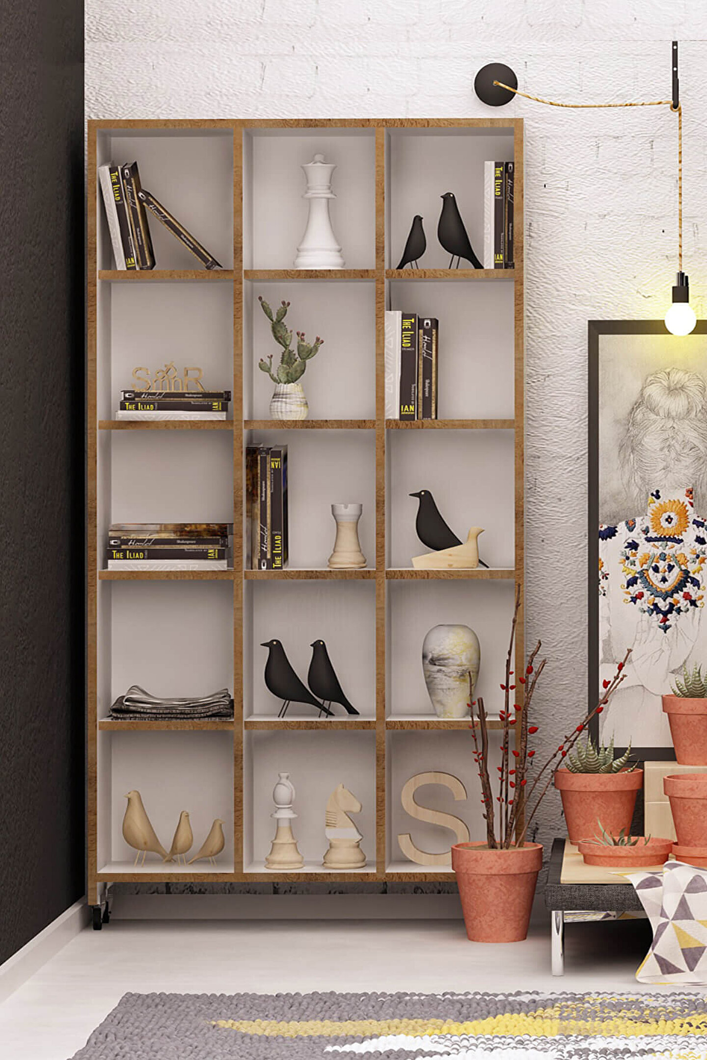Ürün Ölçüleri;G90 cm D25 cm Y165,5 cm;G:Genişlik D:Derinlik Y:Yükseklik;Malzemeler;GÖVDE: BEYAZ SUNTALAM;PVC: KOYU MEŞE;Renk;BEYAZ/ KOYU MEŞE;AYAK;5,5 CM PLASTİK TEKERLEK;Ürün Özellikleri;Kullanılan Tüm Malzemeler TSE onaylı , E1 Kalitesinde olup Kanserojen madde içermez ve Anti Bakteriyeldir.;Montajı kolaylaştıracak şekilde kurulum talimatı yer almaktadır. Ürün tekerlekli ayakları sayesinde basitçe taşınabilir, yer değiştirebilir durumdadır.;Renkli ön yüzü ile beyaz gövde üzerinde farklılık arayanları sevindirecek niteliktedir. Depolama ihtiyacını giderebilecek minimal ölçülere sahiptir. ;Tüm mekanlarda derleyici dekorasyon ögesi olarak kullanılmaya uygundur.;Montaj;Ürünlerimiz özel kargo paketinde demonte olarak teslim edilir.;Paketlerde gerekli kurulum şeması, tüm vida ve aksesuarların montaj seması ile uyumlu malzeme torbası ve kullanma kılavuzu çıkmaktadır.;Kurulum müşteriye aittir.;Hızlı ve hatasız kurulum için montaj şeması bulunmaktadır.;Ürün kurulumunda profesyonel yardım alınmalıdır.;Montaj İçin Gerekli Aletler;*Şarjlı Tornavida;*Çekiç;Değişim ve İade Koşulları;Ürünü kargodan teslim alınırken paketler mutlaka kontrol edilmeli, hasarlı paket veya ürünler teslim alınmamalı ve kargo yetkilisine hasar tespit tutanağı hazırlanması doğrultusunda yardım talep etmeniz gerekmektedir.;Çevreye ve sağlığa zararsız kanserojen madde içermeyen E1 kalite standardında malzeme kullanılmıştır.;Aksesuarlar;* Montaj: Ürün kurulu olmadan (demonte olarak) kutulu halde teslim edilmektedir.;* Kutu içinde tüm kurulum için gerekli olan malzeme çıkmaktadır (Bazı ürünlerin kurulumu için ek olarak tornavida, çekiç gerekebilir);* Ürün resimlerindeki aksesuarlar teşhir amaçlı olup, fiyata dahil değildir.
