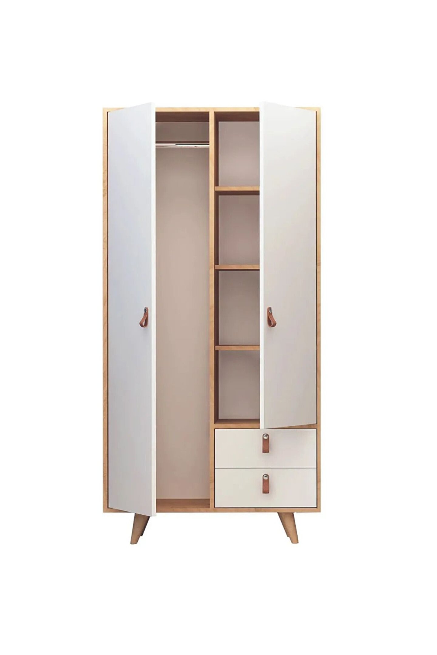 İskandinav stilinin sade ve modern çizgilerini yatak odanıza taşıyan Lusso 2 kapaklı gardrop, minimalist tasarımıyla mekanınıza şıklık katar; Dayanıklı ahşap gövdesi sayesinde uzun ömürlü kullanım sunar ve her türlü iç mekan dekorasyonuyla uyum sağlar; İki kapaklı yapısı ile geniş saklama alanı sunarak kıyafetlerinizi ve diğer eşyalarınızı düzenli bir şekilde saklamanızı kolaylaştırır;
