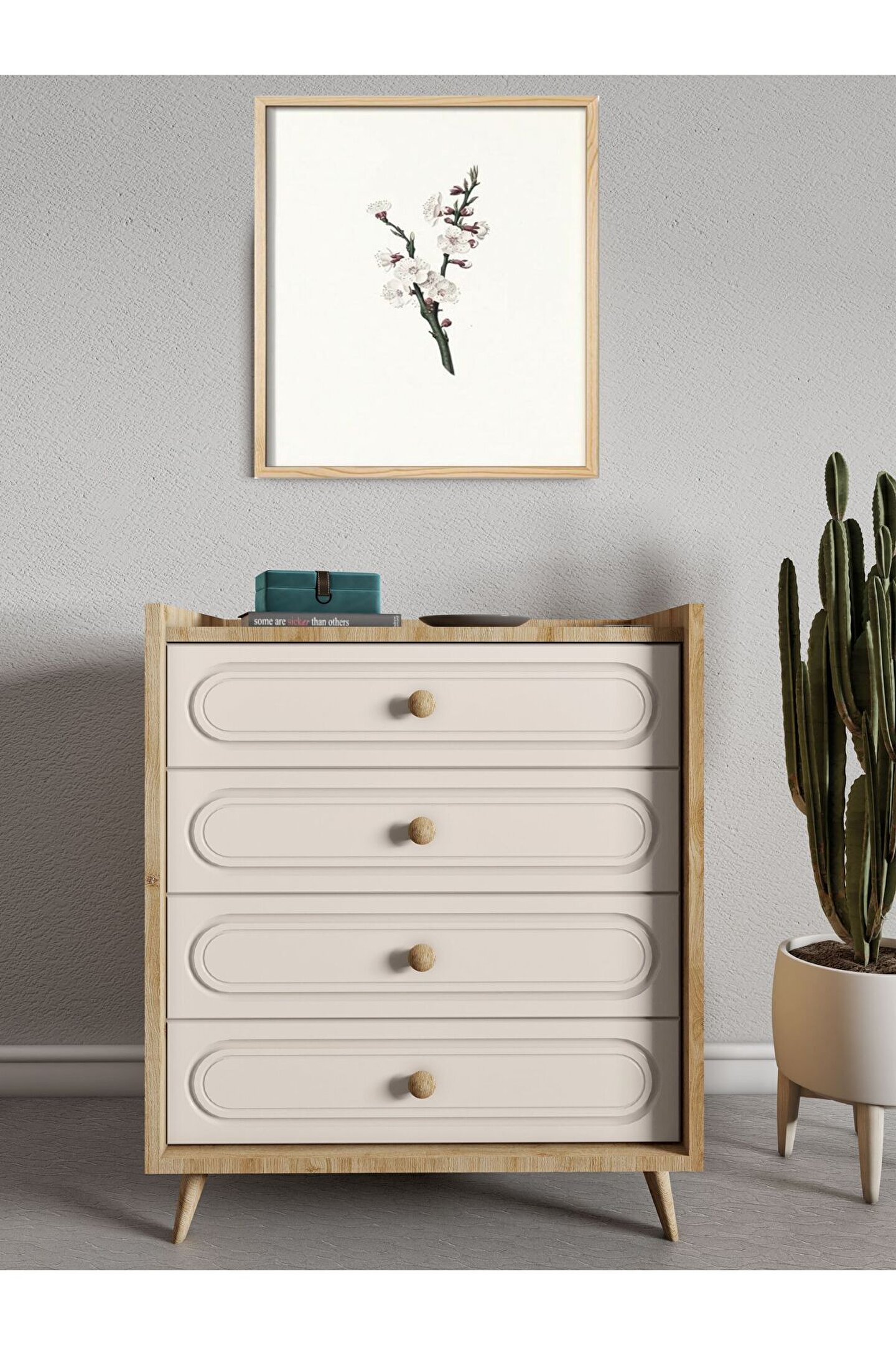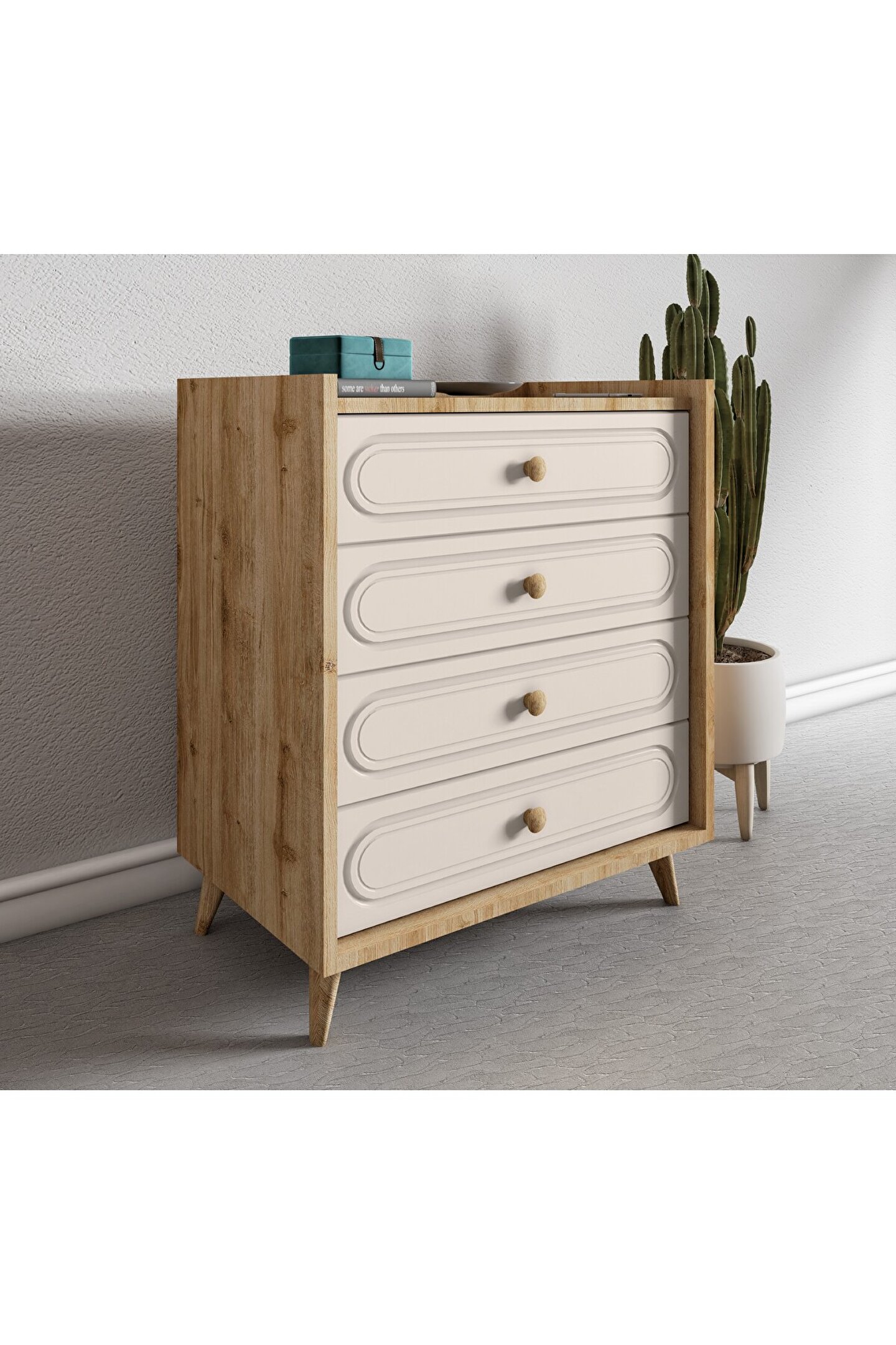 - Dört geniş çekmece kapasitesiyle eşyalarınızı düzenli bir şekilde saklamanızı sağlar; böylece ihtiyacınız olan her şeyi kolayca bulabilirsiniz.