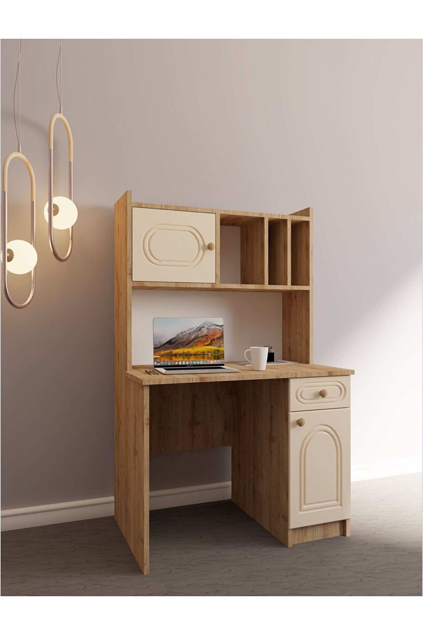 MYMOB SOFİA BOHEM ÇALIŞMA MASASI ÖLÇÜ: G: 95CM Y:154CM D:60CM KAPAKLAR MDF BOYAMA GÖVDE SUNTALAMDIR.; - Kapaklar Bohem model olup oldukça dekoratif bir modeldir.; - Geniş yüzey alanı ile rahat çalışma imkanı sağlar; 95 cm genişliğindeki tasarımı sayesinde geniş dosya ve kitap rafları için idealdir.; - Derinliği 60 cm olan bu masa, kolay erişim ve düzenli bir çalışma ortamı oluştururken ekstra depolama alanından da faydalanmanızı sağlar.;