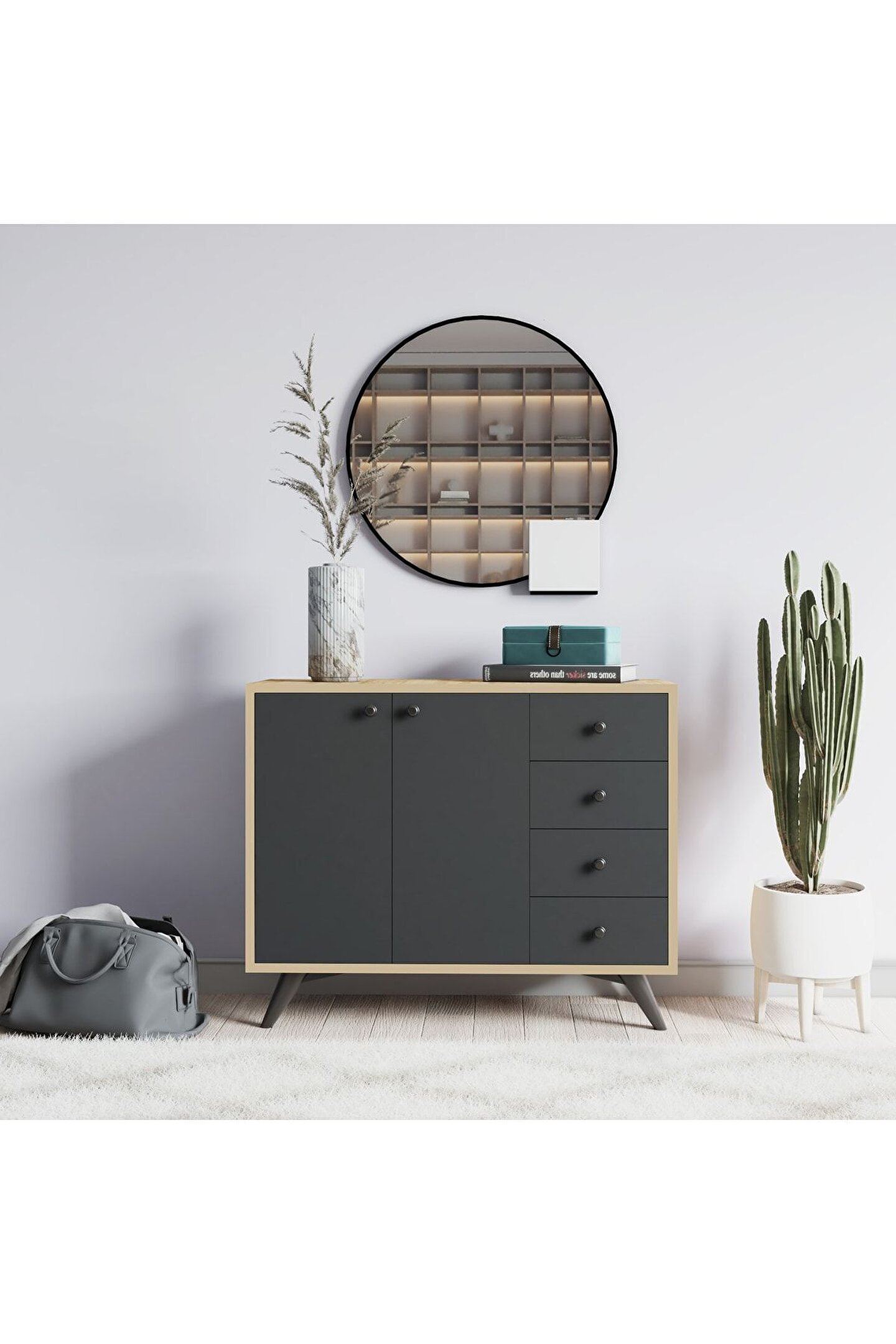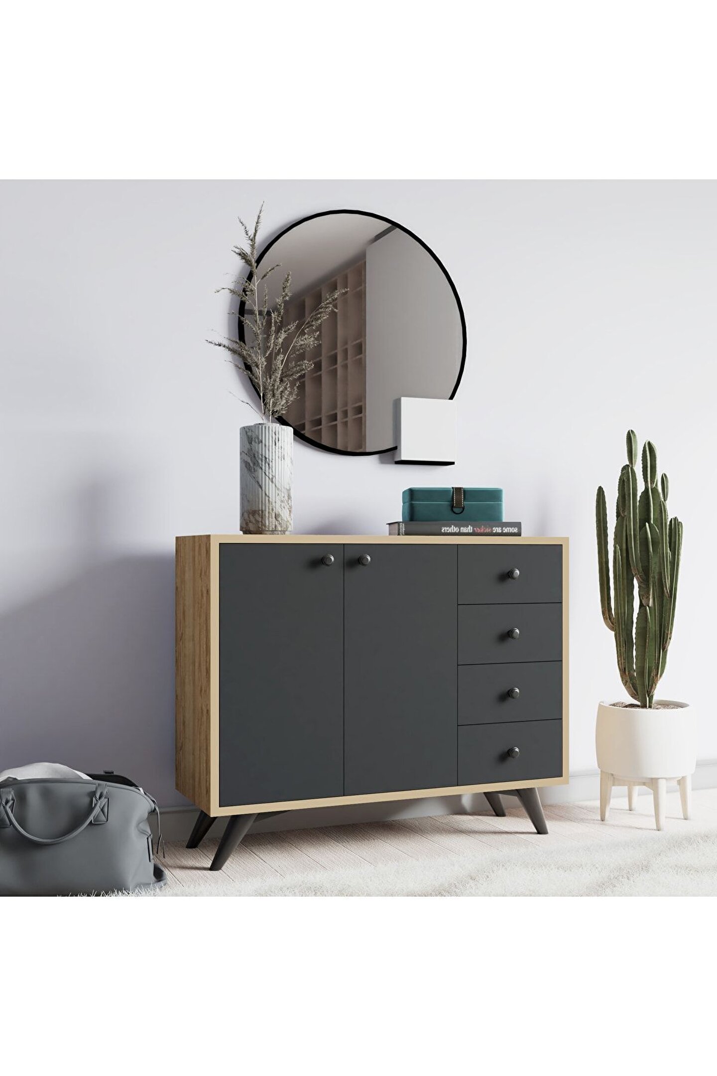 WAGA SAFİR MEŞE/ANTRASİT ÇOK AMAÇLI DOLAP Ürün Ölçüleri G:100 cm D:35 cm Y:82 cm (G: Genişlik D:Derinlik Y: Yükseklik) ; Malzemeler Gövde: Safir meşe suntalam Kapak: Antrasitsuntalam ; Kullanılan Tüm Malzemeler TSE onaylı, E1 Kalitesindeolup Kanserojen madde içermez.; ; Ürün gövdesi 18 mm kalınlığında safirmeşe renginde suntalam malzeme kullanılarak üretilmiştir.; Yaşam alanlarındakolay kullanımlı, toparlayıcı ve dekorasyonu destekleyen şık bir üründür.; ; Kurulum müşteriye aittir.; MontajÜrünlerimiz özel kargo paketinde demonte olarak teslim edilir.; Paketlerdegerekli kurulum şeması, tüm vida ve aksesuarların montaj seması ile uyumlumalzeme torbası ve kullanma kılavuzu çıkmaktadır.; Hızlı ve hatasızkurulum için montaj şeması bulunmaktadır.; Montaj İçin Gerekli Aletler *ŞarjlıTornavida *Çekiç ; Değişim /İade Koşulları Ürünükargodan teslim alınırken paketler mutlaka kontrol edilmeli, hasarlı paket veyaürünler teslim alınmamalı ve kargo yetkilisine hasar tespit tutanağıhazırlanması doğrultusunda yardım talep etmeniz gerekmektedir.; ; Ürün resimlerindeki aksesuarlarteşhir amaçlı olup, fiyata dahil değildir.; ;