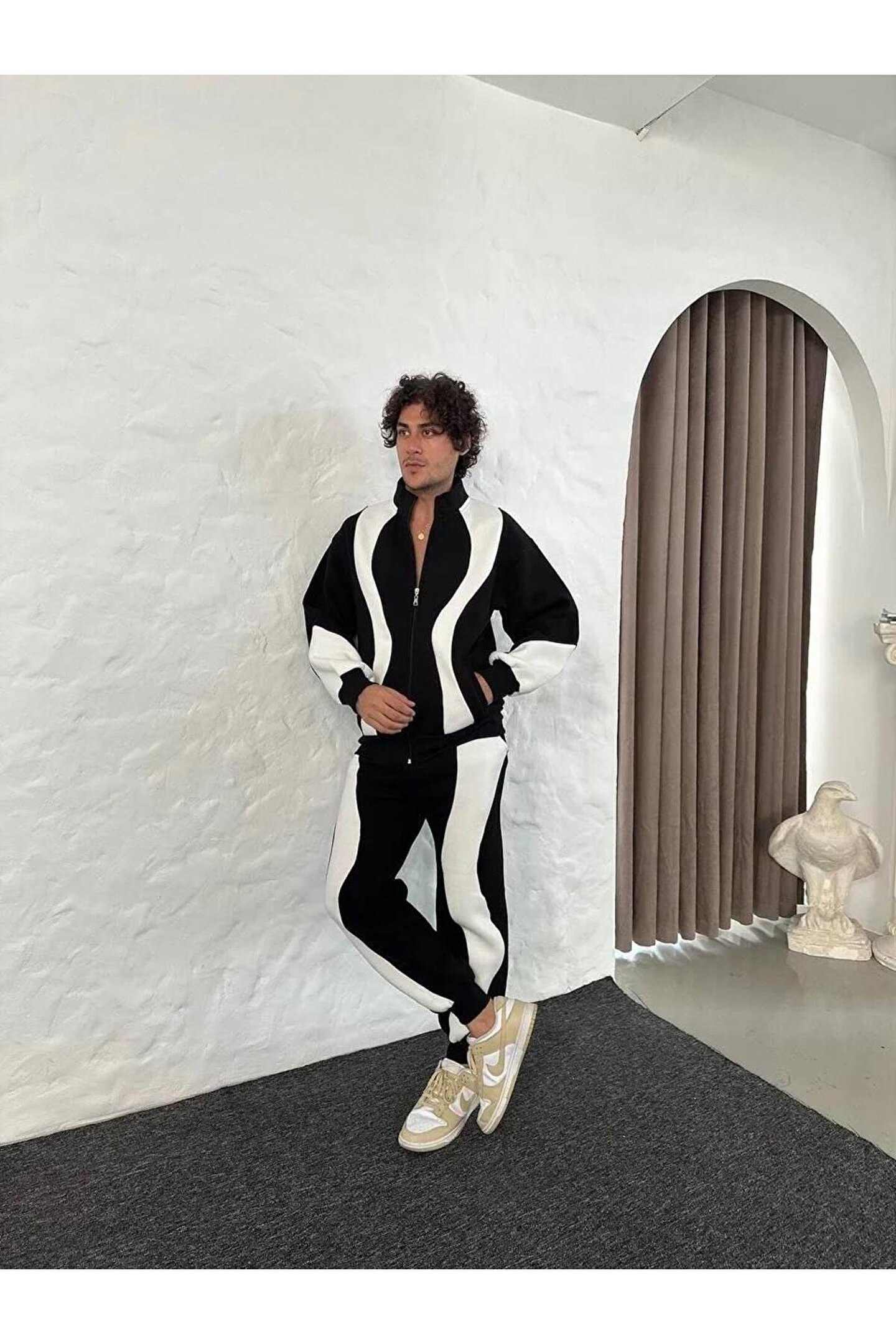 mzpkartan Erkek Premium Parçalı Eşofman Takım - Dik Yaka Fermuarlı Sweatshirt, - Siyah