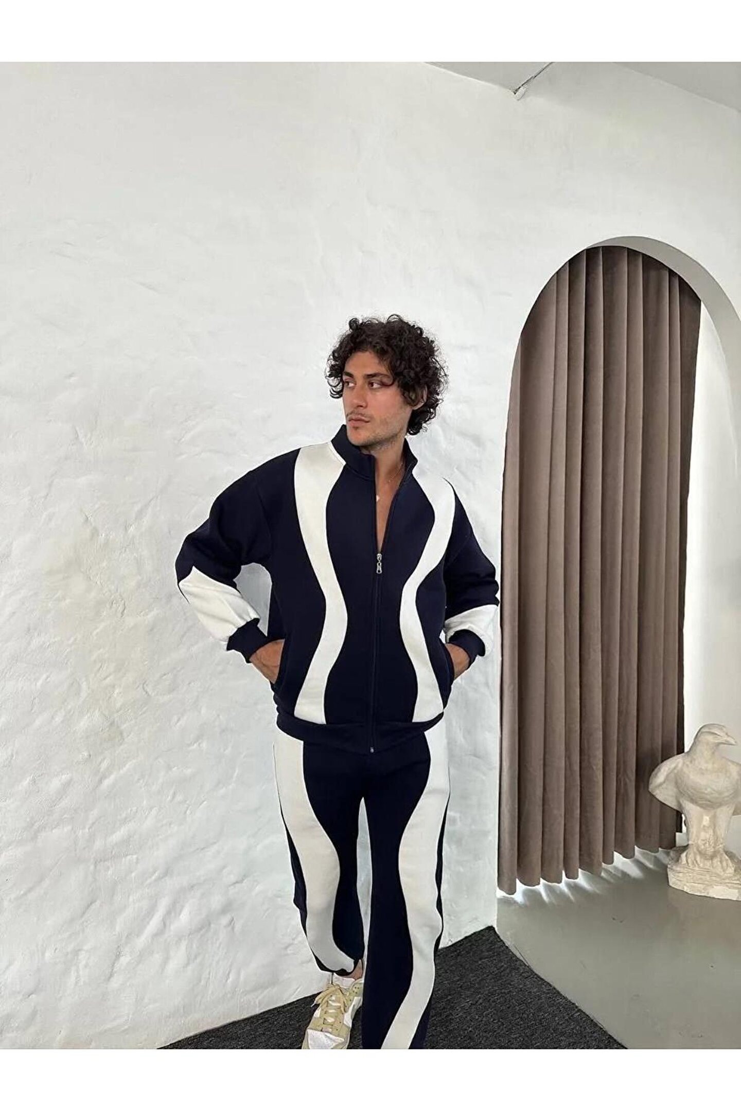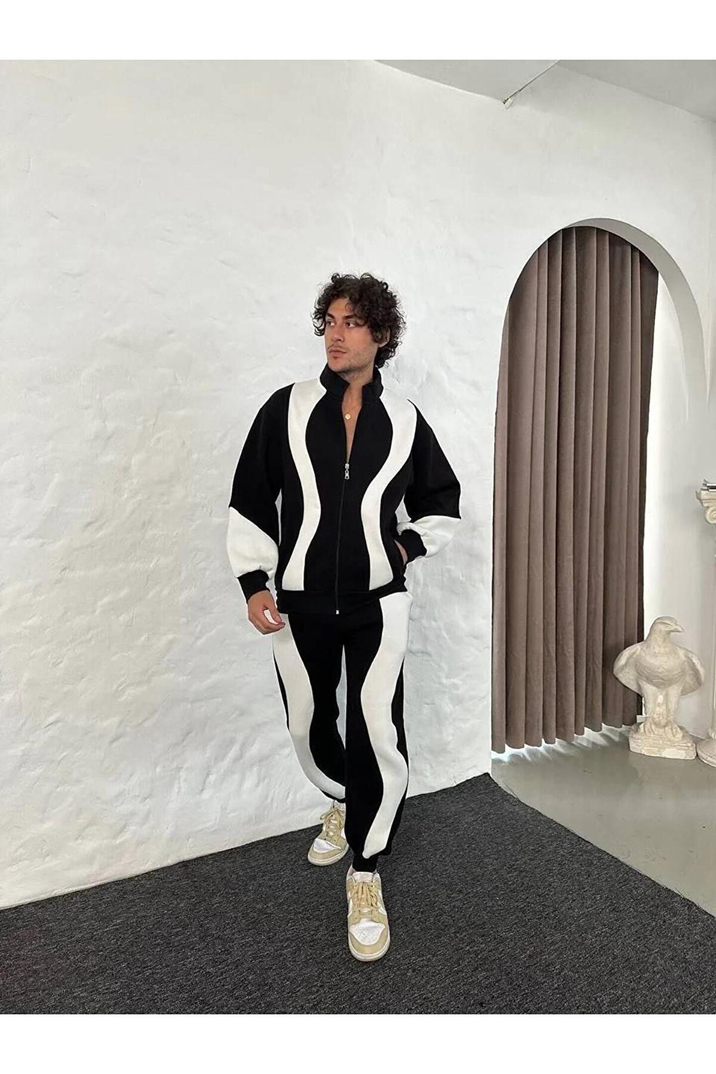 mzpkartan Erkek Premium Parçalı Eşofman Takım - Dik Yaka Fermuarlı Sweatshirt, - Siyah