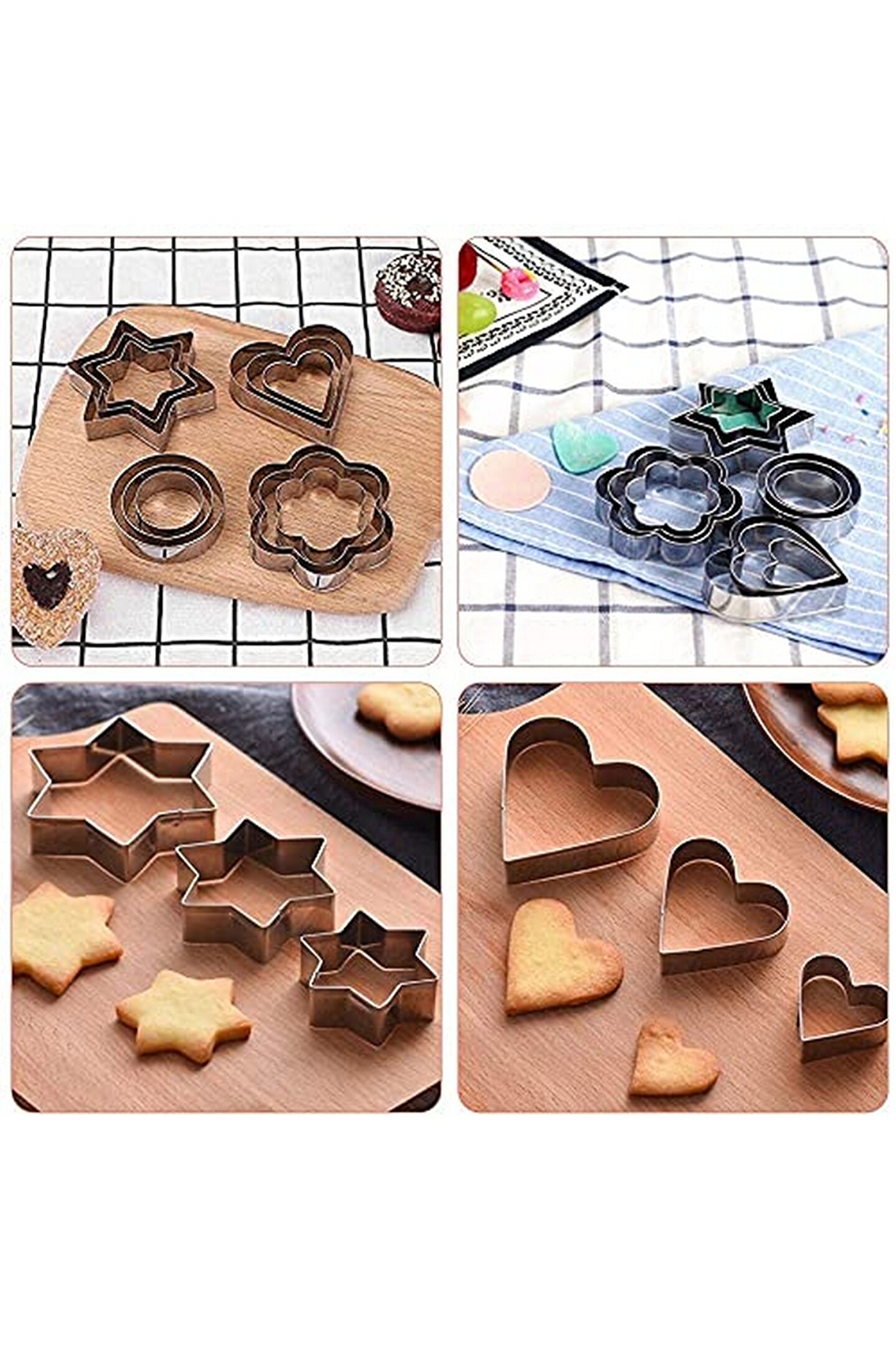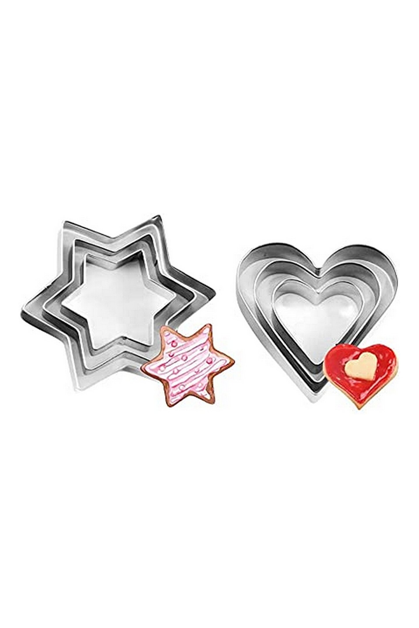 Standart tasarımıyla mutfakta kolay kullanım sunan çelik kurabiye kalıbı, her türlü pişirme işleminizde yanınızda; Dayanıklı çelik materyali sayesinde uzun ömürlü kullanım ve mükemmel pişirme sonuçları elde edilir; Şık kalp yıldız şeklindeki tasarımıyla kurabiyelerinize romantik bir dokunuş katarken, misafirlerinize özel sunumlar yapmanızı sağlar; 6 parçadan oluşan set halinde sunulan bu kalıplar, birden fazla kurabiye yapmanızı kolaylaştırarak zaman kazandırır;