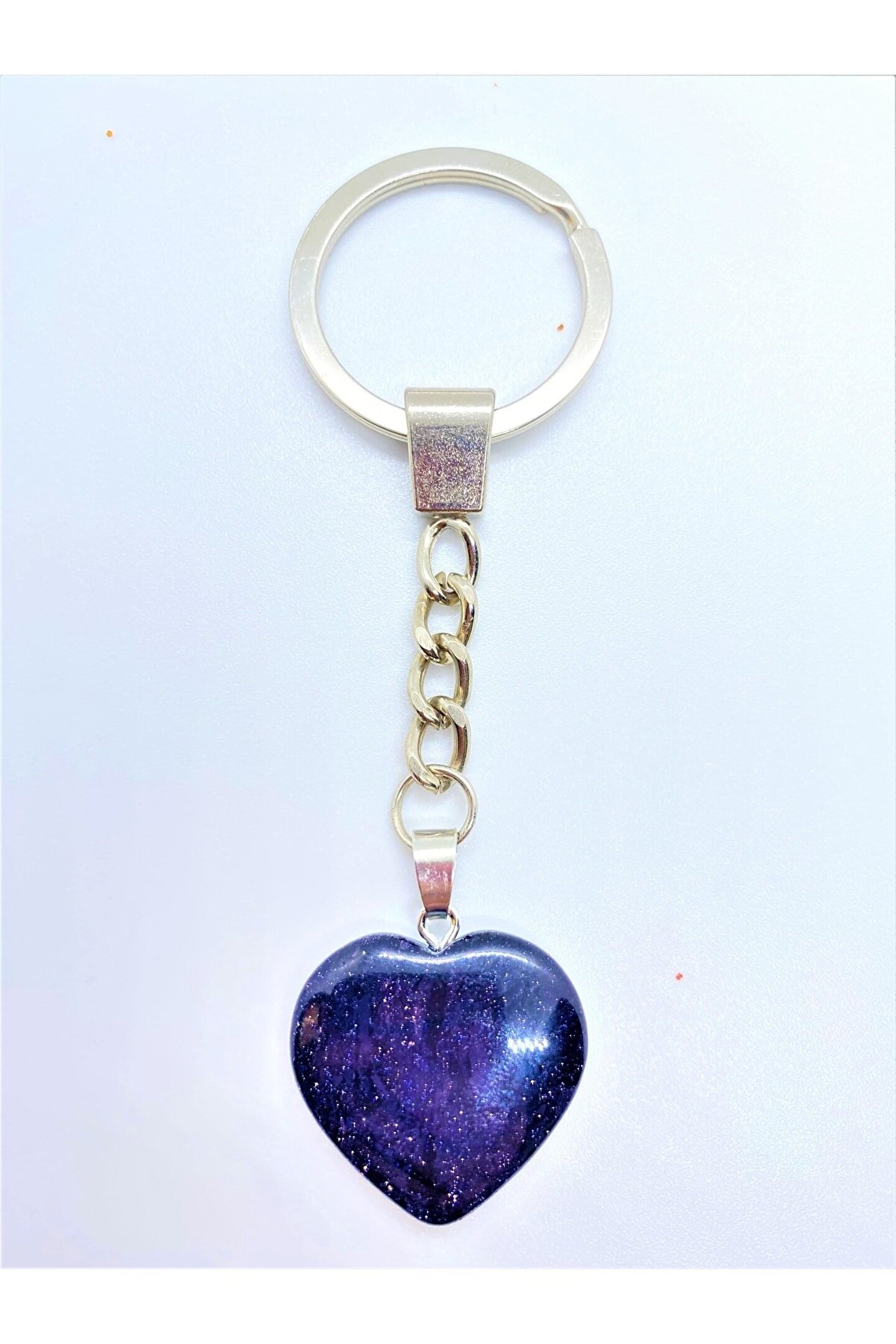 NATURALİM Lacivert Yıldız Taşı Doğal Taş Kalp Anahtarlık Hediyelik