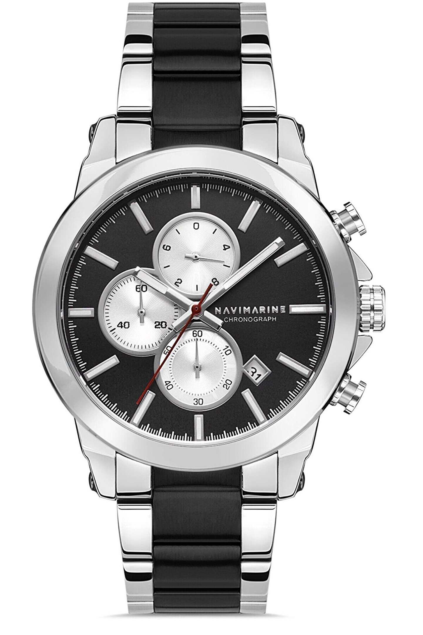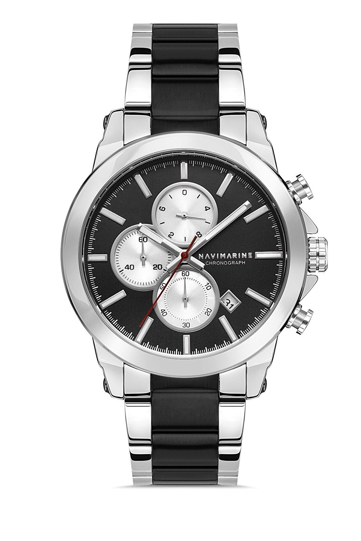 Markası:Navimarine Cinsiyet: Erkek Kadran rengi: Siyah Kasa: Metal Kasa Rengi:Metalik Kasa Şekli: Yuvarlak Kordon Cinsi: Çelik Kordon Rengi:Metalik&siyah Cam:Minarel Garanti: 2Yıl Makine: Pilli Takvim: Var Kronometre Var Ebatı: Dıştan 42mm Kadran ebatı:40mm Su geçirmezlik:3atm