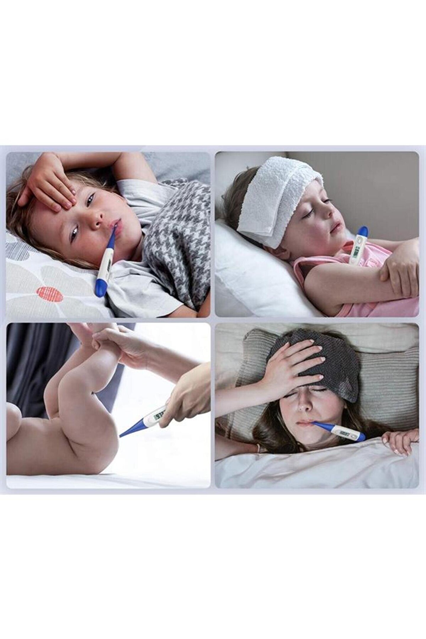 Ateş Ölçümü İçin Dijital Termometre; en çok kullanılan ateş ölçerlerinden olan dijital ateş ölçerler, hassas sıcaklık sensörleri sayesinde vücut sıcaklığını en doğru şekilde ölçülmesine yardımcı olur. Hızlı ve hassas bir ölçüm yapan bu ateş ölçerler, yapılan ölçümü dijital ekranda gösterir. Genellikler koltukaltı ve ağızdan ölçüm yapılır.