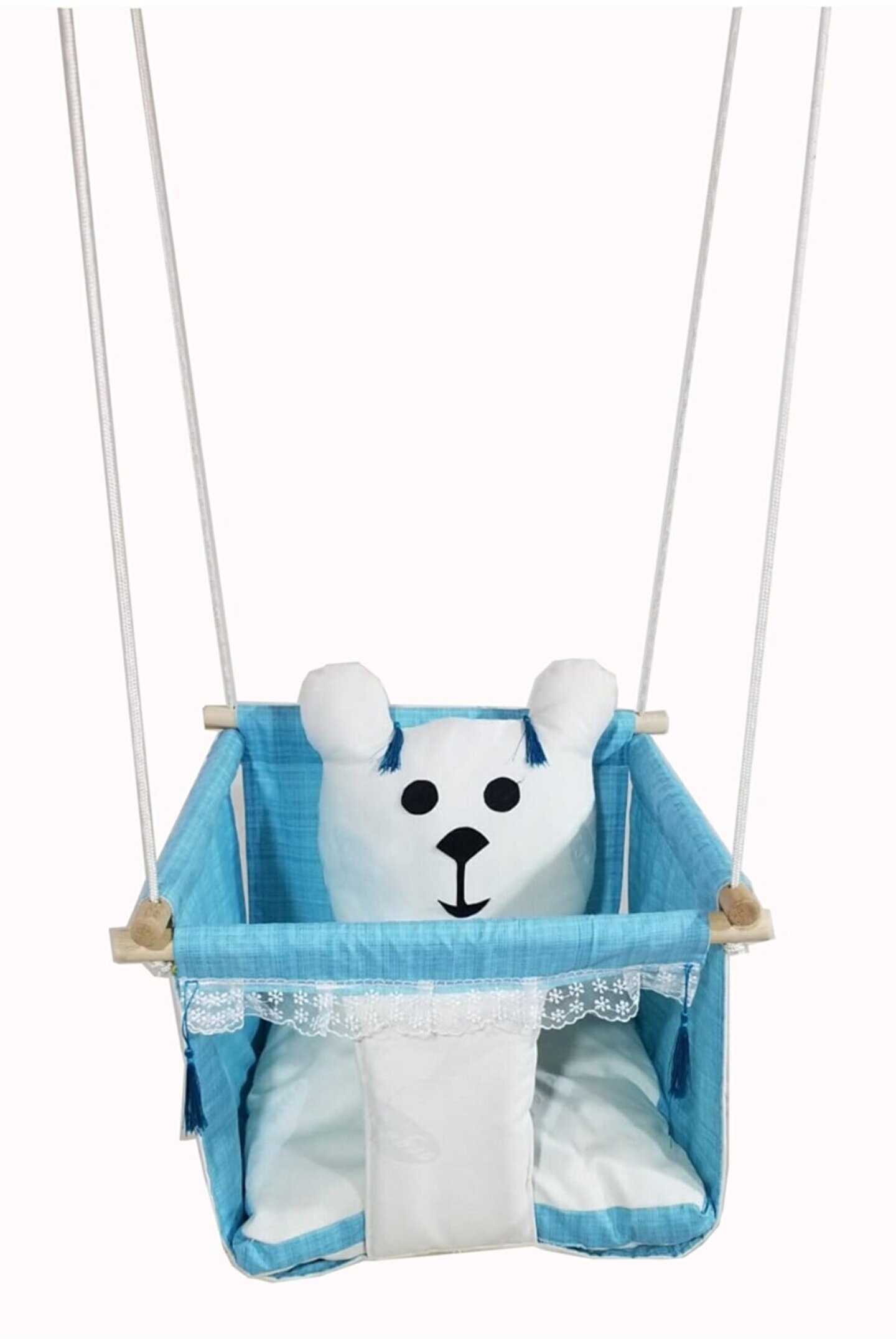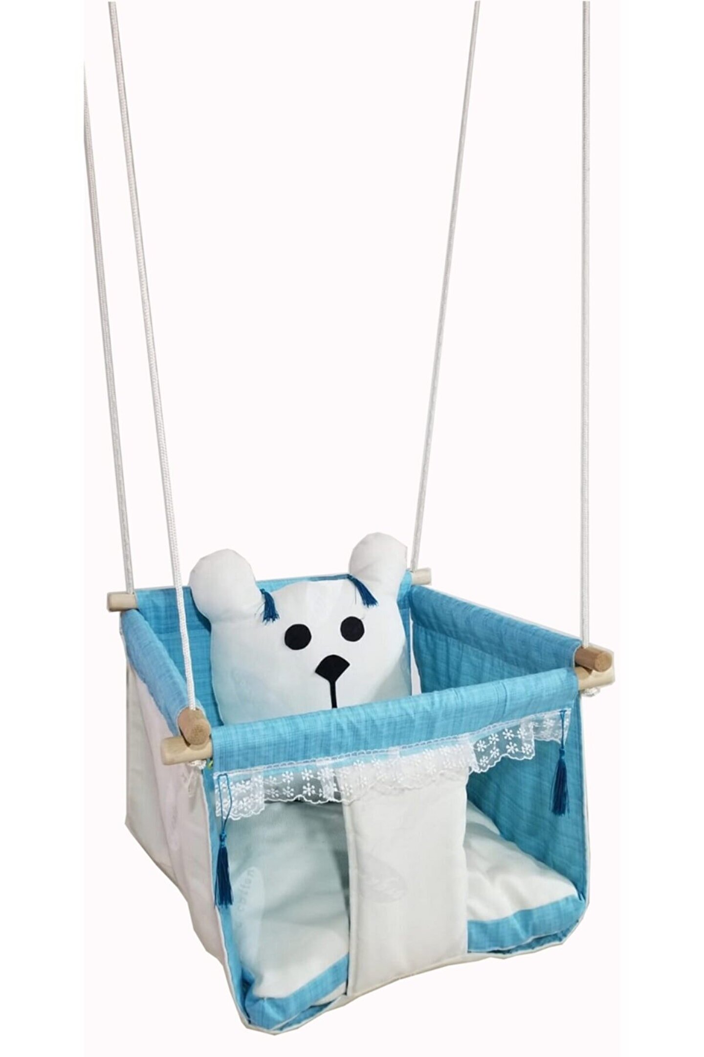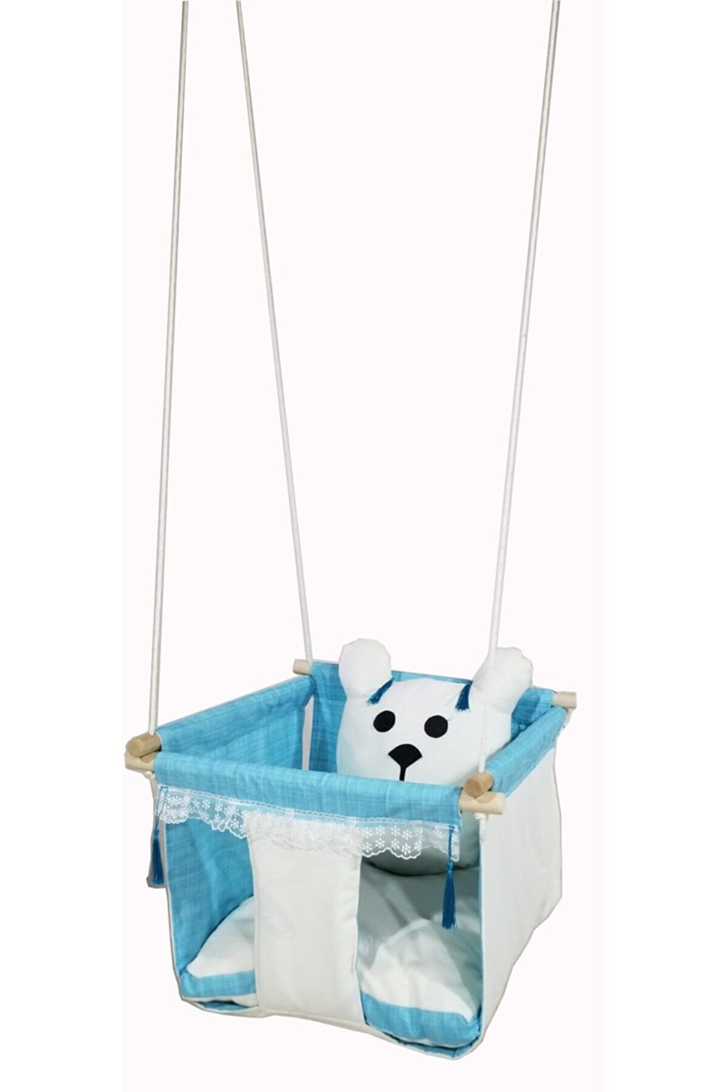 nisa baby tasarım Bebek Çocuk Ev Ve Bahçe Salıncağı Hamak Iki Adet Askı Aparatı Puffy Yastık Ve Minder Turkuaz-beyaz