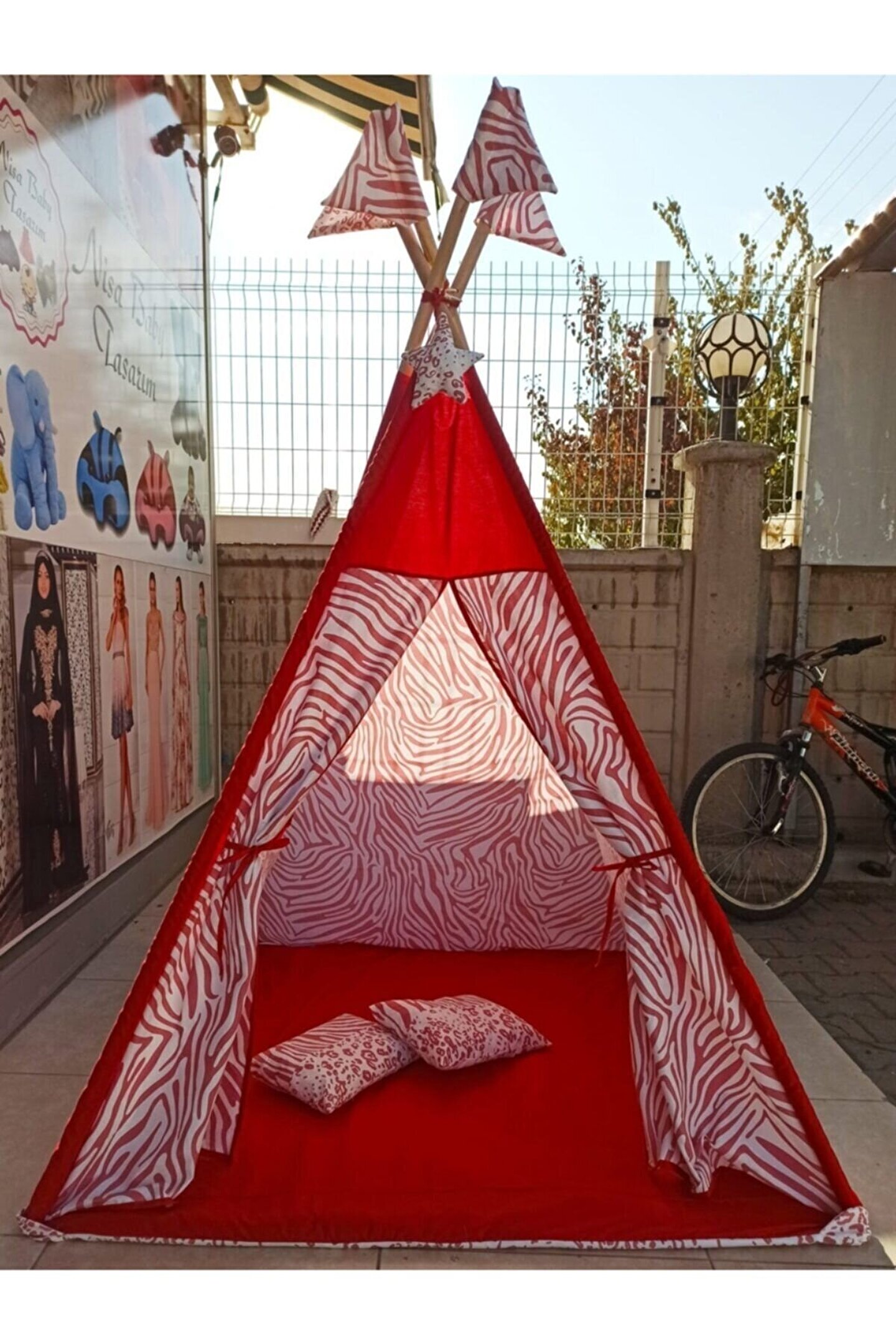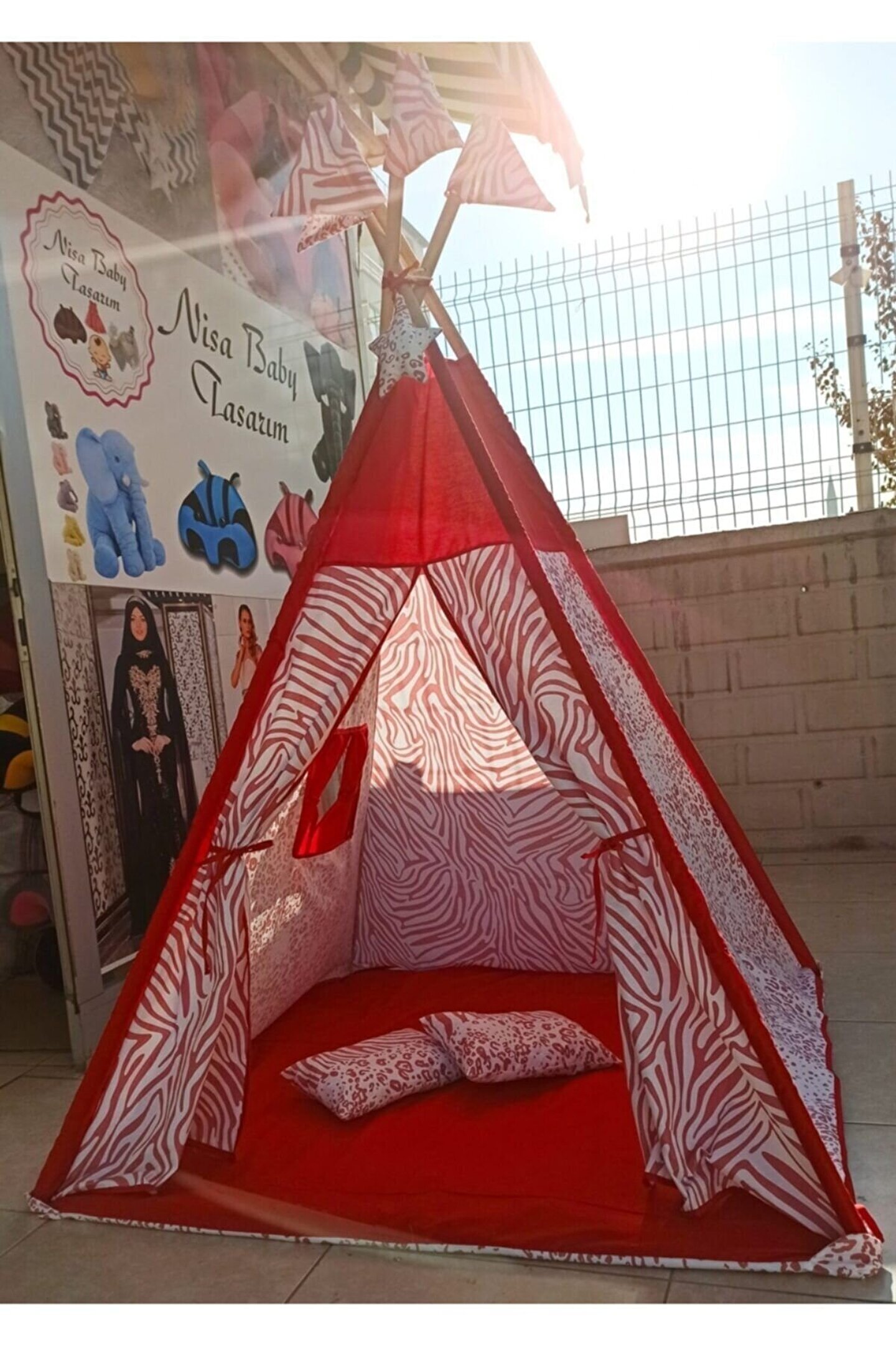 nisa baby tasarım Büyük Boy Kızılderili Oyun Çadırı Sabitleme Aparartı Hediyelidir Kırmızı-beyaz