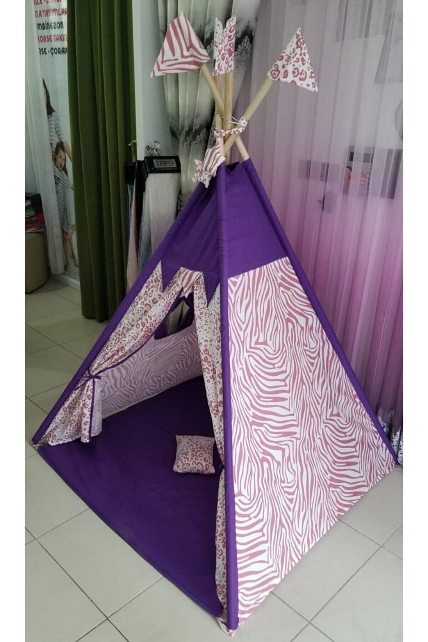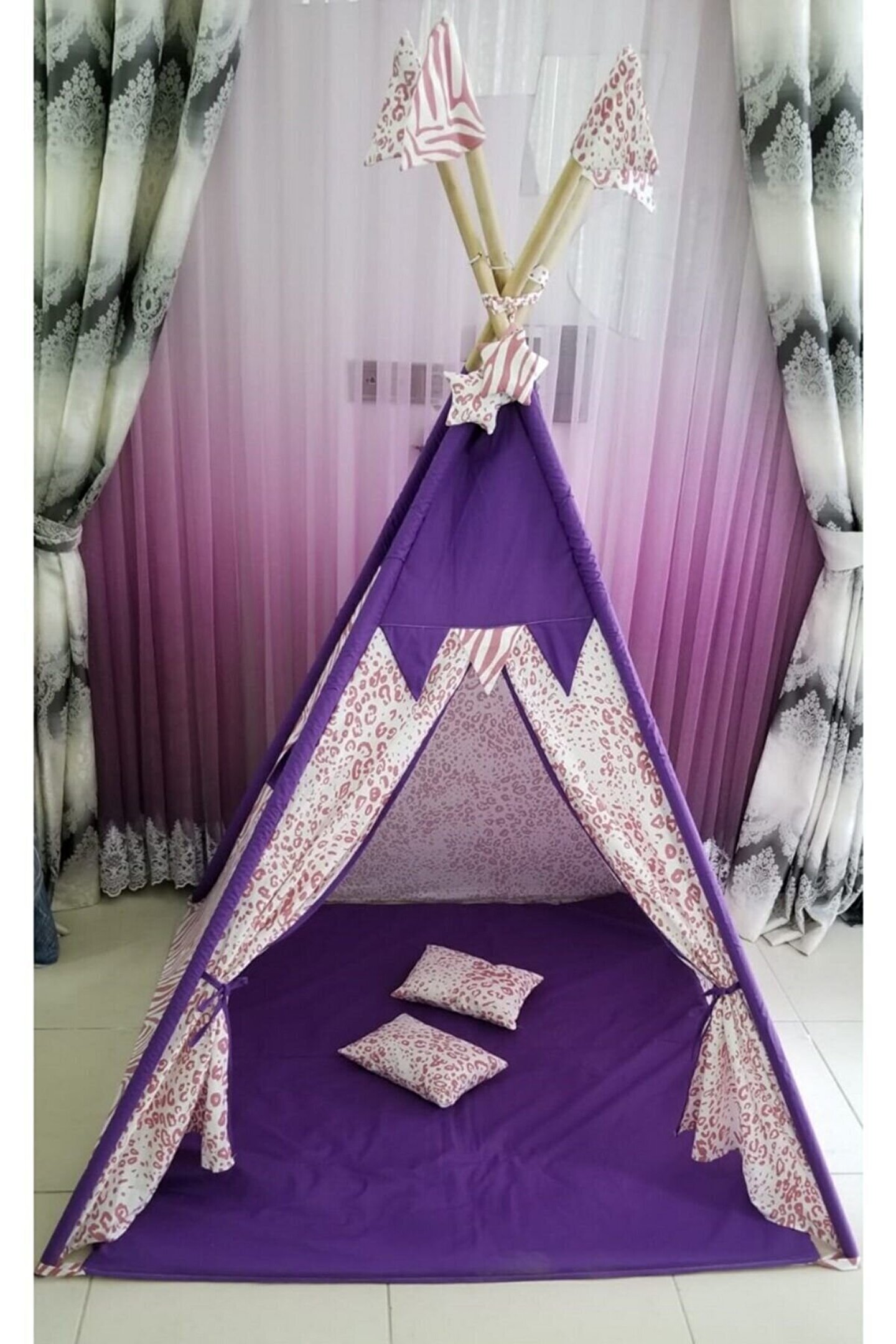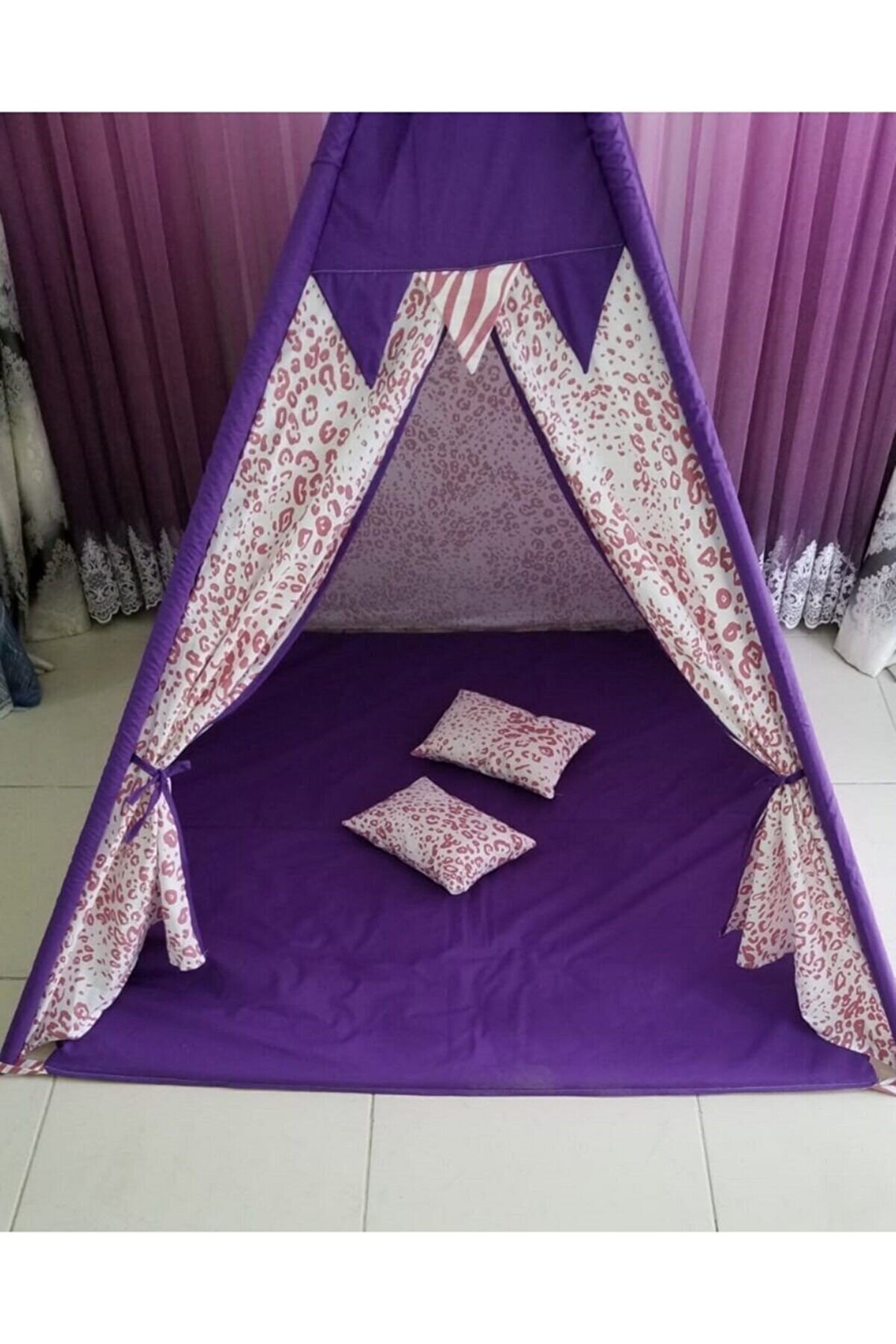 1.20*1.20*2.00 cm kolay kurulum, çift taraflı alt minderi ayrıca seyyar olup oyun minderi olarak da kullanıla bilir. ; - 3 Yaşından itibaren 8 yaşına kadar kullanabileceği, kendine ait özel bir oyun ve dinlenme alanı - Oyun Çadırının 1 Kapısı ve 1 Penceresi bulunmaktadır - Gürgen ağacından iskelet, dış kısmı 100% pamuklu kumaş, nefes alır, yıkanabilir kumaşlardan imal edilmiştir. ; - Evinizin veya bahçenizin bir köşesine çocuğunuza ait oyun alanı oluşturmayı düşünen anne-babalar hiç tereddüt etmeden oyunun keyfini çocukları ile birlikte yaşayabilir. ; - Çocukların hayal güçlerini ortaya çıkararak, hayal dünyasını geliştirir. ; - Evde çocukların yaratıcılığını güçlendirir. ; - Çadırda arkadaşları ile oyunlar oynayarak sosyal gelişimine katkı sağlar. ; - Arkadaşları ile birlikte hareket etme, paylaşma ve işbirliği olgularını geliştirir. ; - Oyun çadırında birlikte kitap okuyarak, resim yaparak birlikte güzel vakit geçirmenin tadını da çıkarabilirsiniz.;