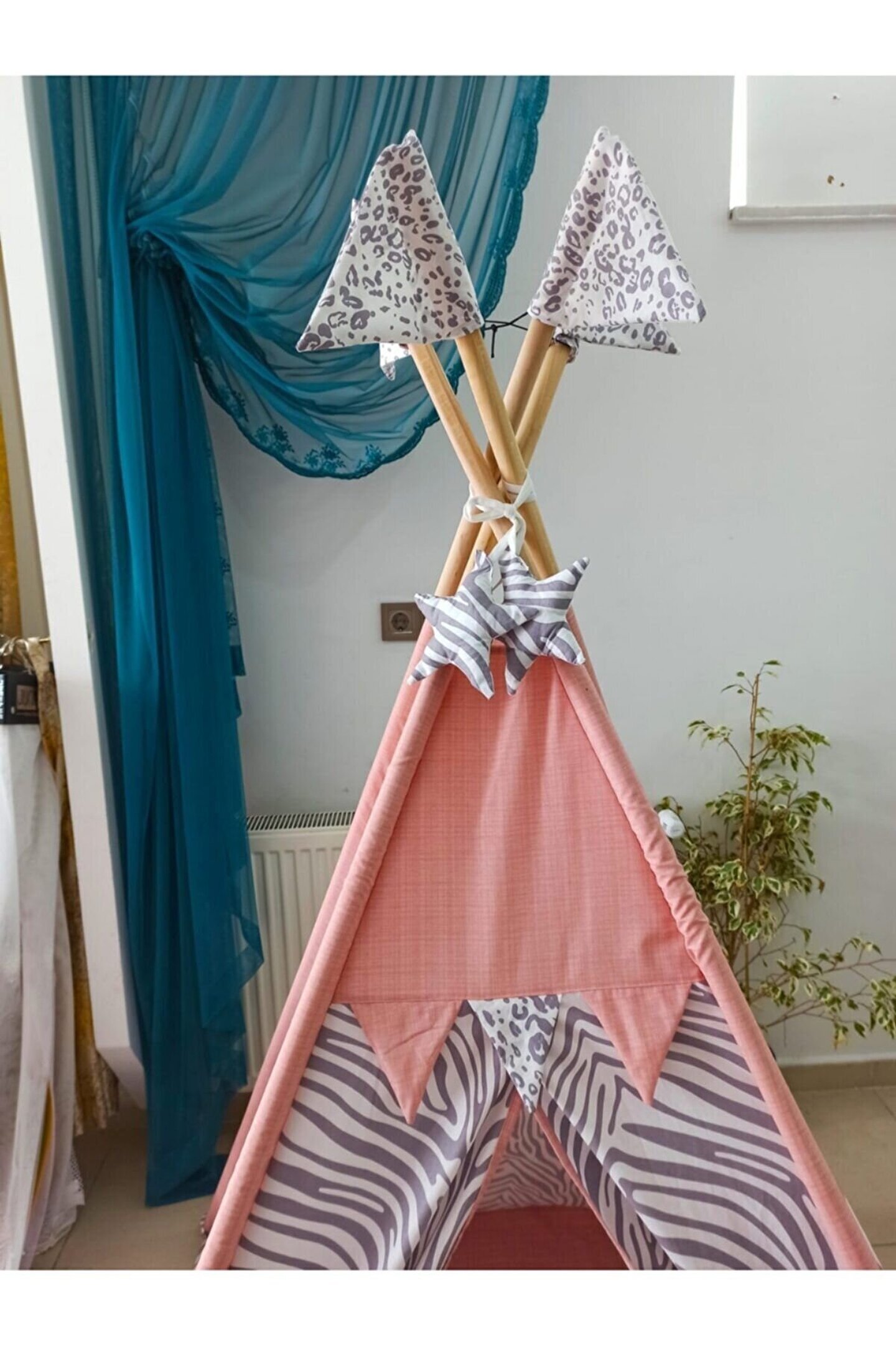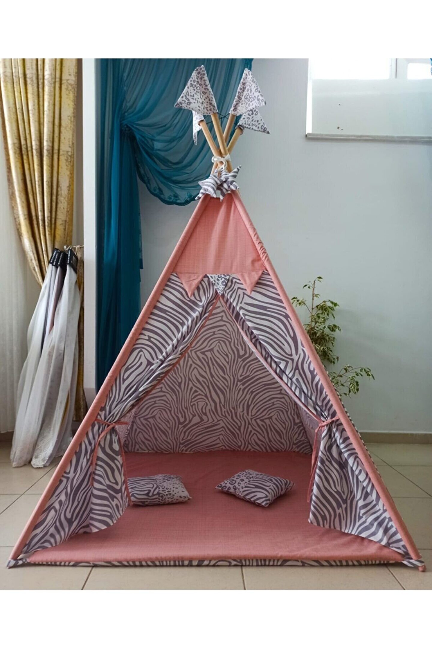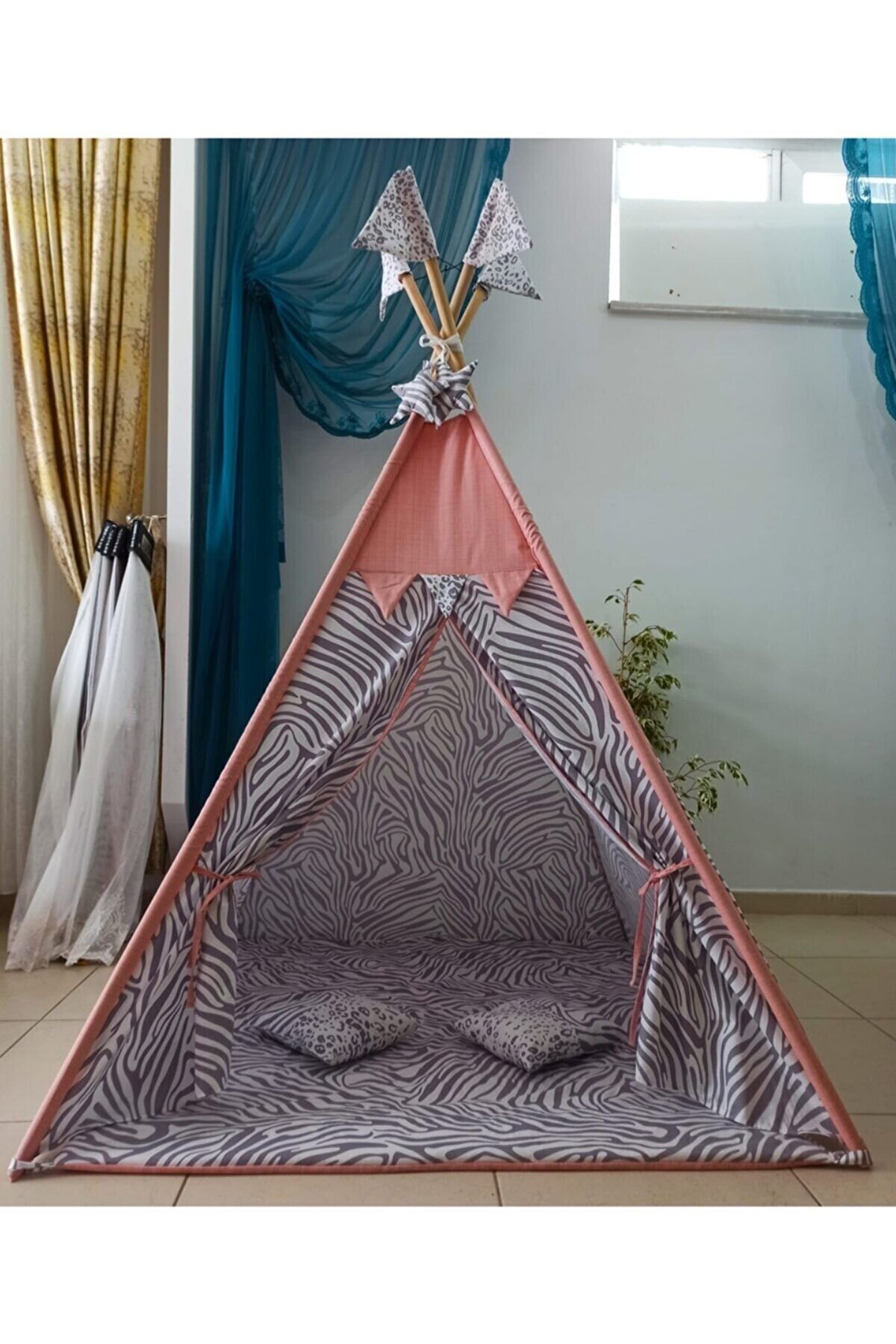 nisa baby tasarım Kızılderili Oyun Çadırı Sabitleme Aparartı Hediyelidir Pudra-gri,zabra