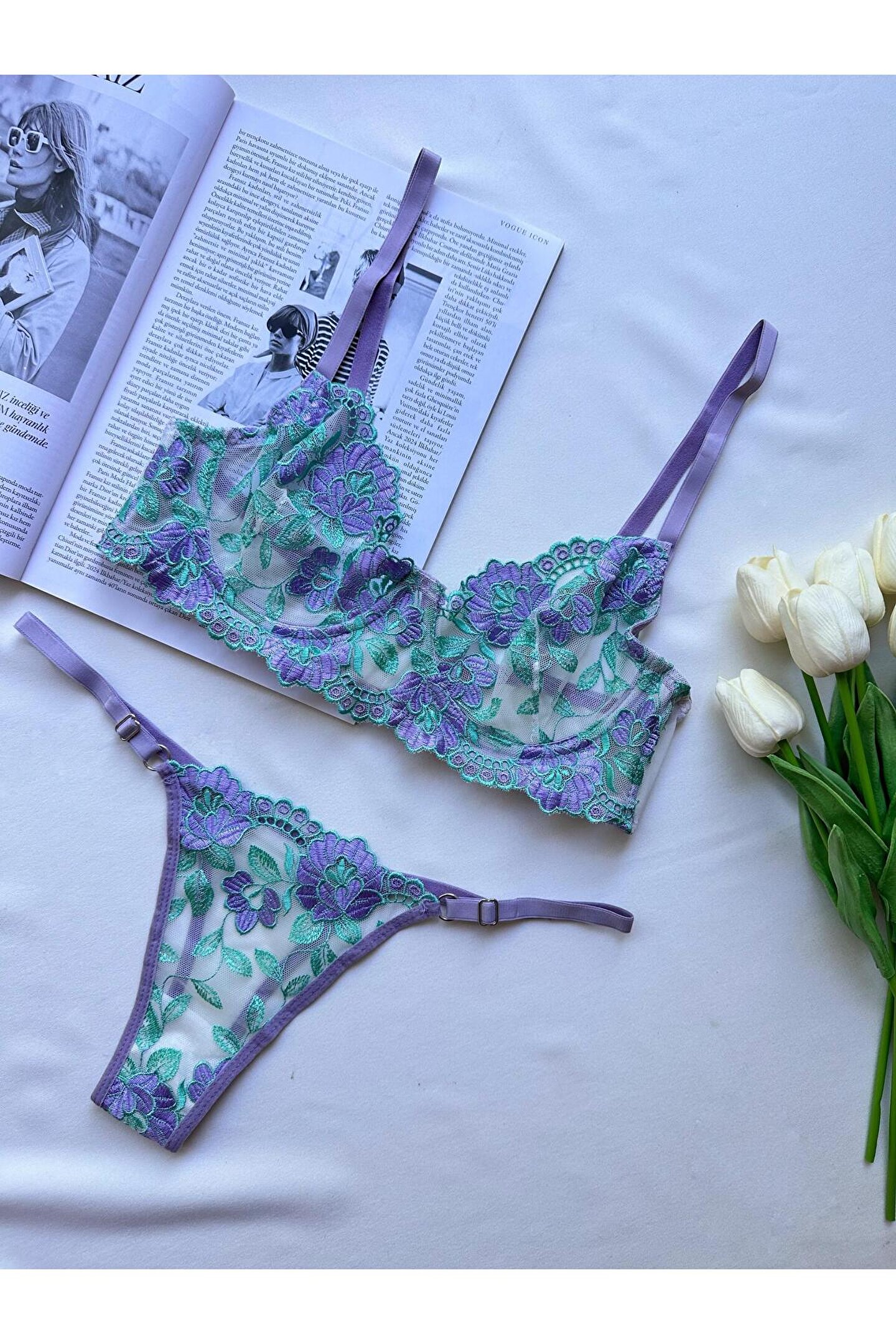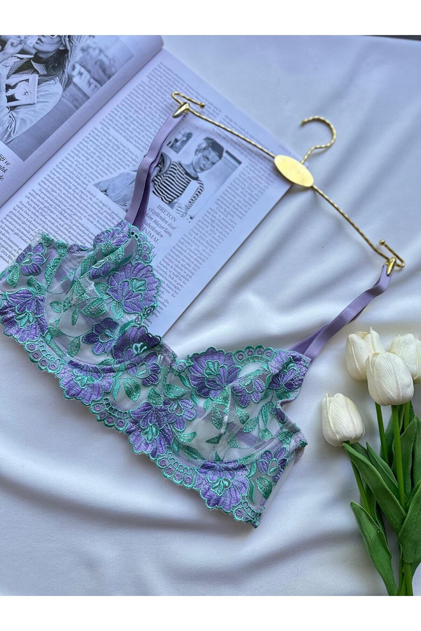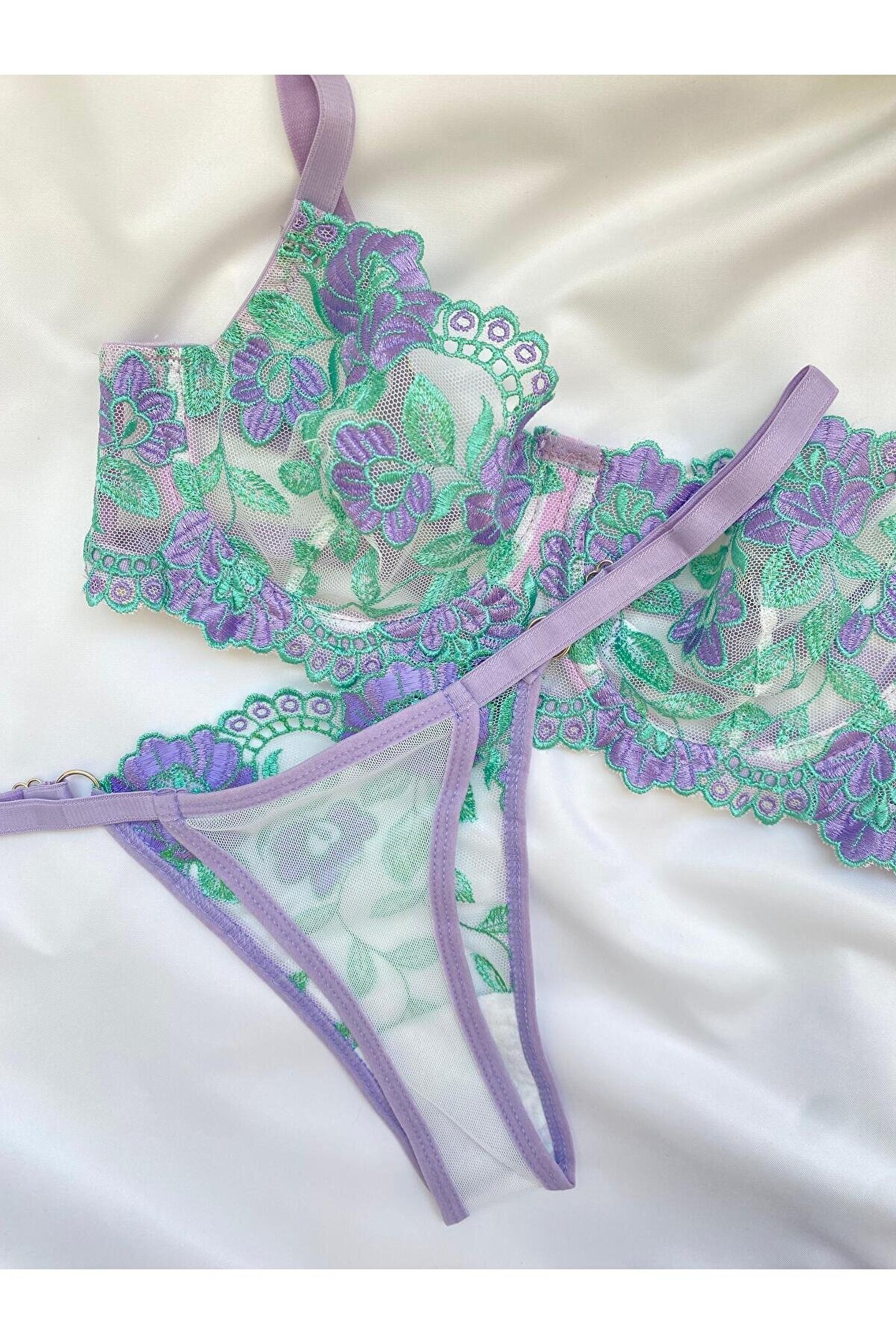 Nivolia Douce İç Çamaşırı Sütyen Takımı Lila Çiçekli Nakışlı