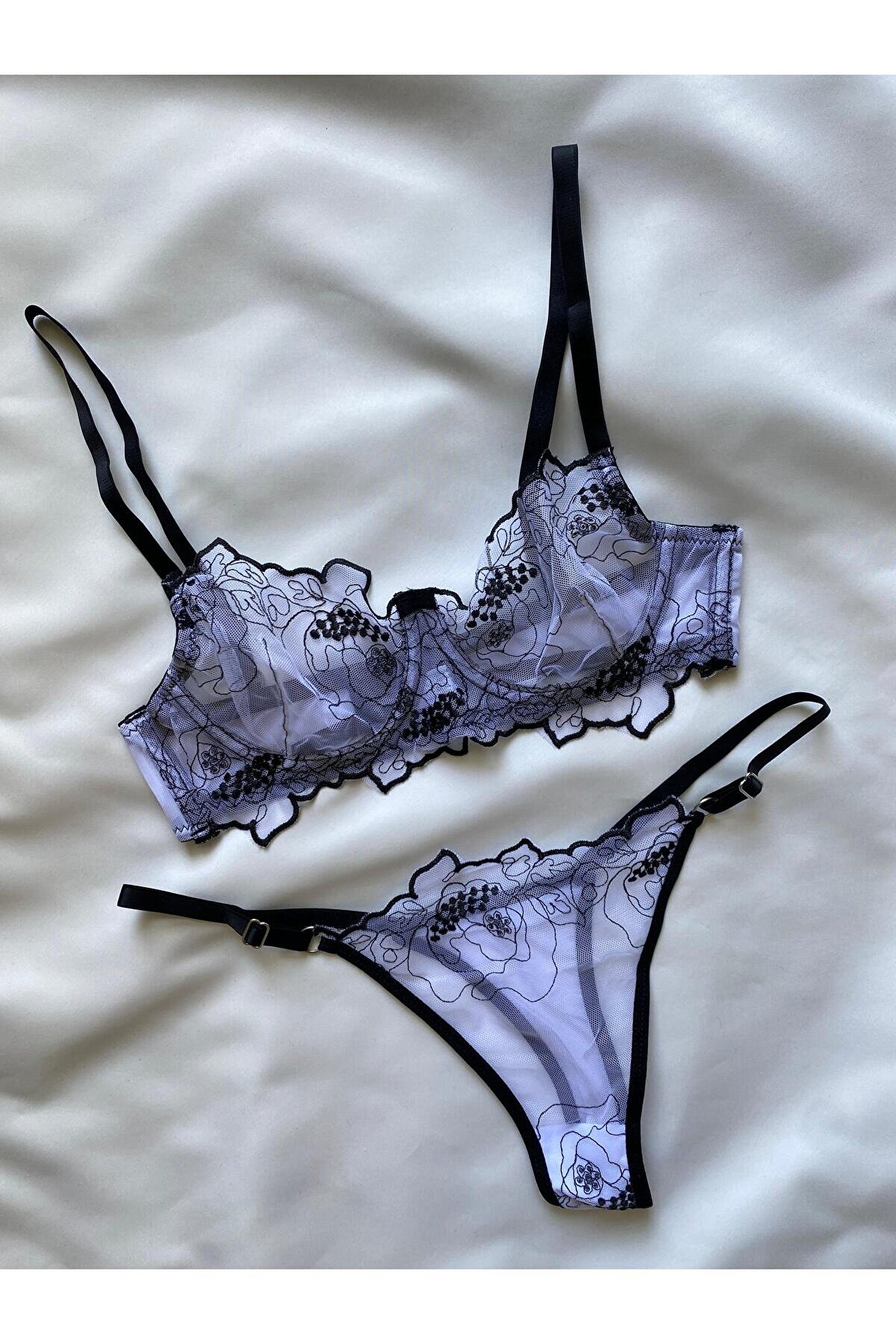 Nivolia Douce Siyah-Beyaz Brode Model Sütyen Takımı