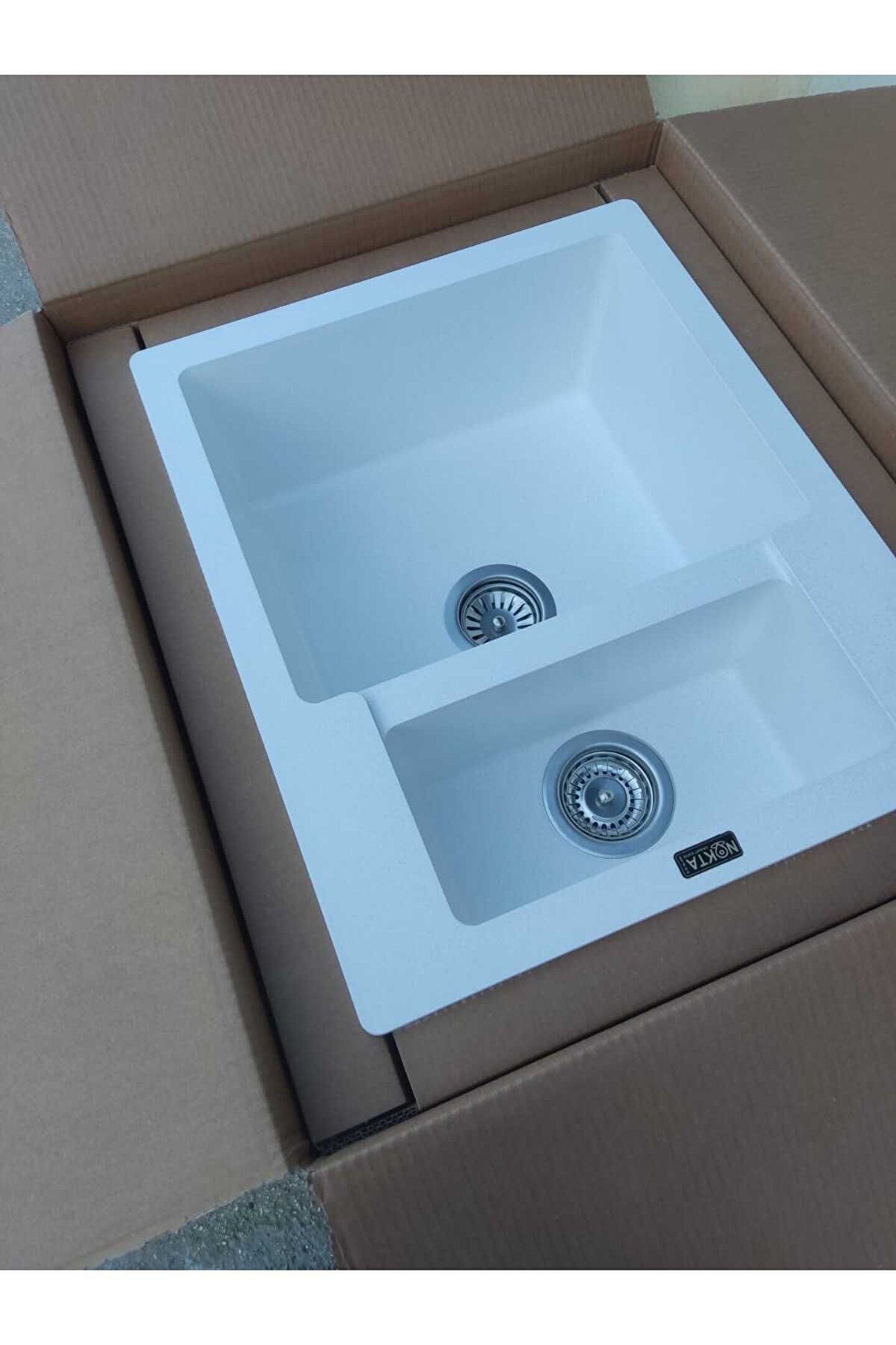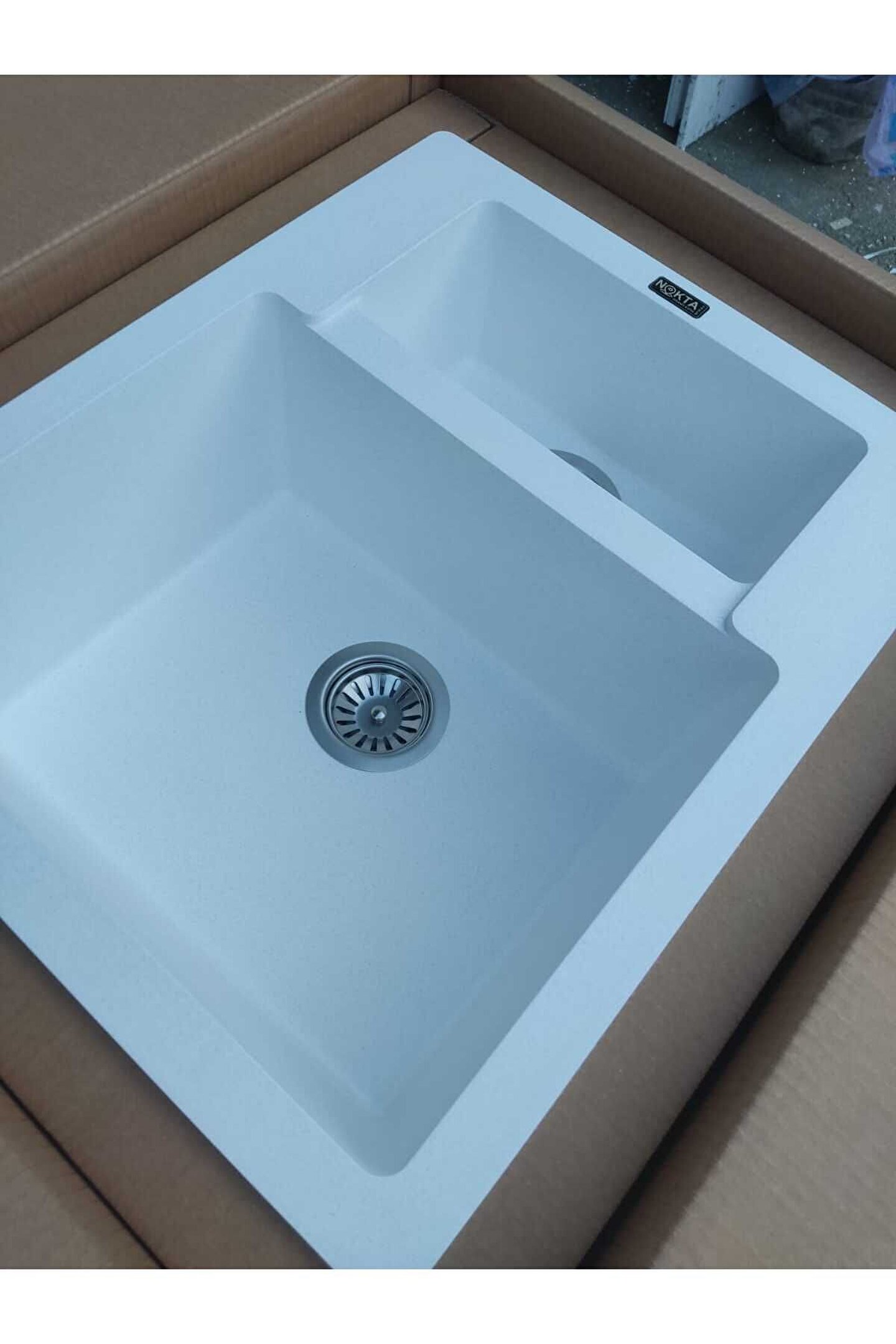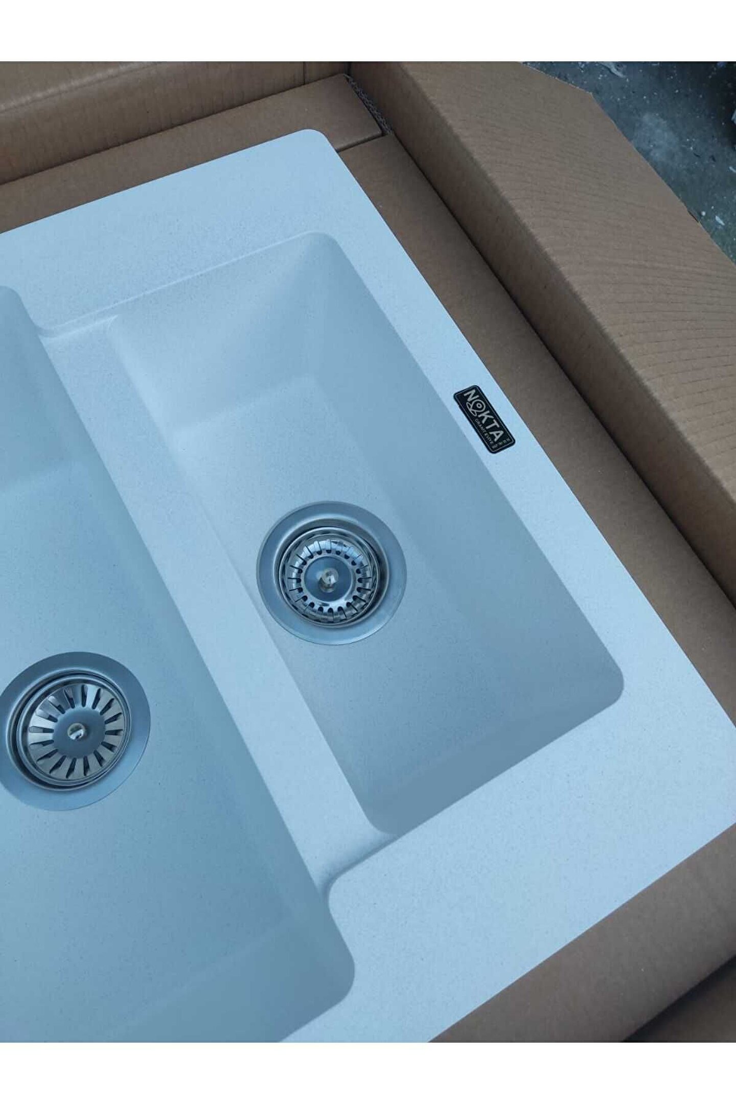 Nokta 1,5 Göz hareli Beyaz 60x50 Cm Granit Evye