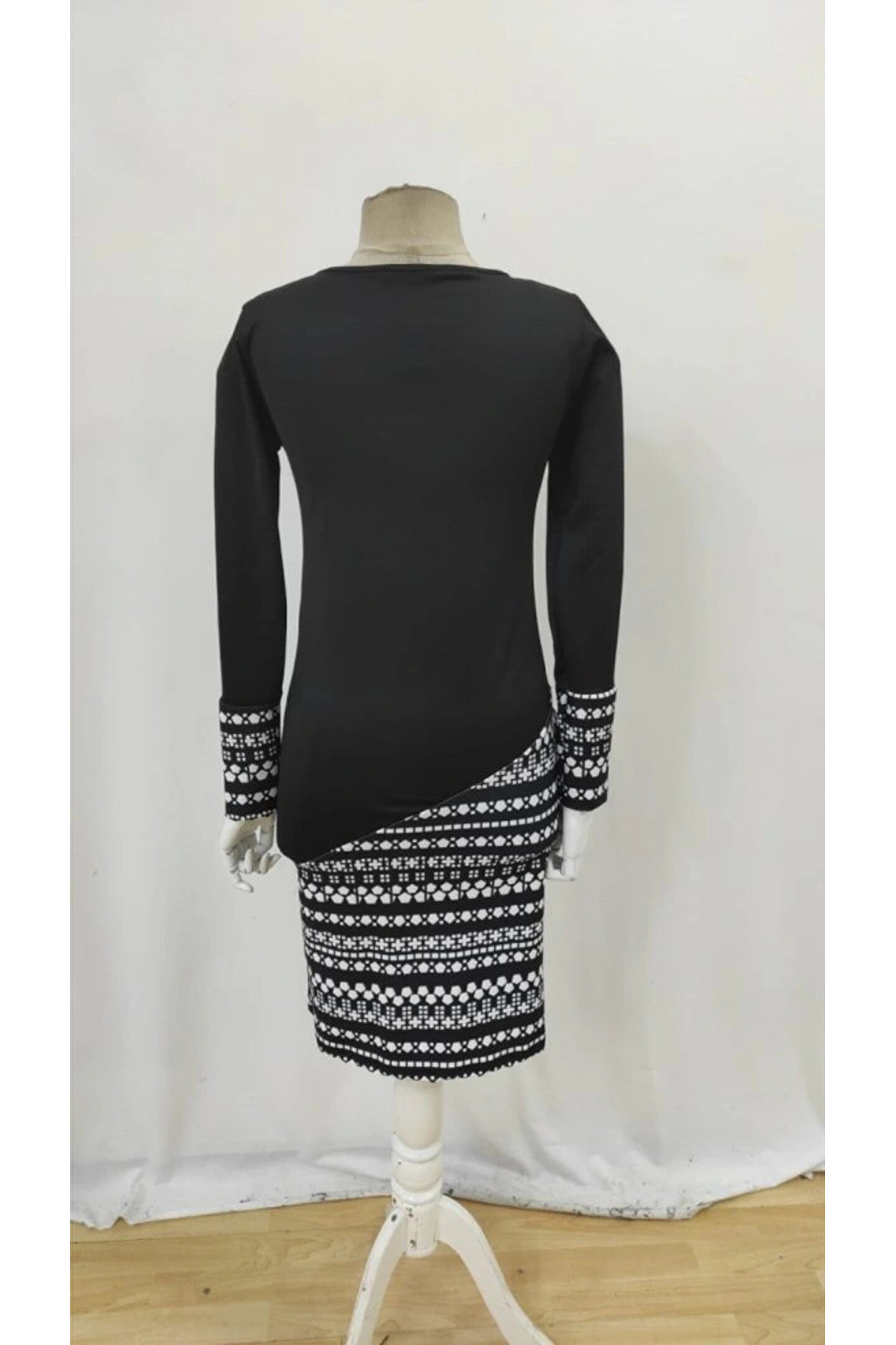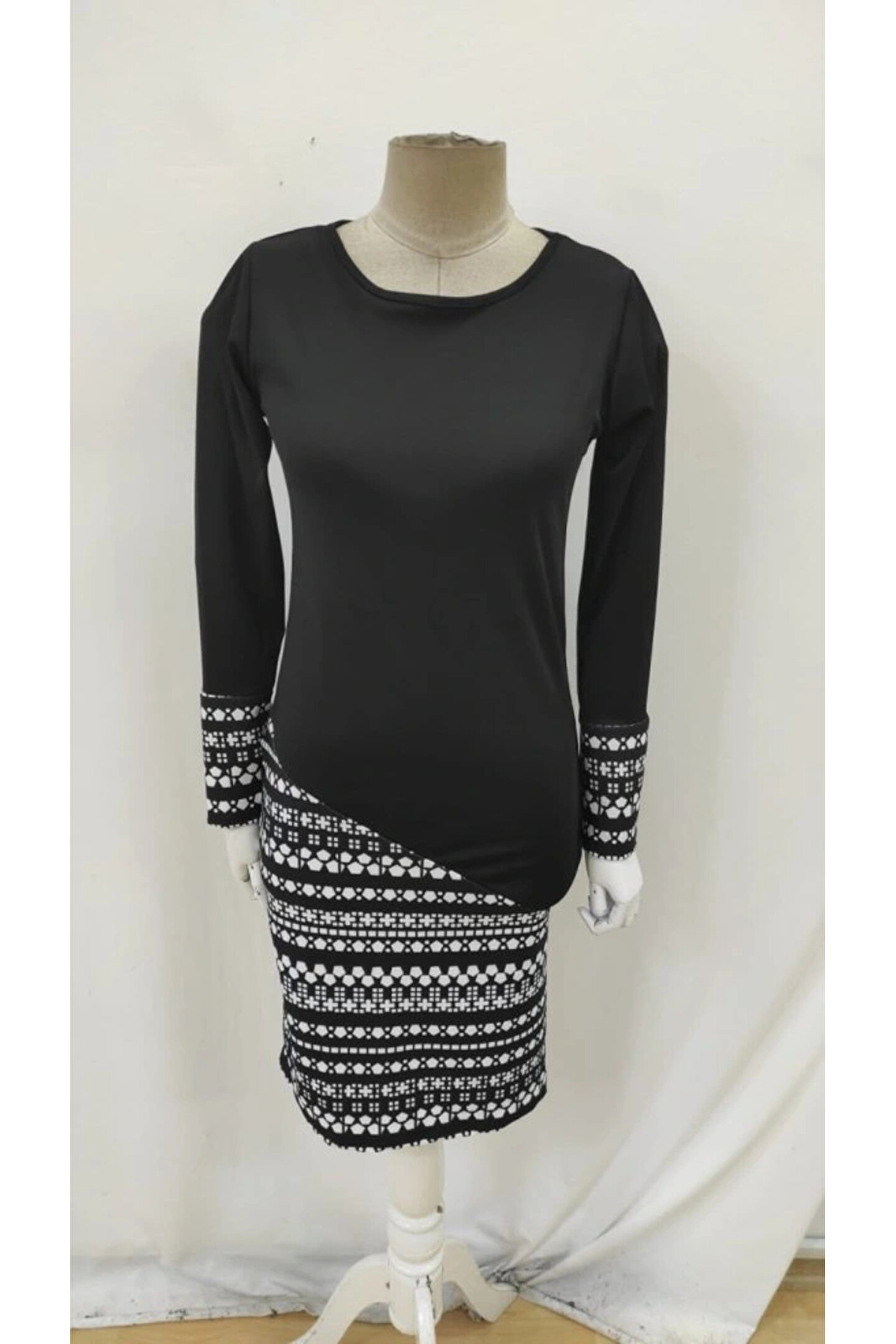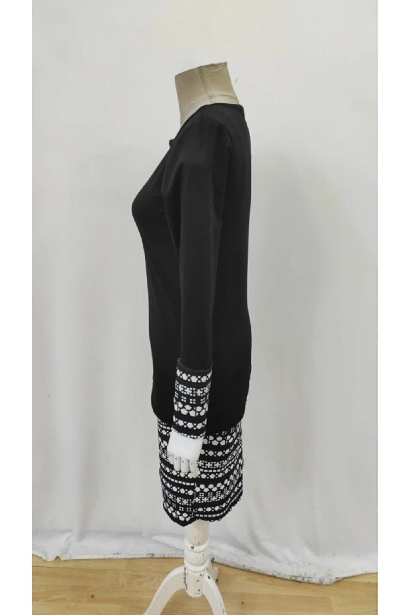 Kadın Uzun Kollu Bisiklet Yaka Desenli Dalgıç Elbise