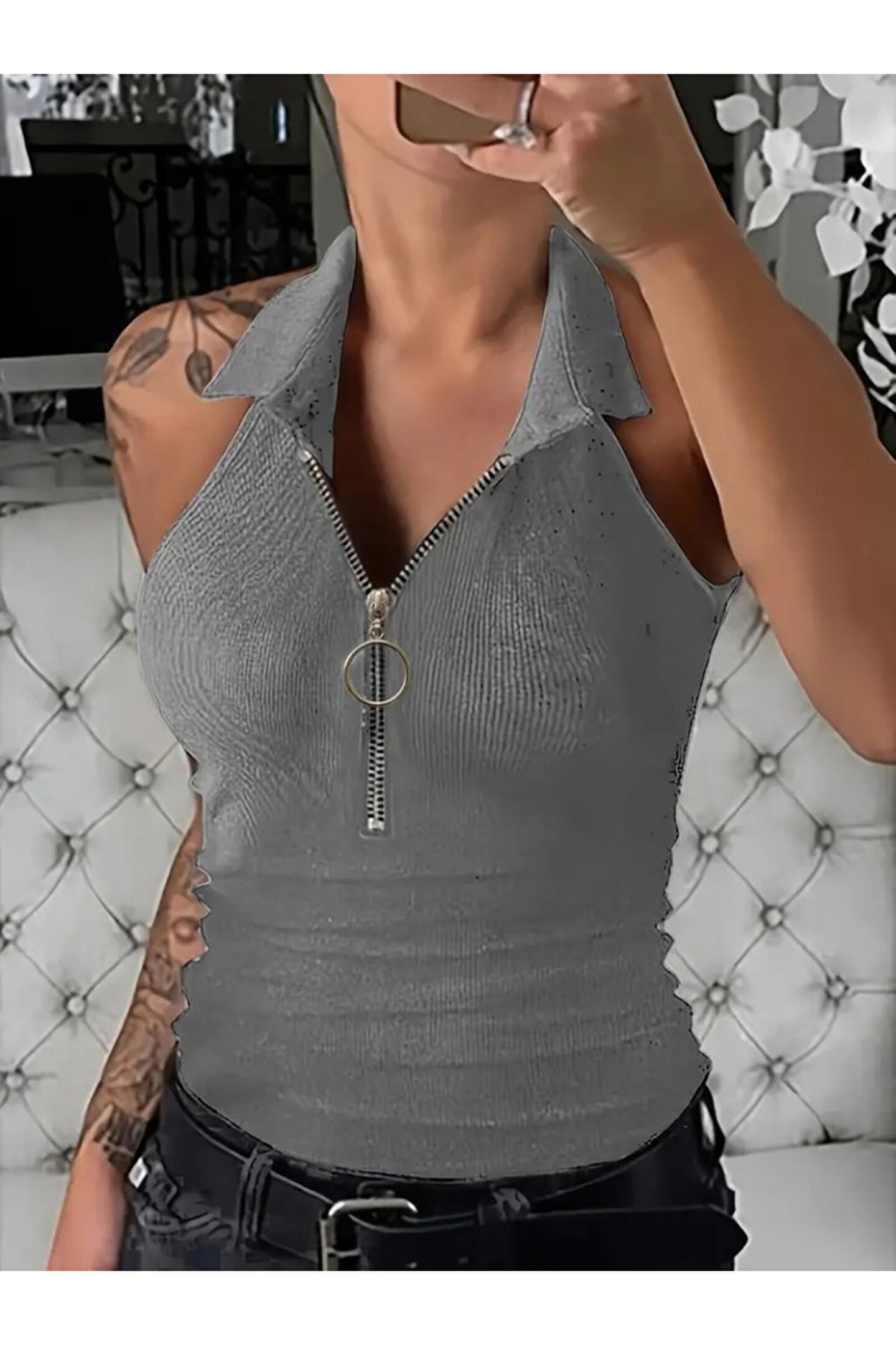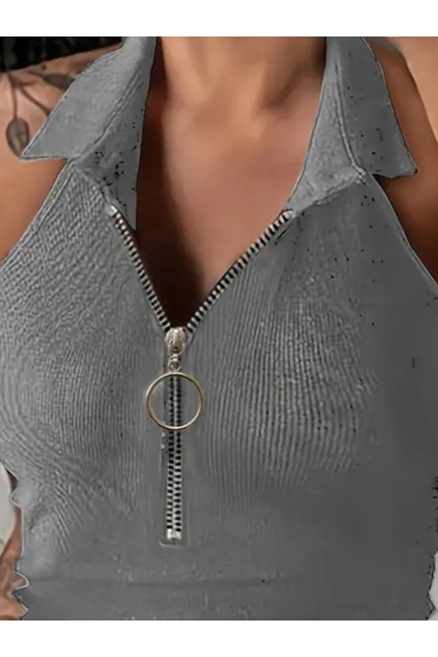 novafems Kadın Kolsuz Polo Yaka önü Fermuarlı Kaşkorse Bluz