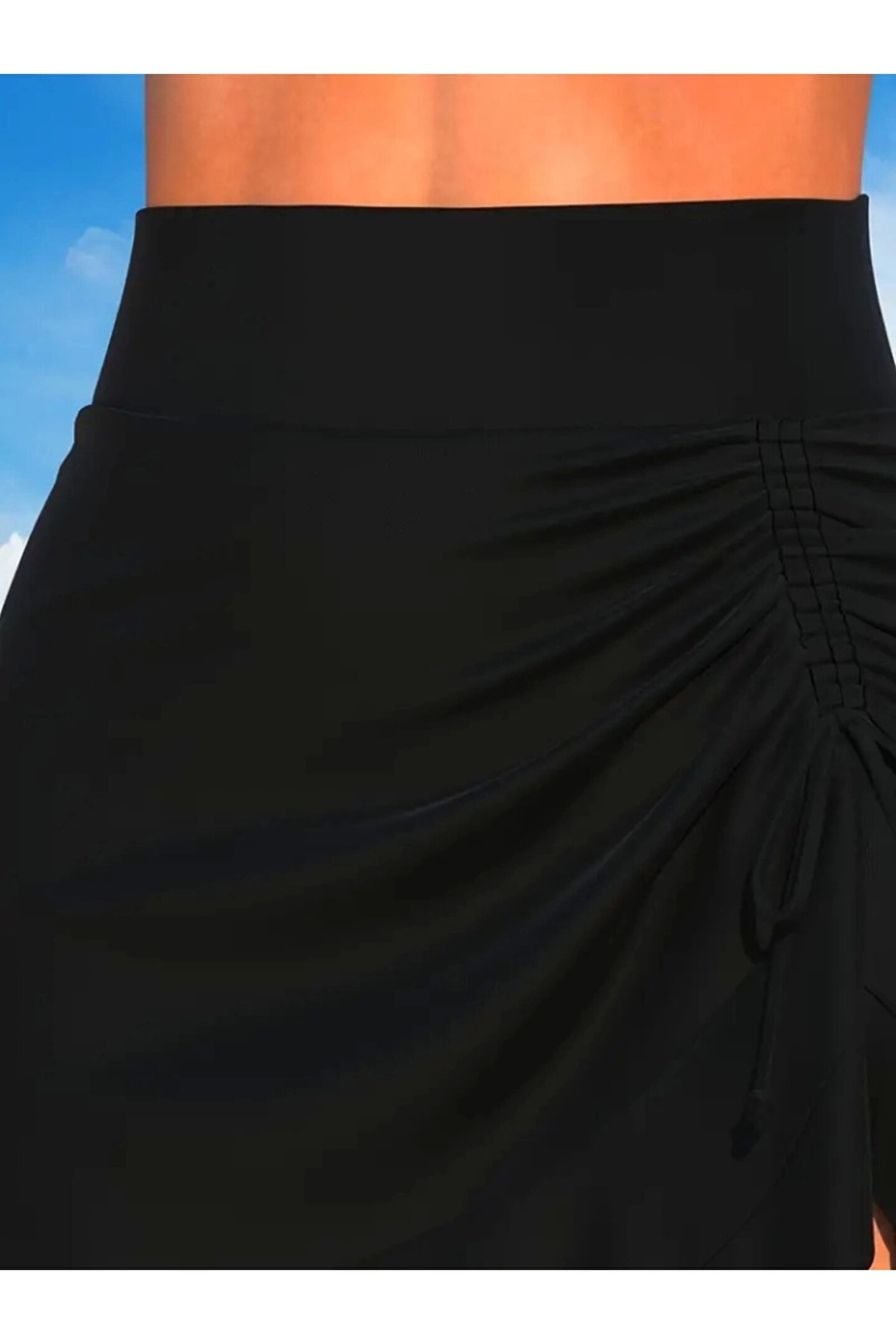 Kadın Yüksek Bel Yandan Büzgülü Fırfırlı Kısa Sandy Etek