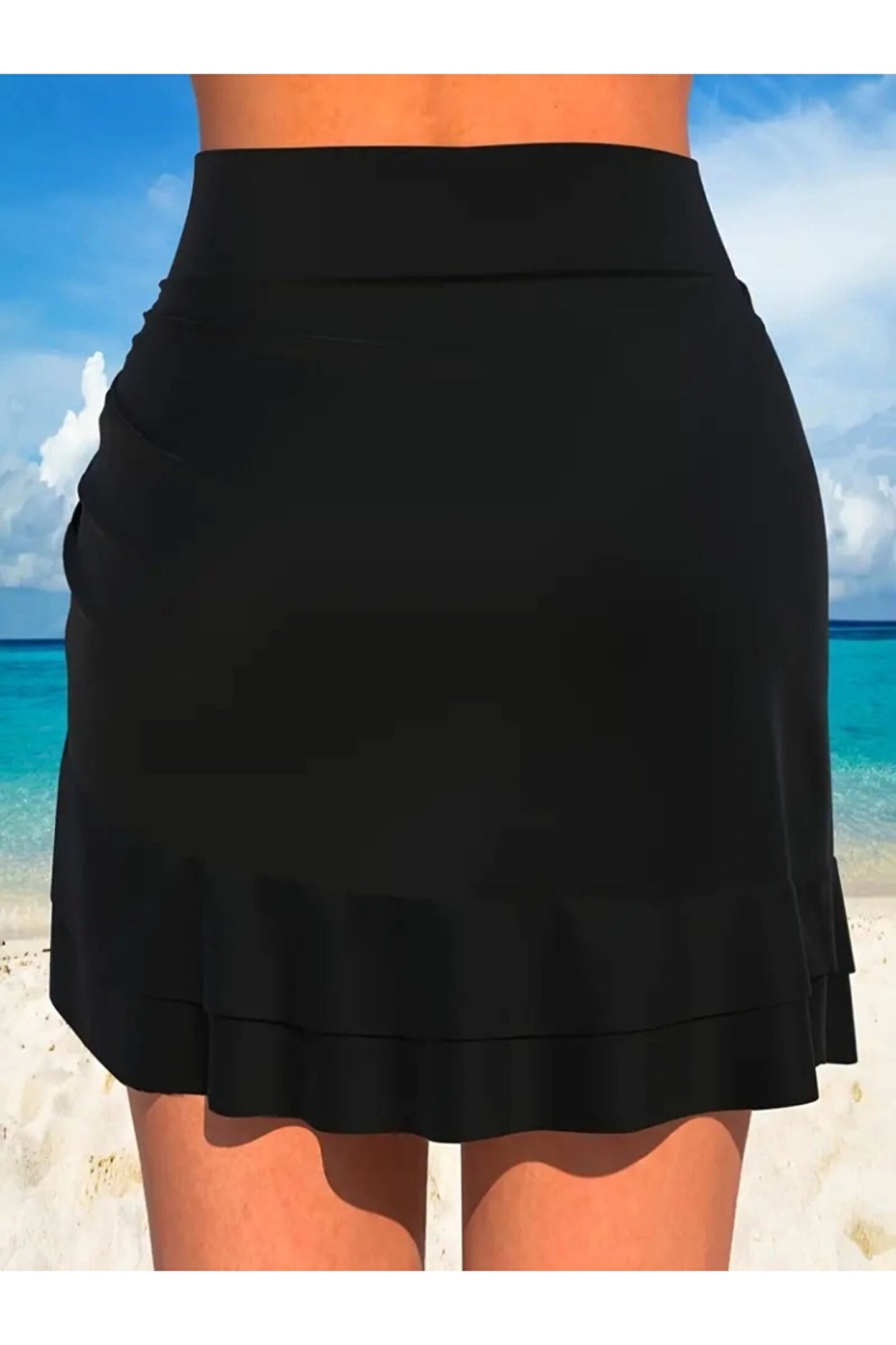 novafems Kadın Yüksek Bel Yandan Büzgülü Fırfırlı Kısa Sandy Etek