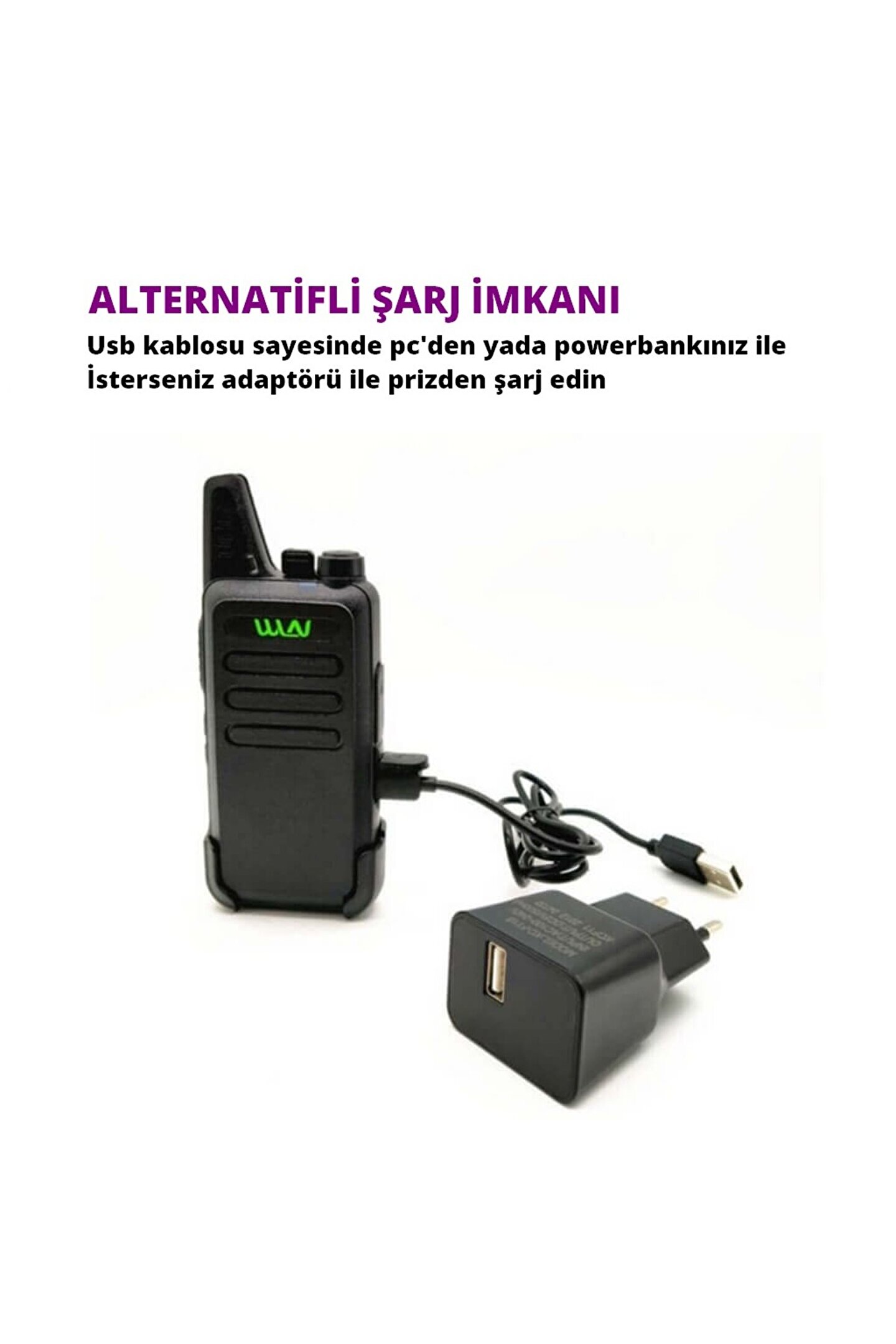 Genel Özellikler: Açık alanda 15 km'ye kadar görüşme imkanı sunan WLN el telsizi, uzun pil ömrü ile güvenlik alanlarında, arama kurtarma, fabrikalar, hava alanları, dağcılık ve arazi işlerinizde rahatlıkla kullanabilirsiniz. 10 saniyeden uzun süre sinyal veya kullanım olmazsa, pil tasarrufu devreye girer. Sinyal alındığında cihaz normal geri moduna döner ve bu sayede pil kullanımından tasarruf edilir. Hafifliği ile öne çıkan WLN el telsizi sadece 200 gr ağırlığa sahip olup yüksek ses çıkış gücü ve ergonomik boyutları sayesinde özellikle tercih edilmektedir. Teknik Özellikler: Frekans Aralığı: PMR446; Çalışma voltajı: Dc 3.7V; Kanal kapasitesi: 16; Anten: Tümleşik dahili anten; Ebatlar: 96*55*22mm; İletim: Çıkış gücü: 0.5W; Maksimum sapma: 2+5Khz; Artık Işıma: <60dB; Akım: 21000mA; Alıcı: Hassasiyet: <0.16pV(12dB SINAD); Squelch Hassasiyeti: <0.2pV; Inter Modülasyon: 50dB; Ses Gücü: 5>300mW; Akım: 2100mA; Squelch Akımı:20mA; Genel Özellikler: Pil ve Şarj Aleti Dahil; Cihazda karışmaları önlemek için QT ve DQT Ton Kod Susturma özelliği bulunmaktadır.; Emsallerine göre daha kaliteli ses çıkış modülasyon özelliğine sahiptir; Düşük basınç, yüksek sıcaklık, düşük sıcaklık gibi farklı hava koşullarında -20 ve +60 derecede çalışabilmektedir; Estetik ve ergonomik bir yapıya sahiptir.; Telsizin üzerinde 16 kanal bulunmaktadır, 16 kanal pmr kanalları yüklü olarak kullanıma hazır.; Cihaz açıldığında yada kanal değiştirildiğinde kanal numarasını sesli olarak bildirebilmektedir; Eller serbest Wox özelliği bulunmaktadır. Yazılımla opsiyonel olarak ayarlanabilir.; Telsizin bel klipsi istenildiğinde el ile rahatça çıkartılıp takılabilecek şekilde tasarlanmıştır; Bataryası li-ion batarya ve 1000mAh kapasiteli etiket üstünde belirtilen değer batarya içindeki pillerin değeri ile aynıdır; Wln el telsizi PMR-446 Mhz lisans gerekmeden kullanılabilen modeldir.; Pil tasarruf özelliği bulunmaktadır.; USB kablosu ile bilgisayardan da şarj edilebilmektedir; Telsiz üzerindeki LED ışık ile alma, gönderme bilgileri takip edilebilir.; Paket İçeriği: 2 Adet WLN KDC-1 El Telsizi; 2 Adet Batarya; 2 Adet Bel Klips; 2 Adet Usb Şarj Kablosu; 2 Adet Usb Şarj Aleti;