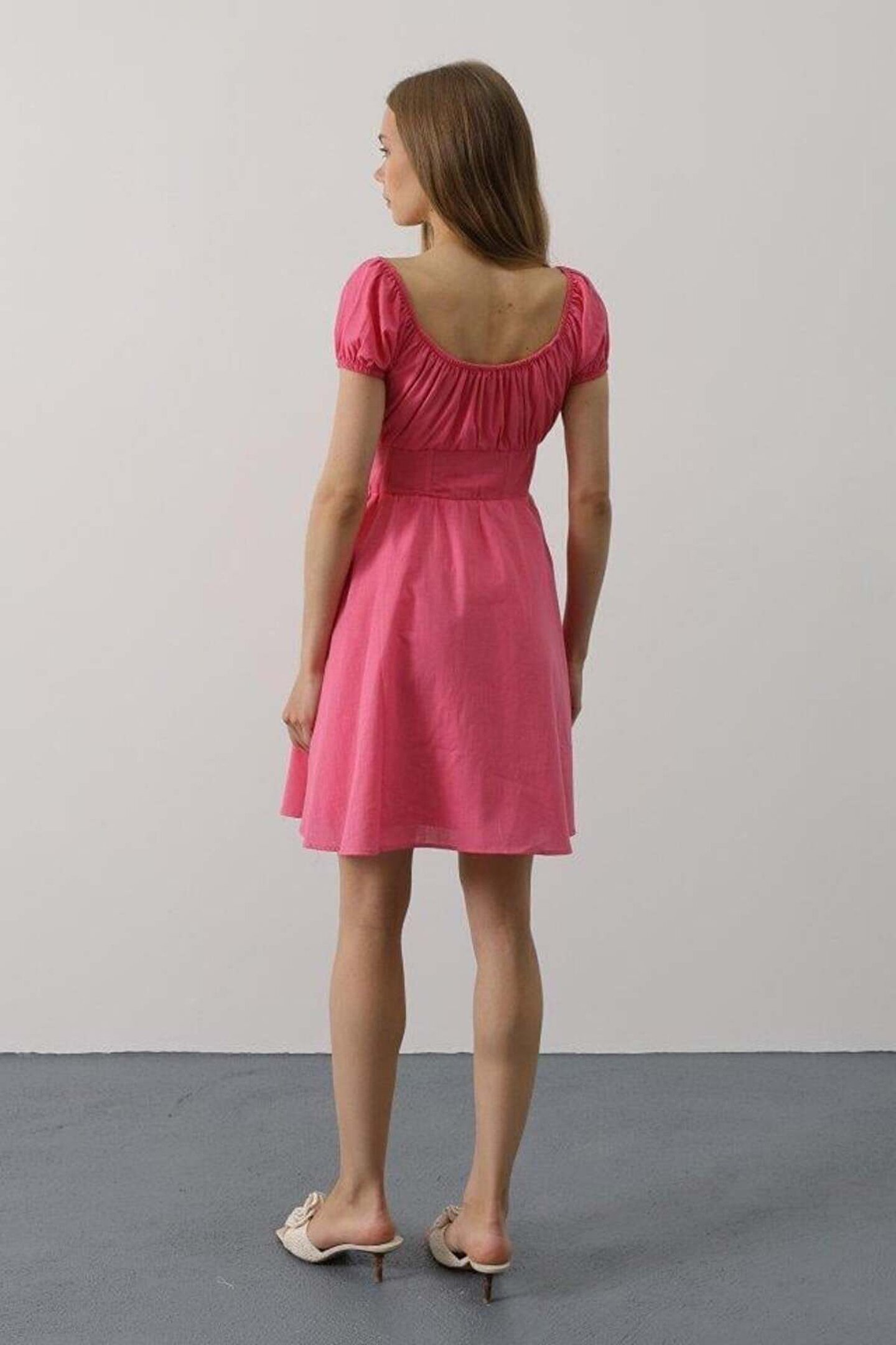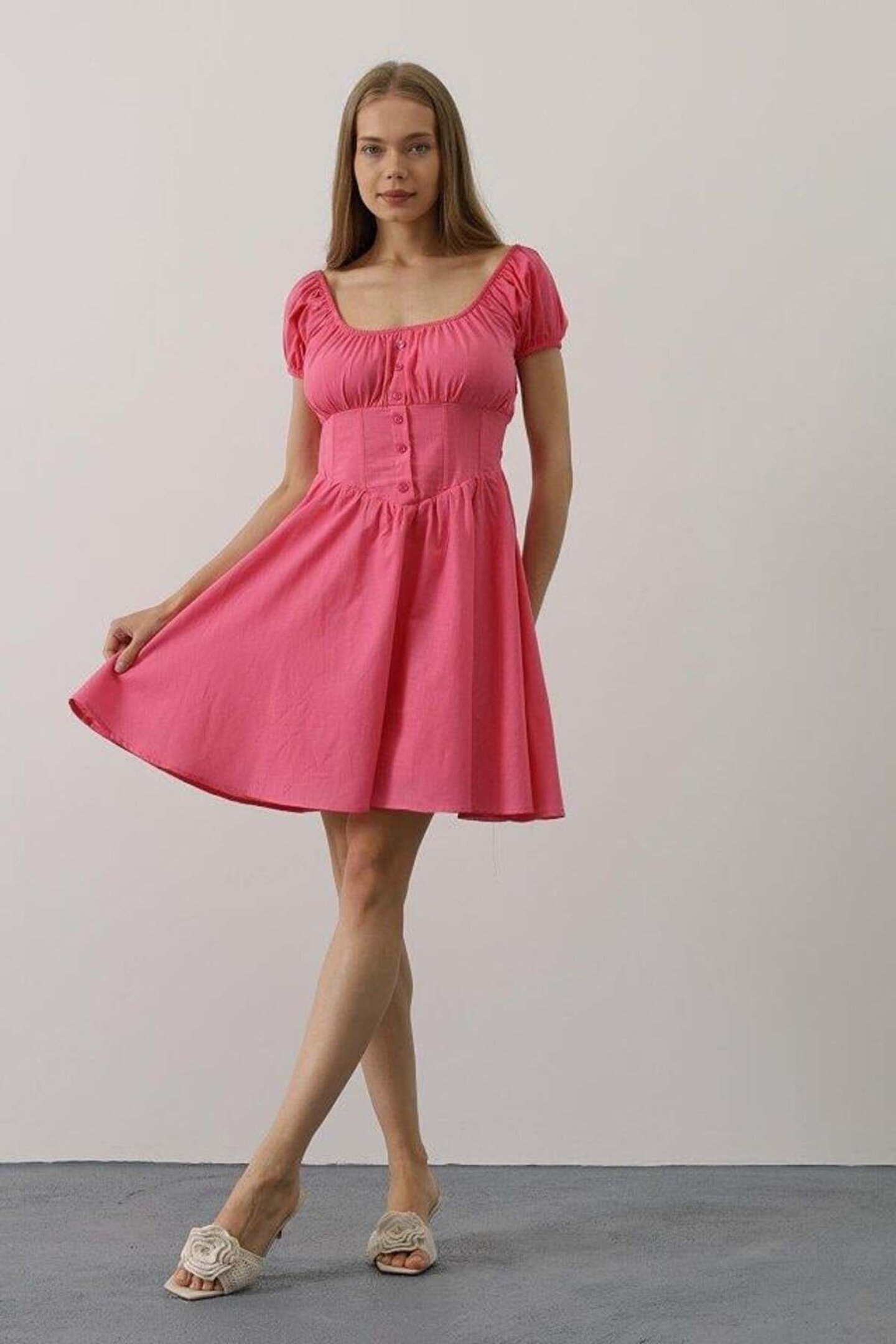 Beli Korseli Mini Elbise - Fuşya