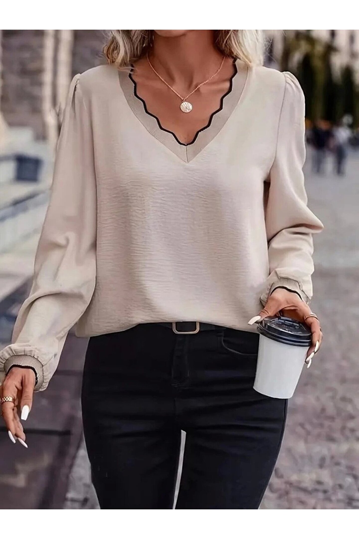 Kadın Uzun Kollu V Yakalı Aerobin Bluz
