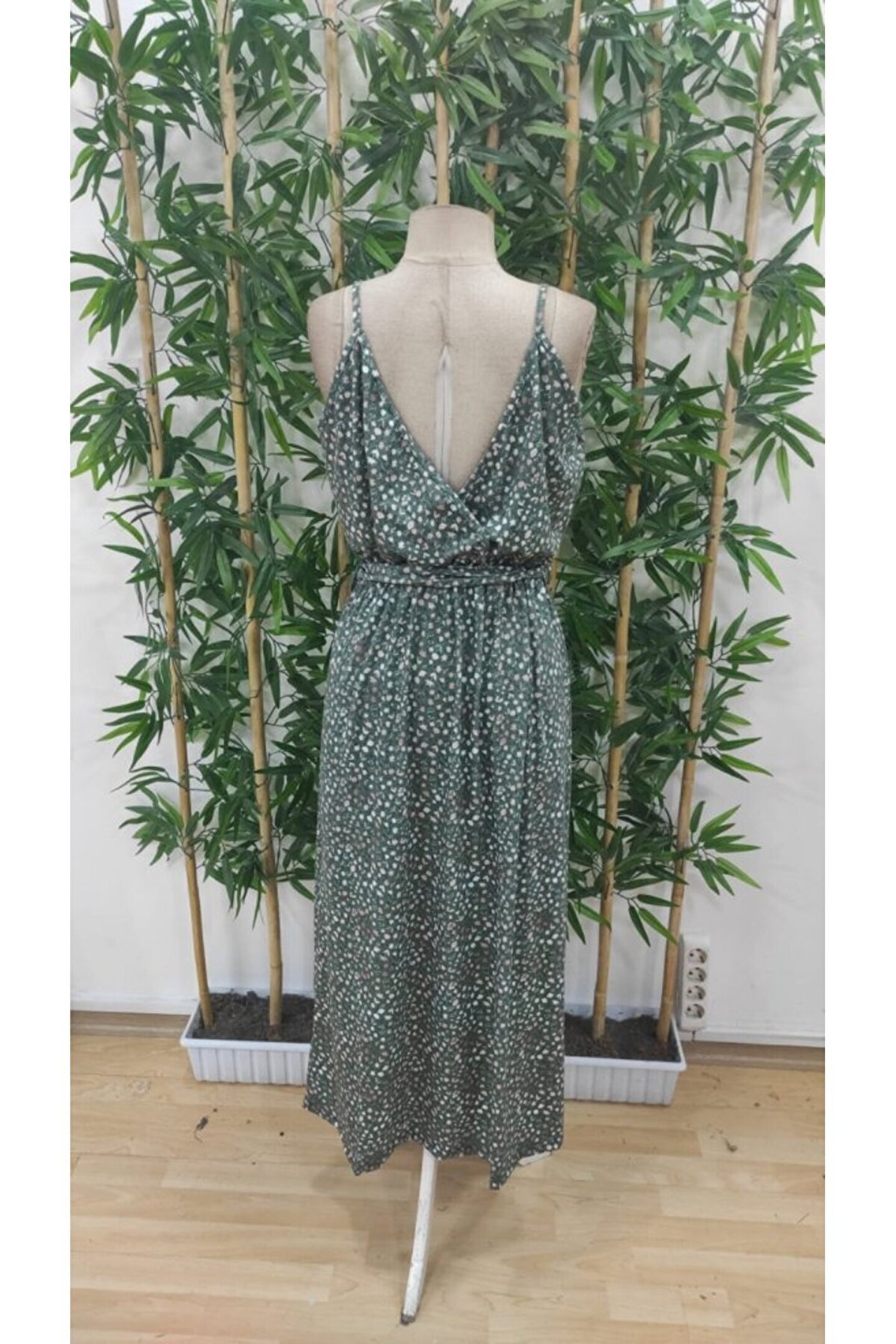 Omarı MODAVERA Kadın Ip Askılı Kruvaze Yakalı Yırtmaçlı Uzun Desenli Kuşaklı Süprem Elbise