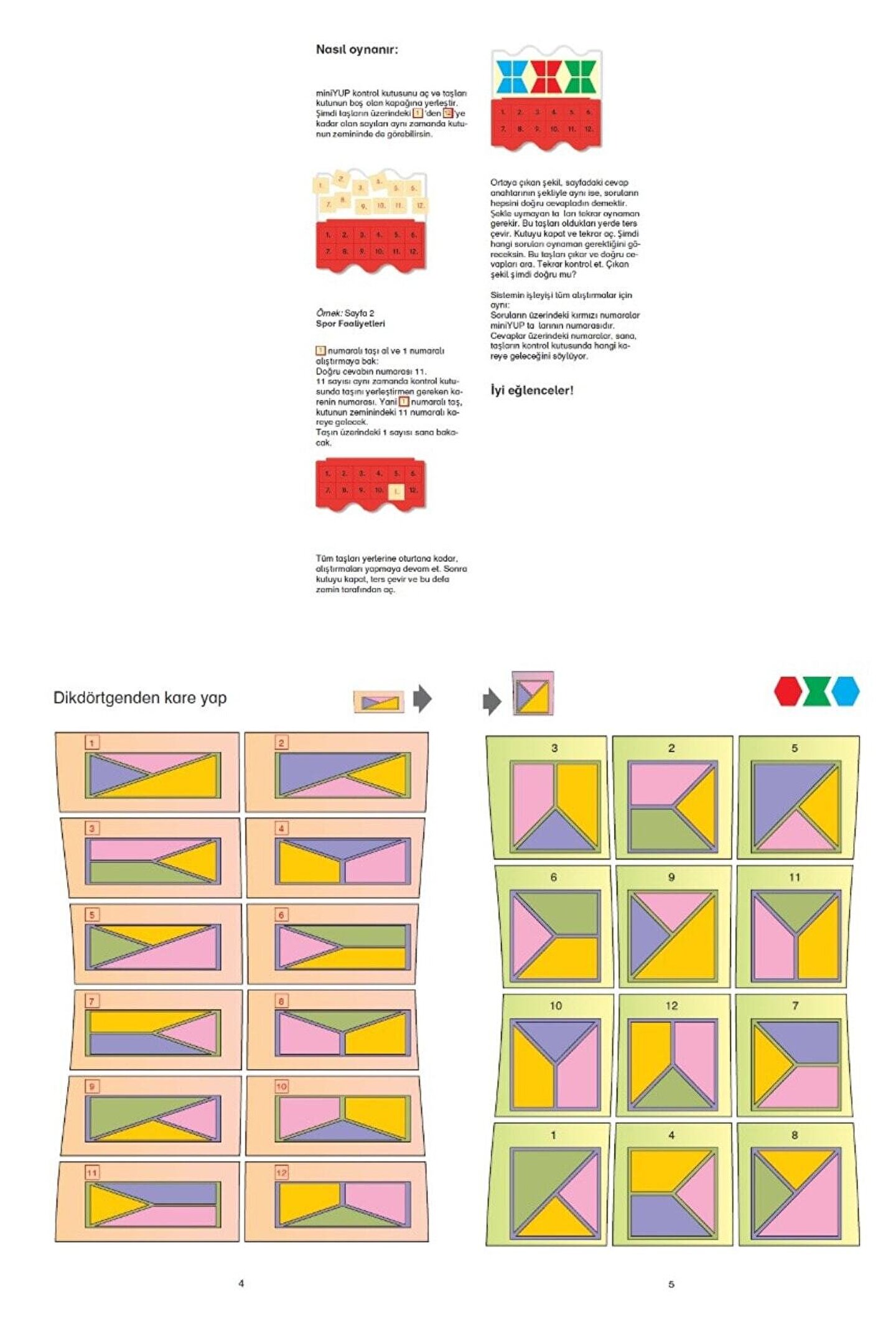 miniYUP 5-7 Yaş Avantajlı Paket (30 kitap + 1 miniYUP Kontrol Kutusu) Ambalaj Ebat: 16,5 x 38,5 x 7,5cm Kitapçık Sayısı: 30 adet Kitapçık Ebat: 14 ?x 26 cm Toplam Alıştırma Sayısı: 399 adet Baskı: Renkli / Siyah-Beyaz Çocuklarımızın gelişim dönemlerindeki ilk yıllar, gelişimin en hızlı olduğu ve çevrenin etkisine en açık olan dönem olduğundan yola çıkarak, çocuklarımızın çok yönlü gelişimine sosyal, zihinsel, duygusal, dilsel ve fiziksel destek verecek uyarıcıların onlara sunulması gerekmektedir.; Başta Avrupa olmak üzere dünya çapında 35 ülke ve 20 farklı dilde çocuklara hem oyun keyfini, hem de öğrenme başarısını bir arada yaşatan YUP (Yap-Uygula-Pekiştir) Eğitim Materyali, bazı kurumlar tarafından IQ testi, bazı okullarca da ders materyali olarak kullanılmaktadır.; Konsantrasyon, zeka geliştirme, beyin jimnastiği, matematik ve yabancı dil gibi temel hedef kazanımları, bireysel farklılıkları göz ardı etmeksizin ihtiyaçlar doğrultusunda, Howard Gardner’in “Çoklu Zeka Kuramı” ve Benjamin Bloom’un “Eğitim Amaçları Taksonomisi” gibi bilimsel altyapı ile birleştiren YUP (Yap-Uygula-Pekiştir) Eğitim Materyali, 2 ile 14 yaş aralığındaki çocuklarımız için ideal olup, özellikleri ve kazanımları şu şekildedir: YUP SİSTEMİNİN ÖZELLİKLERİ Bilgilerin çocuğa kodlanarak değil, oyunla verilmesi; Öğrenmenin sıkıcı bir görevden, neşeli bir oyuna dönüşmesi; Oyunu ve öğrenmeyi mantıklı bir şekilde birleştirme; Kolay anlaşılır olma; Sistemli çalışmayı öğretme ; Sürprizlere açık olmayı öğretme ve serüven duygusu verme; Yaratıcılığı destekleme ve yaratıcılığa teşvik etme; Öğrenmeye hazır olma istekliliği yaratma; Rekabet baskısını ortadan kaldırıp kendi kendine yarışma yaratma; Kolaydan zora ve basitten karmaşığa öğrenmeyi kolaylaştırma; Bilimsel kurallara dayalı sistematik öğrenme; Kendi kendini sınama ve deneme; YUP SİSTEMİNİN KAZANIMLARI El, göz ve beyin koordinasyonu sağlama; Kavrama, algılama ve gözleme yeteneklerini geliştirme; Hassas hareket yeteneğinin güçlendirilmesi; Yaratıcılığa destek ve teşvik; Konsantrasyonun geliştirilmesi; Korku ve yarışmayı duygusunu yenme; Görsel algılamanın iyileştirilmesi; Özgüven ve sorumluluk duygusunu güçlendirme; Otokontrol sistemiyle kendi başarısını ölçebilme; Kendi aklını kullanarak doğru ile yanlışı ayırabilme ve sabırlı olabilme; Bireysel çalışmayı teşvik etme; Düşündürerek öğretme ve düşünerek öğrenme; 30 adet olan kitapçıkların sıralaması ise şu şekildedir: Okul Öncesi Beyin Jimnastiği 1; Okul Öncesi Beyin Jimnastiği 2; Konsantrasyon Oyunları 1; Konsantrasyon Oyunları 2; Futbol - Mantıksal Düşünme; 6'ya Kadar Hesap Yapmayı Öğreniyorum; 10'a Kadar Hesap Yapmayı Öğreniyorum; 10 Sayısına Kadar Hesap Yapalım!; Görme ve Düşünme Okulu 1; Görme ve Düşünme Okulu 2; Yaşasın! Okula Başlıyorum!; Kahvaltı Keyfiyle Hesap Yapalım!; Tanıma ve Sayma; Şekil ve Konum; Toplama ve Birleştirme; Şekil ve Yer; Toplama ve Çıkarma; Tamamlama ve Yerine Yerleştirme; Renkler ve Şekillerle Bilmeceler 1; Renkler ve Şekillerle Bilmeceler 2; Düşünme Olimpiyatları 1; Düşünme Olimpiyatları 2; Görsel Algılama Alıştırmaları 1; Görsel Algılama Alıştırmaları 2; Gör ve Kavra 1; Gör ve Kavra 2; Düşünme Oyunları 1; Düşünme Oyunları 2; Zeka Geliştirme Oyunları 1; Zeka Geliştirme Oyunları 2; *Kitapçıkların hepsi miniYUP Kontrol Kutusu ile uygulanmaktadır.;