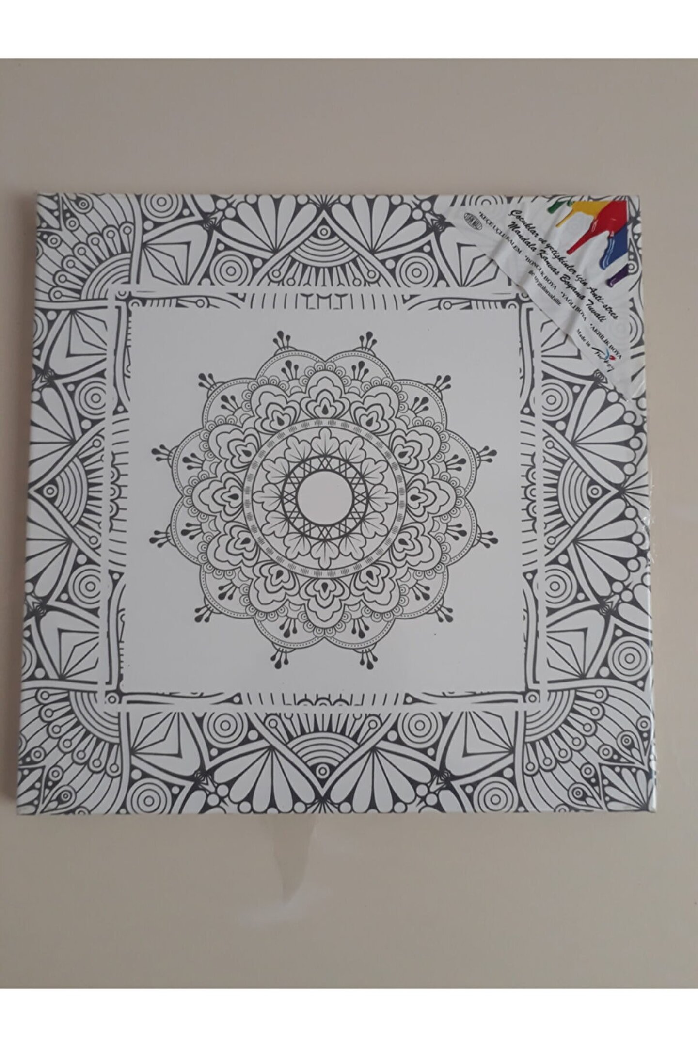 Mandala tuval boyama setimizde 1 adet 35x35cm kanvas tuval 5 adet akrilik boya tüpü ve1 adet boyama fırçası bulunmaktadır. ; Setimiz sağlığa zararlı hiçbir madde içermemektedir. ; Evde ve okulda etkinlik için uygundur. ; Setimizden alan müşterilerimize isimli kaligrafi karton fon hediye edilmecektir. ;