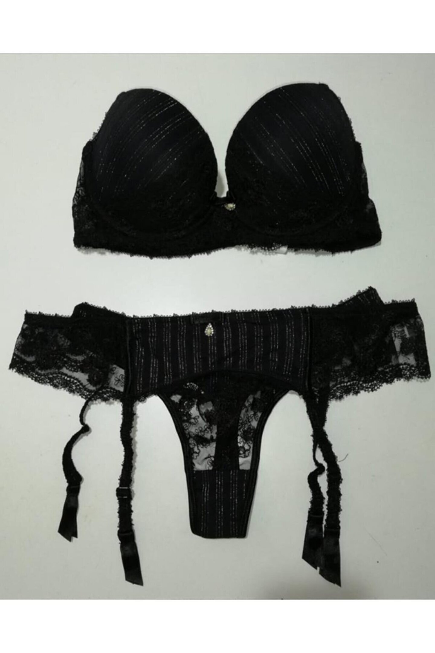 - %80 poliamid ve %20 elastan karışımı ile üretilen bu jartiyer takımı, esnek yapısıyla vücut hatlarınıza mükemmel uyum sağlar ve konforlu bir kullanım sunar; - Siyah renk seçeneğiyle klasik ve zamansız bir görünüm elde edersiniz; her tür kıyafetle kolayca kombinleyebilirsiniz; - Yüksek kaliteli malzemeler sayesinde uzun süreli kullanım için idealdir; dayanıklılığı ve formunu korur; - Esnek yapısı ile hareket özgürlüğünüzü kısıtlamaz, rahatça dans edebilir veya egzersiz yapabilirsiniz; - Özel günlerinizde veya günlük kullanımınızda şıklığınızı tamamlayacak zarif bir aksesuar olarak tercih edebilirsiniz;