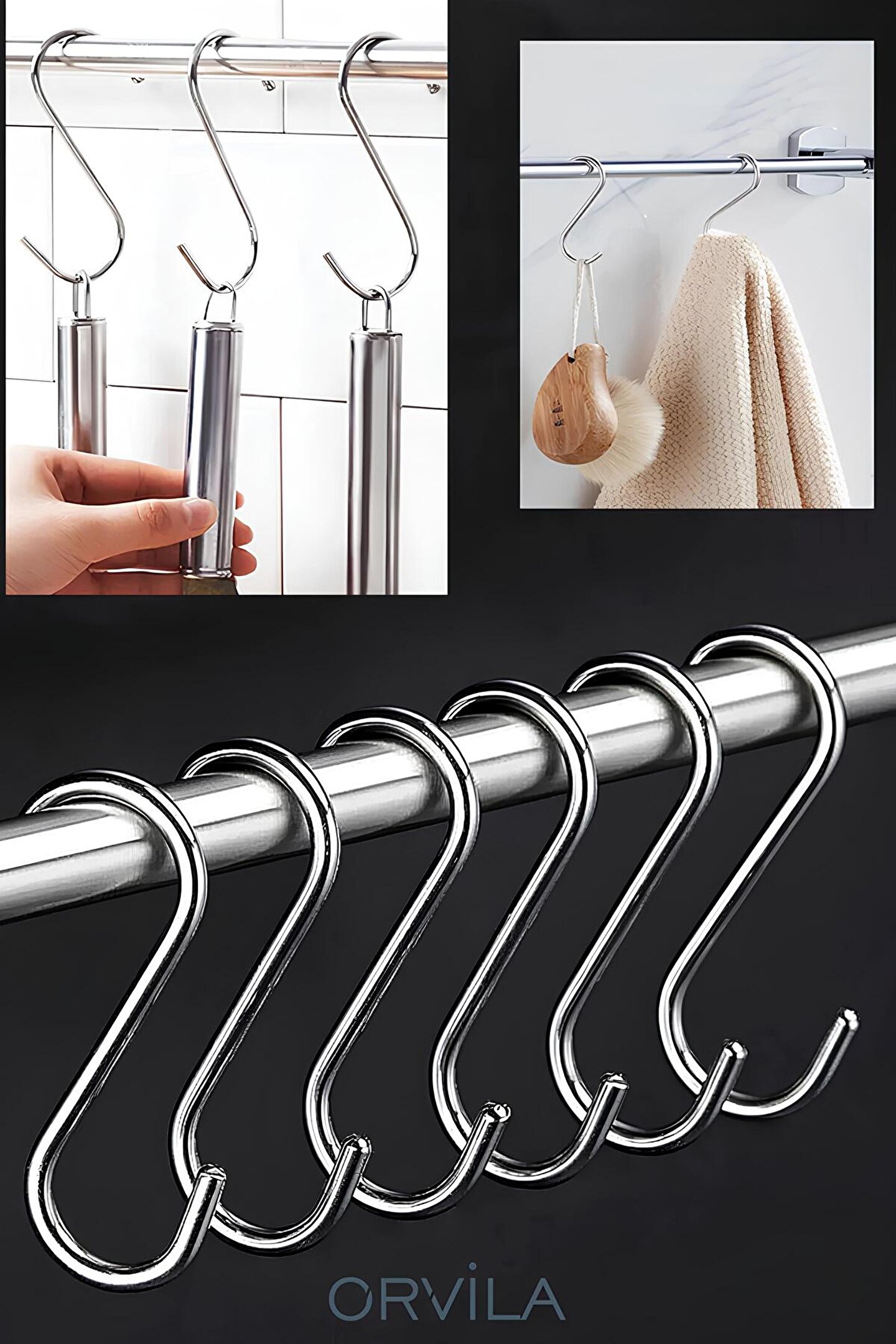 Orvila 10 Adet Metal S Kanca - Mutfak Askısı Banyo Askısı Pano Askısı Çok Amaçlı Düzenleyici Askı