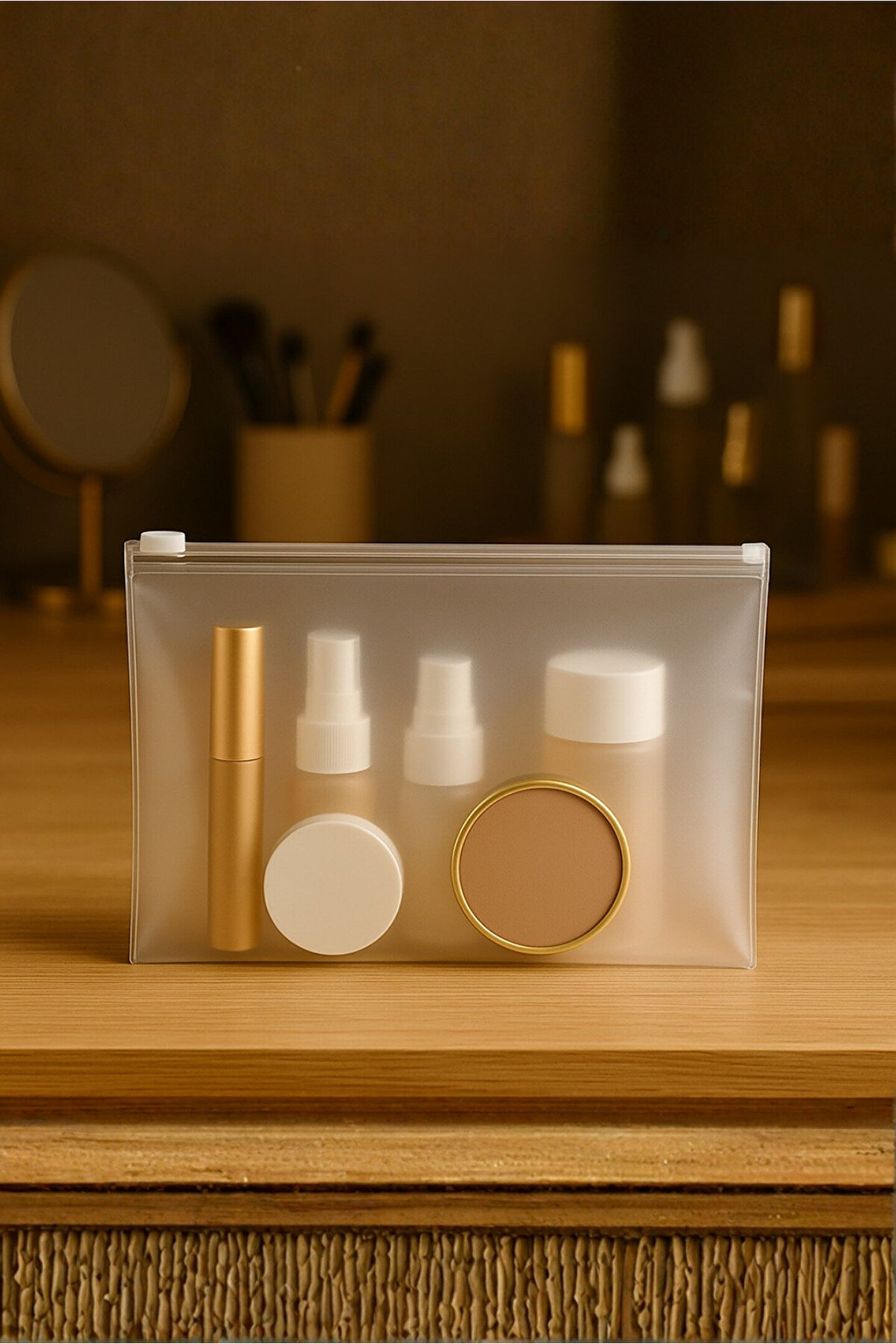 10 Adet Şeffaf Buzlu Fermuarlı Makyaj Çantası – Kozmetik Organizer - Seyahat Tipi