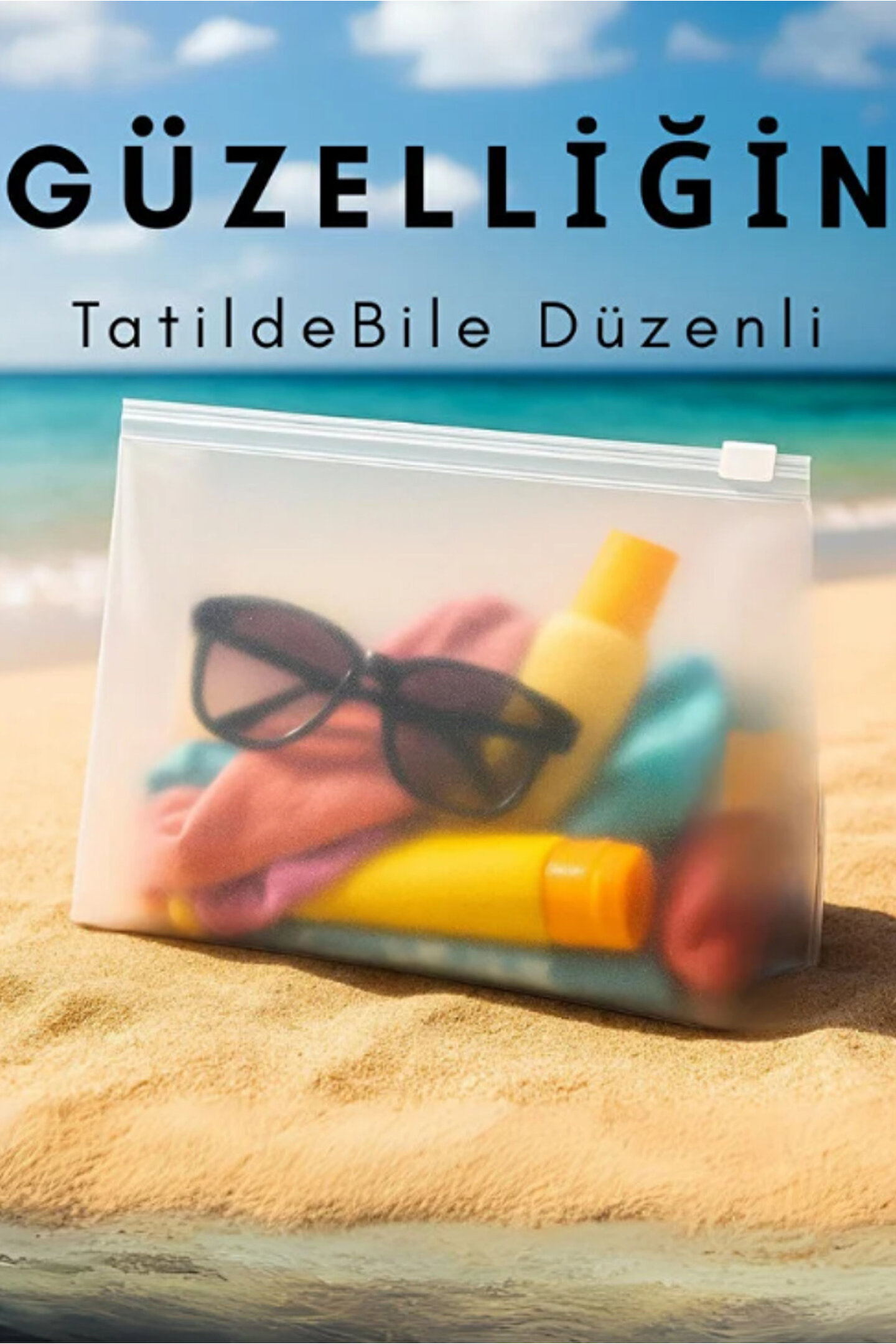 Dayanıklı, şeffaf ve modern tasarımıyla dikkat çeken bu fermuarlı makyaj çantası; 30x20 cm ölçüsü sayesinde hem büyük hem küçük kozmetik ürünlerinizi düzenli bir şekilde saklamanıza yardımcı olur; şeffaf buzlu yüzeyi sayesinde içindekileri kolayca görebilir ve aradığınız ürünü anında bulabilirsiniz; suya dayanıklı malzemesi ile banyo, plaj veya seyahat sırasında ürünlerinizi güvenle korur; hafif ve esnek yapısı sayesinde çantanızda, valizinizde veya çekmecenizde fazla yer kaplamadan taşınabilir; fermuarlı üst kısmı kolay açılıp kapanır ve ürünlerinizi dökülme riskine karşı güvenle muhafaza eder; makyaj fırçaları, parfüm, krem, serum, deodorant, oje, tırnak makası, saç tokası gibi kişisel bakım ürünleri için ideal kullanım sunar; sade ama şık tasarımıyla hem kadınlar hem erkekler için uygundur; seyahatlerde düzenli ve hijyenik bir taşıma çözümü sağlar; evde, işte, tatilde veya spor salonunda rahatlıkla kullanılabilir; kolay temizlenebilir yüzeyi sayesinde uzun ömürlüdür; elde ılık suyla ve yumuşak bezle silinerek temizlenmesi önerilir; çamaşır makinesinde yıkamayınız ve kimyasal temizleyici kullanmayınız; doğrudan güneş ışığında uzun süre bırakmayınız; tamamen kuruduktan sonra kapalı şekilde muhafaza ediniz; günlük kullanım için pratik, estetik ve fonksiyonel bir organizer arayanlar için mükemmel bir seçimdir.