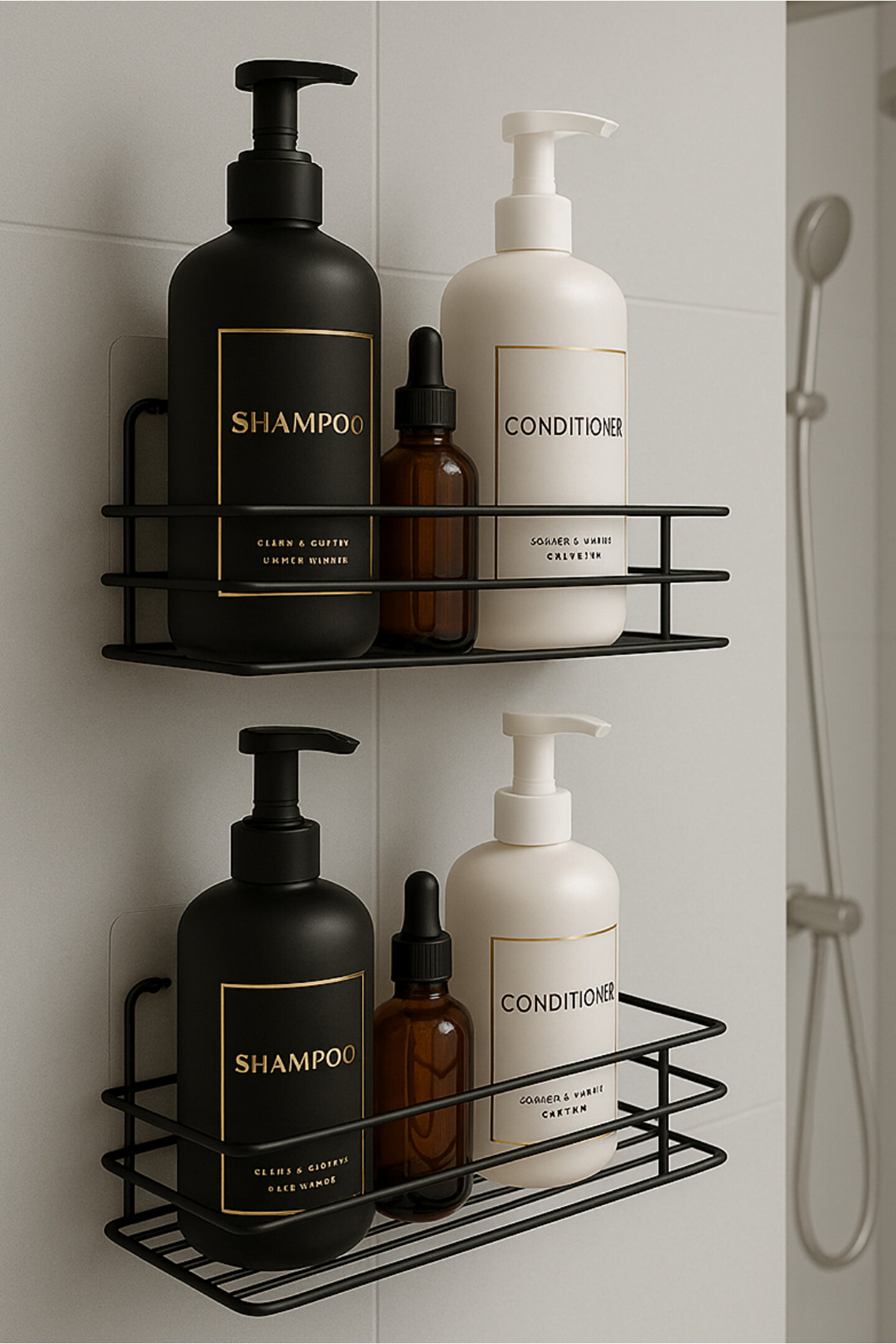 2 li yapışkanlı duş şampuanlık; güçlü taşıyıcı yapışkan paneli sayesinde mat-seramik, fayans ve pürüzsüz yüzeylere delme gerektirmeden kolayca uygulanan banyo rafı; paslanmaz dayanıklı metal gövde; suya, buhara ve neme karşı yüksek direnç; zamanla düşme yapmayan sağlam tutuş; şampuan, duş jeli, saç kremi, vücut bakım yağları ve kozmetik ürünleri için geniş depolama alanı; modern siyah minimalist tasarım ile her banyoya uyum; küf ve pas oluşumuna karşı özel kaplama; hızlı kuruyan ızgara taban ile su birikmesini önler; kaymaz kenarlıklar sayesinde ürünleri güvenli tutar; duşakabin içi kullanım için ideal; yüksek taşıma kapasitesi; pratik temizlik imkanı; iz bırakmayan sökülebilir yapışkan; küçük banyolarda ekstra alan oluşturan, düzen sağlayan kompakt organizer; otel, ev, ofis banyoları için profesyonel kullanım; uzun ömürlü premium kalite banyo düzenleme ürünü.; Ölçüsü 24x9,9 yükseklik 5,5