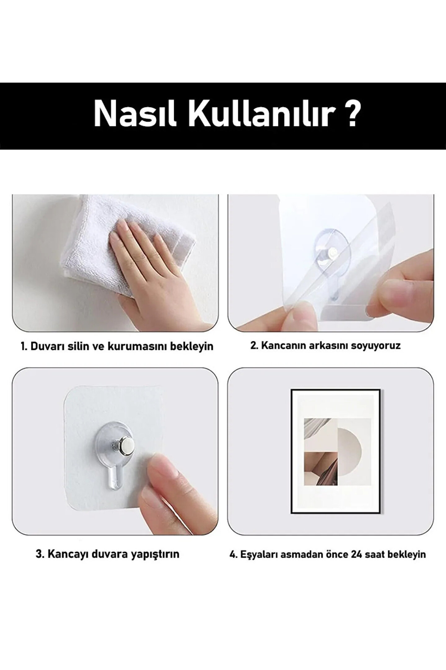 Orvila 4 Adet Kendinden Yapışkanlı Tablo Askısı - Çok Amaçlı Yapışkan Vida Çivi
