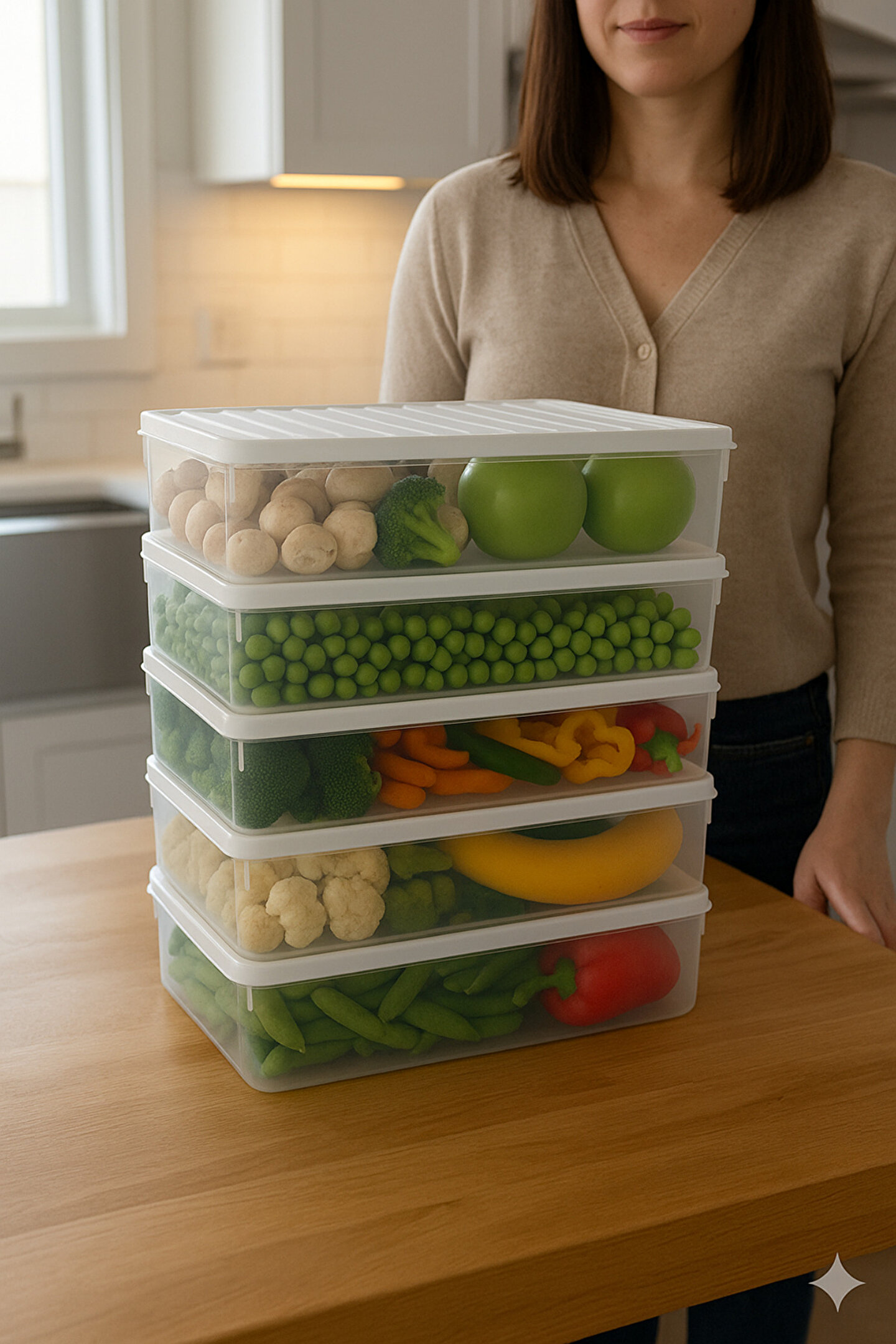 Şeffaf Gıda Saklama ve Buzdolabı Düzenleme Kutusu – 4’lü Set; Buzdolabı düzenini korumanıza ve gıdalarınızı uzun süre taze tutmanıza yardımcı olur; Şeffaf gövdesi sayesinde içindekileri kolayca görebilir, aradığınız ürünü zahmetsizce bulabilirsiniz; Hava geçirmez kapak yapısı, meyve, sebze, kahvaltılık ve yemek artıkları gibi gıdaların tazeliğini korur; İstiflenebilir tasarımı sayesinde buzdolabında maksimum alan tasarrufu sağlar; Dayanıklı, BPA içermeyen, sağlığa zararsız plastikten üretilmiştir; Kolay temizlenebilir yapısı ile hem elde hem de bulaşık makinesinde yıkanabilir; Sebze, meyve, kahvaltılık, sos, çerez veya yemek saklama amacıyla çok yönlü kullanım sunar; Modern gri kapak detayıyla mutfak estetiğine uyum sağlar; Ev, ofis, piknik veya kamp kullanımı için idealdir; Dondurucuya ve buzdolabına uygundur; Pratik, hijyenik ve düzenli bir saklama çözümü arayanlar için mükemmel bir seçenektir.; Ölçüsü 27,5x22 cm dir.;
