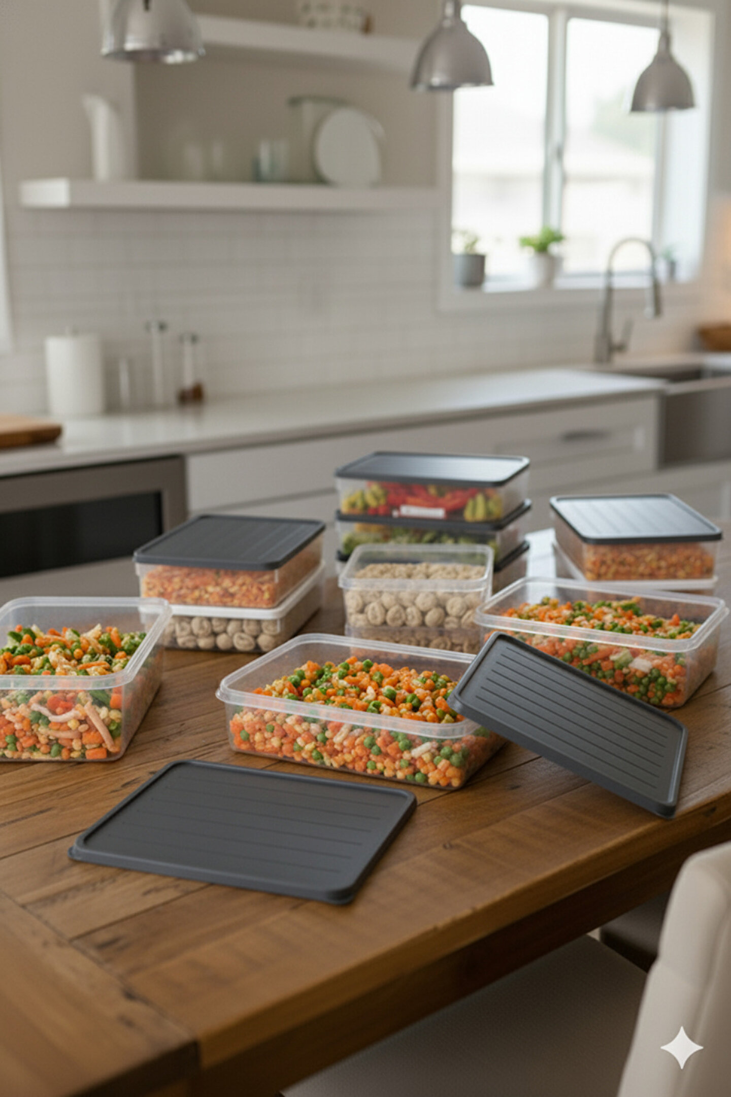 Şeffaf Gıda Saklama ve Buzdolabı Düzenleme Kutusu – 4’lü Set; Buzdolabı düzenini korumanıza ve gıdalarınızı uzun süre taze tutmanıza yardımcı olur; Şeffaf gövdesi sayesinde içindekileri kolayca görebilir, aradığınız ürünü zahmetsizce bulabilirsiniz; Hava geçirmez kapak yapısı, meyve, sebze, kahvaltılık ve yemek artıkları gibi gıdaların tazeliğini korur; İstiflenebilir tasarımı sayesinde buzdolabında maksimum alan tasarrufu sağlar; Dayanıklı, BPA içermeyen, sağlığa zararsız plastikten üretilmiştir; Kolay temizlenebilir yapısı ile hem elde hem de bulaşık makinesinde yıkanabilir; Sebze, meyve, kahvaltılık, sos, çerez veya yemek saklama amacıyla çok yönlü kullanım sunar; Modern gri kapak detayıyla mutfak estetiğine uyum sağlar; Ev, ofis, piknik veya kamp kullanımı için idealdir; Dondurucuya ve buzdolabına uygundur; Pratik, hijyenik ve düzenli bir saklama çözümü arayanlar için mükemmel bir seçenektir.; Ölçüsü 27,5x22 cm dir.;