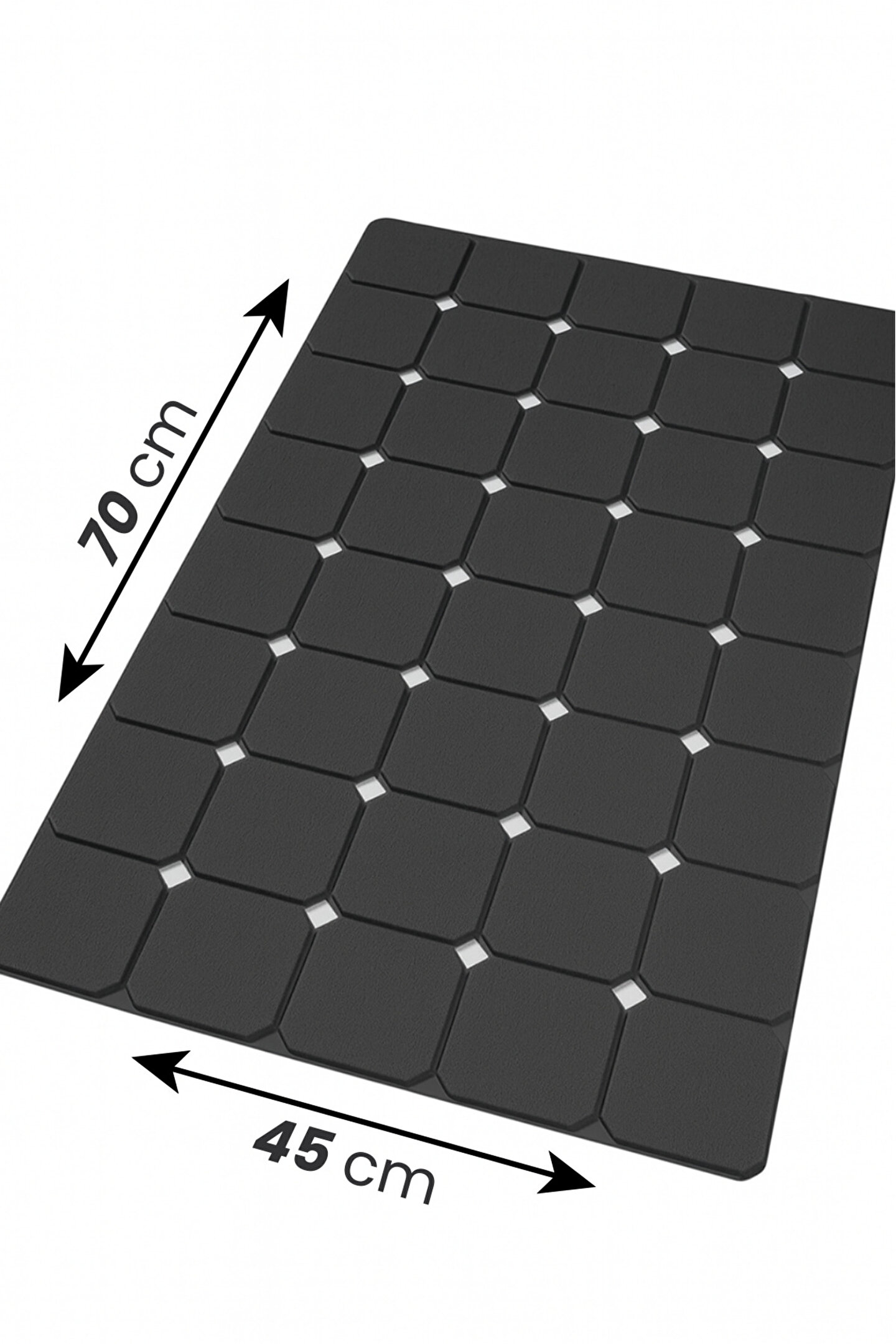 Kaydırmaz duş paspası ile banyolarınızda ve duşakabinlerinizde maksimum güvenlik ve hijyeni yakalayın.; Islak zeminlerde meydana gelebilecek kazaları önlemek amacıyla özel olarak tasarlanan bu vantuzlu paspas, duşakabin ve küvetlere mükemmel uyum sağlar.; Yüksek kaliteli, suya ve neme karşı dayanıklı PVC materyalden üretilmiştir, bu sayede uzun ömürlü kullanım sunar.; Paspasın alt yüzeyinde yer alan güçlü vantuzlar, zemin üzerinde sıkı bir tutuş sağlayarak üstün kaydırmazlık performansı gösterir ve paspasın yerinden oynamasını engeller.; Yüzeyindeki delikli yapı, suyun hızla tahliye edilmesini sağlayarak su birikintilerini ve sabun kalıntılarını en aza indirir, böylece anti-bakteriyel bir ortam yaratarak küf ve mantar oluşumunu engeller.; Banyo zemin koruyucu görevi de gören bu hijyenik duş matı, kolay temizlenebilir yapısıyla pratik bir bakım sunar.; Rutin temizlik için sadece ılık su ve hafif bir deterjanla elde yıkamanız yeterlidir.; Makinede yıkama ve yüksek ısıda kurutma yapılmamalıdır.; Güvenli duş deneyimi arayan herkes için ideal olan bu kaymaz banyo paspası, estetik antrasit gri rengiyle banyonuzun dekorasyonuna şıklık katarken, ailenizdeki yaşlılar ve çocuklar için ekstra bir güvenlik katmanı oluşturur.;