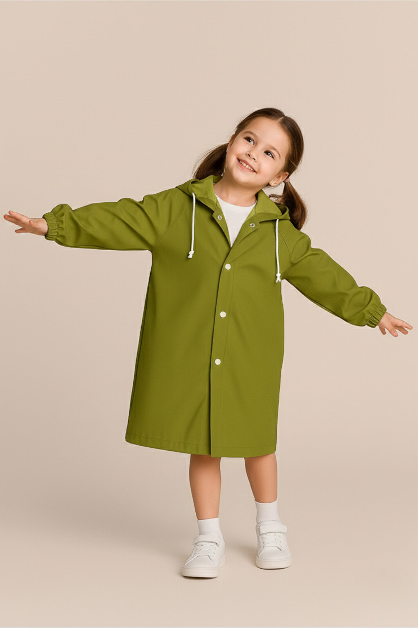 Çocuk Kapüşonlu Yağmurluk; Su geçirmez özel kumaş yapısı sayesinde yağmurlu ve rüzgarlı havalarda üstün koruma sağlar; Hafif ve nefes alabilen dokusu ile çocukların gün boyu rahat hareket etmesine yardımcı olur; Kapüşonlu tasarımı baş ve boyun bölgesini yağmura karşı korur; Önü çıtçıtlı kapanma sistemi pratik kullanım sunar; Uzun kesimi sayesinde ekstra koruma sağlar; Kol uçları lastikli yapıdadır ve rüzgar girişini önler; Günlük kullanım, okul, park, yürüyüş ve açık hava aktiviteleri için idealdir; Şık ve modern tasarımı ile hem spor hem günlük kombinlere uyum sağlar; Dört mevsim geçişlerinde rahatlıkla kullanılabilir; Dayanıklı yapısı sayesinde uzun ömürlüdür; Kolay temizlenir ve çabuk kurur; Kız çocukları için özel olarak tasarlanmıştır.