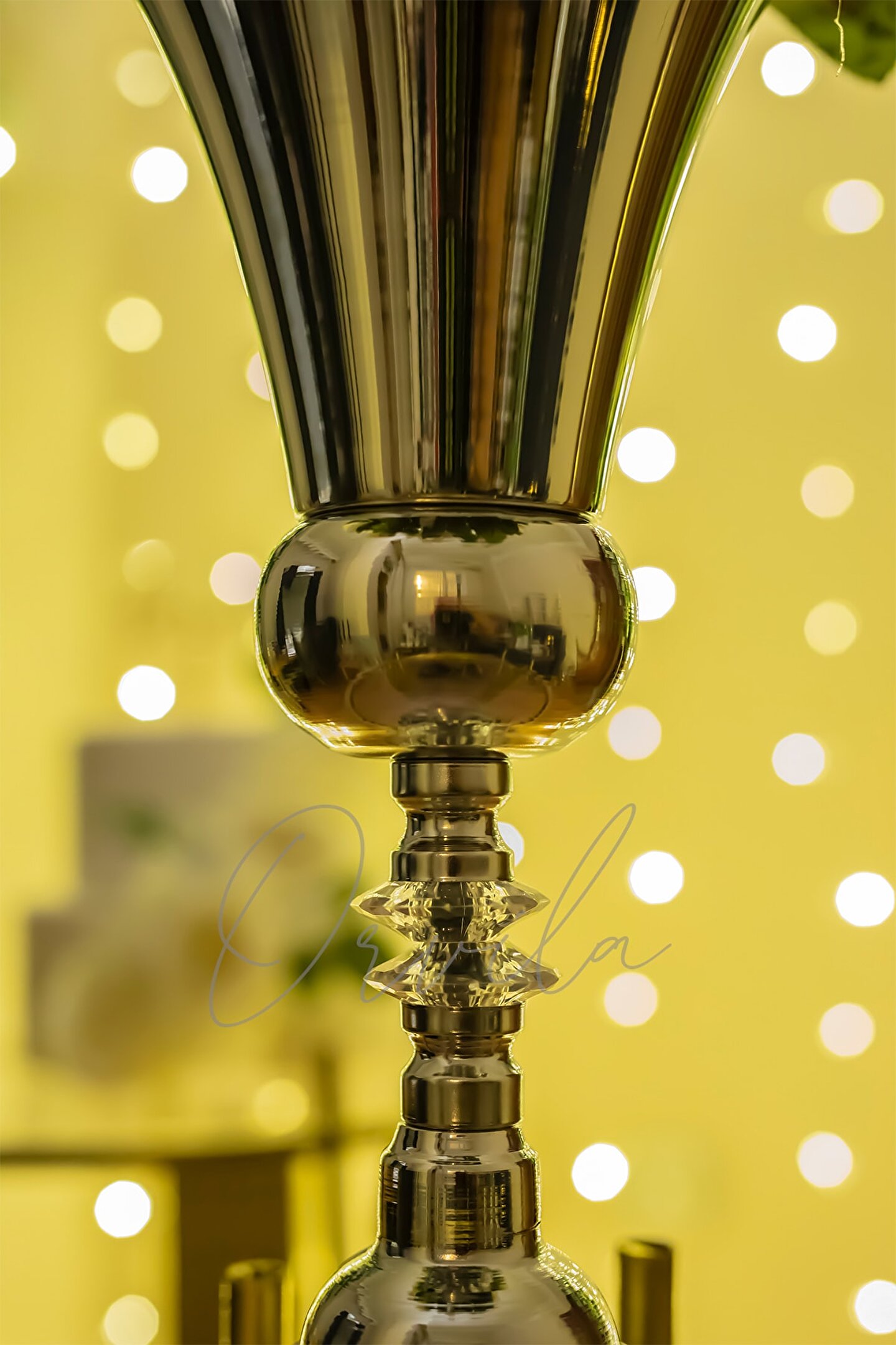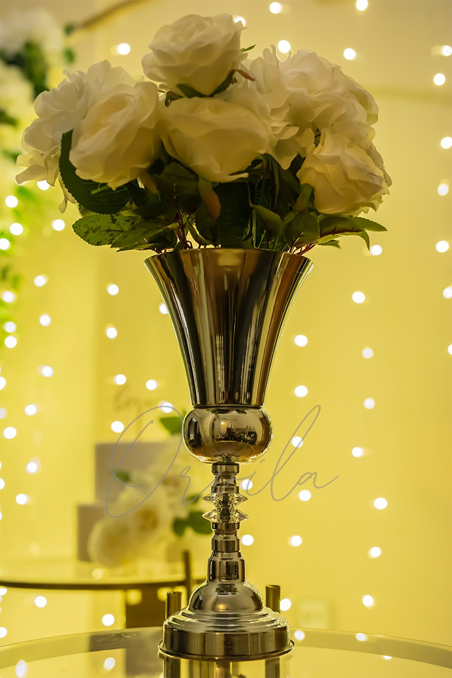 Yükseklik: 35 Cm; Çap: 15 Cm ; Materyal: Metal; Çiçekler dekor amaçlı kullanılmıştır. Pakete dahil değildir.; Söz , nişan , düğün , özel gün ve gece organizasyonlarınızda yemek ve sunum masalarında dekoratif amaçlı tercih edebilirsiniz.; Nişan ve konsept fotoğraf çekimlerinde organizasyon masasında ve arka fonda görsel olarak kullanılabilir.; Evinizde salon , oturma odası , antre gibi alanlarda sehpa, masa ve konsol dekorasyonlarında kullanarak evinize havalı bir görünüm kazandırabilirsiniz.;