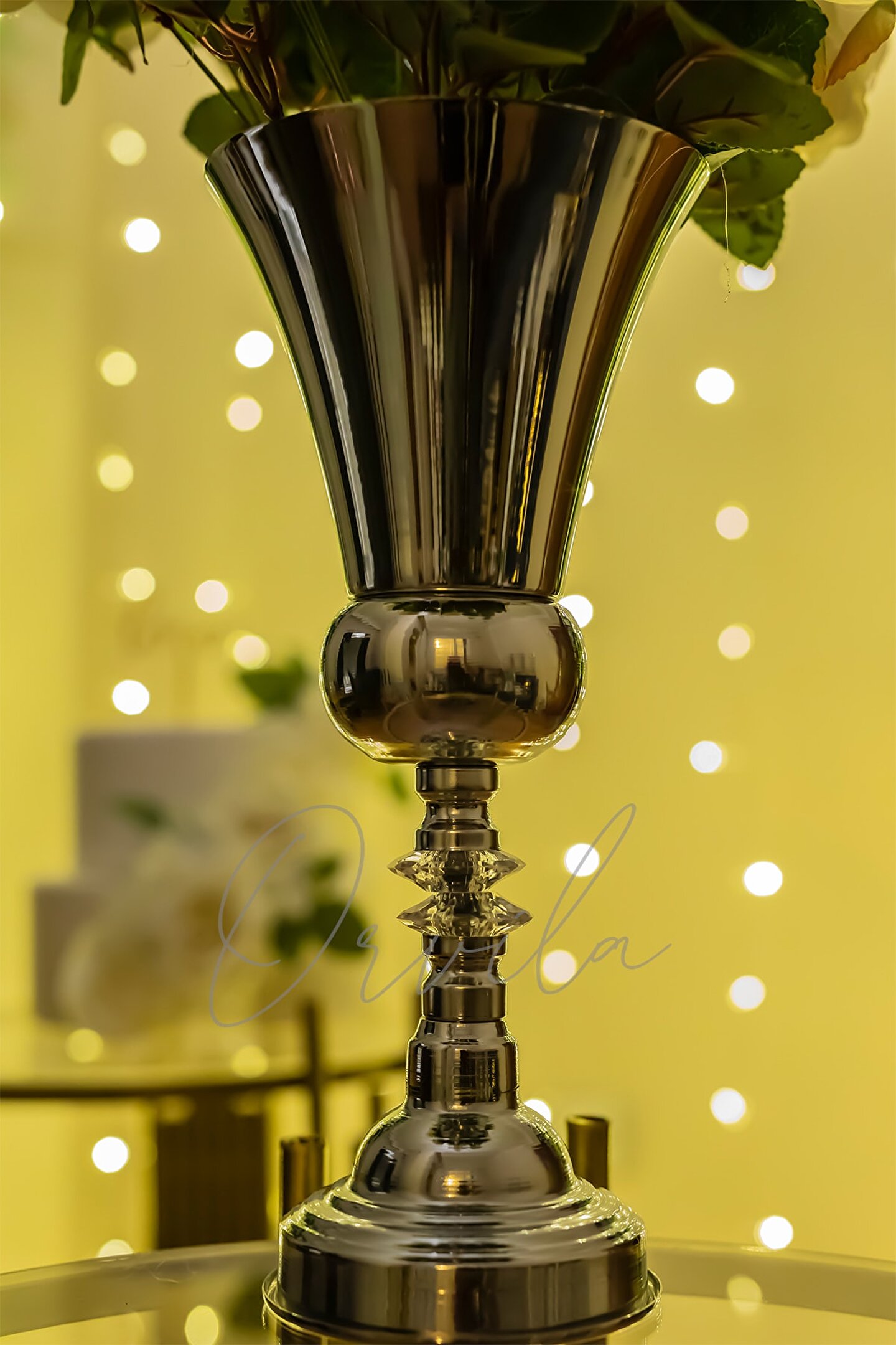 Orvila Dekoratif Gümüş Renk Taşlı Kupa Vazo Söz Nişan Düğün Konsept