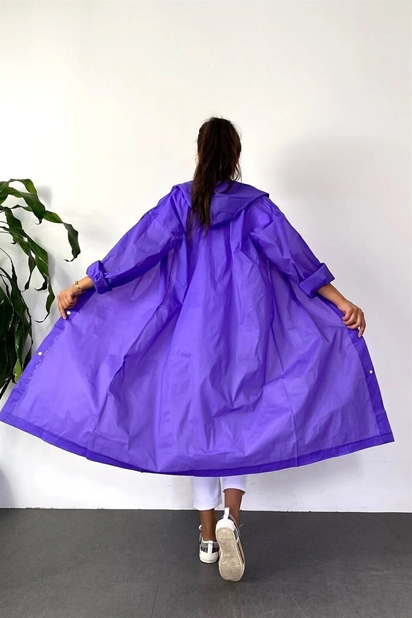 Orvila Eva Su Geçirmez Kaliteli Uzun Yağmurluk Unisex - Kadın Erkek Kapüşonlu Çıtçıtlı Standart Beden