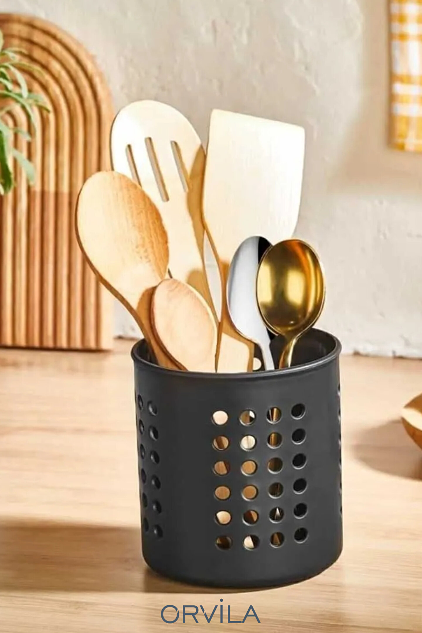 Kaşık, kepçe ve bıçaklarınızı düzenli bir şekilde kurutmak için mükemmel bir çözüm! Yüksekliği 13 cm ve çapı 12 cm olan bu ergonomik kaşıklık, hem evde hem ofiste hem de işyerlerinde kullanım için idealdir.; Kırılmaz plastik malzemesi sayesinde paslanmaz, uzun ömürlüdür ve dayanıklıdır.; Çeyiz setiniz için de harika bir seçenek olan bu kaşıklık, mutfak gereçlerinizi güvenle yerleştirebilmeniz için geniş bir alan sunar.; Temizliği son derece kolaydır, hijyenik kullanım sağlar.; Şık tasarımıyla mutfaklarınıza şıklık katar ve dağınıklığı ortadan kaldırır.;; ; Yükseklik: 13 cm;; ; Çap: 12 cm;; ; Malzeme: Kırılmaz plastik (Paslanmaz, uzun ömürlü).;; ; Kullanım Alanları: Mutfak, ofis, ev, işyeri.;; ; Ergonomik ve pratik tasarım.;; ; Kaşık, kepçe, bıçak gibi mutfak gereçlerini kolayca kurutun.;; ; Kolay temizlenebilir.;; ; Çeyizler için mükemmel seçenek.;; ;